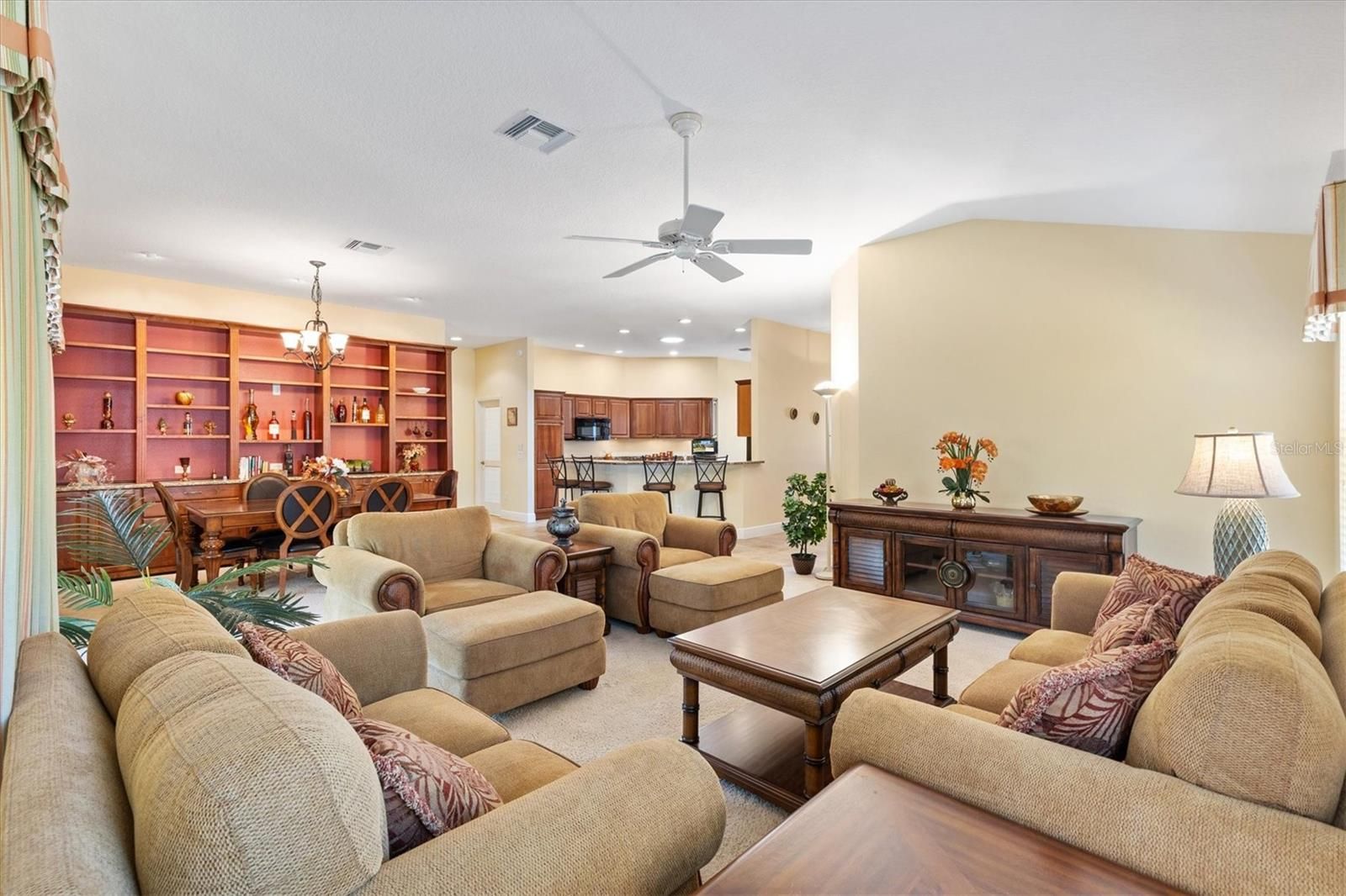 - Built-in Features, Ceiling Fan(s), Eat-in Kitchen, High Ceilings, Open Floorplan, Split Bedrooms, Walk-In Closet(s), Window Treatments