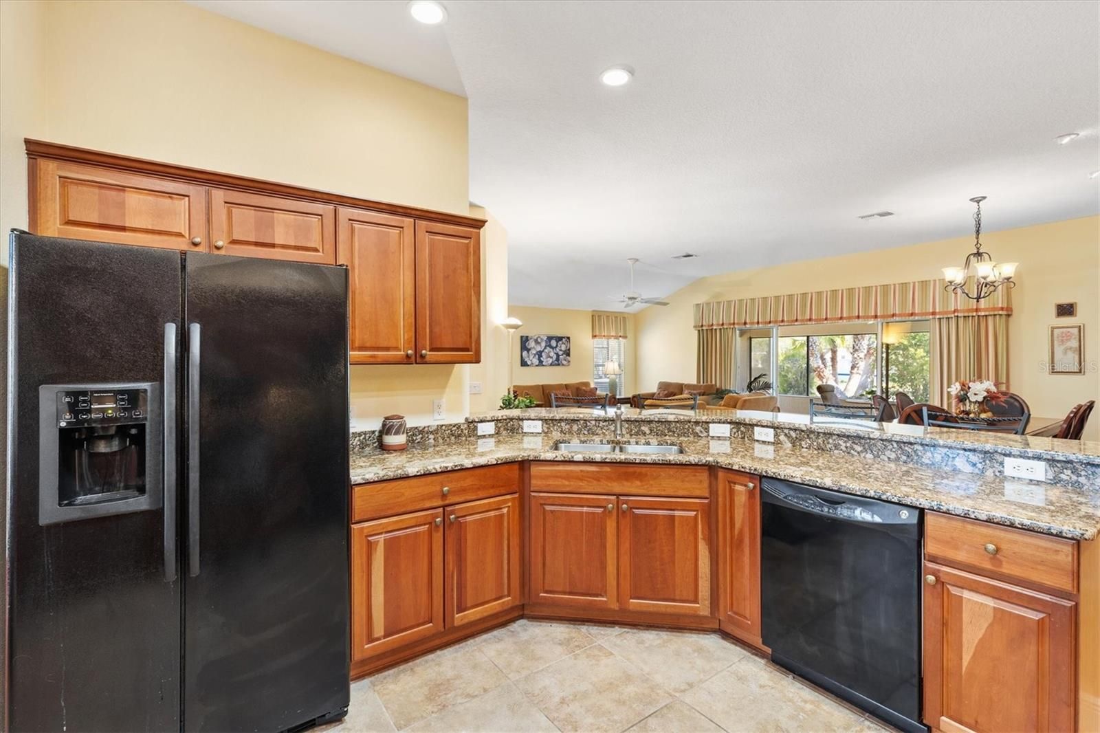 MINUTES TO SUMTER LANDING! This beautifully furnished 3-bedroom, 2-bathroom Gardenia model is nestled on a peaceful cul-de-sac in the Village of Virginia Trace. As you approach, you'll be greeted by a charming covered front porch that invites you into an expansive interior foyer, illuminated by a transom window and glass side panel. The layout is thoughtfully designed with an open and split floor plan, featuring carpet in the living and dining areas, while the wet areas and hallways have tile flooring. The kitchen boasts granite countertops, breakfast bar, and pull-out shelves that seamlessly connects to a cozy dining nook. From the open living and dining room, step out to the covered lanai with an outdoor kitchen and attached birdcage, complete with a hot tub for ultimate relaxation after a day of activities in The Villages. The two carpeted bedrooms off the foyer share a well-appointed bath with a convenient tub-shower combo, making it perfect for guests or family. The carpeted master suite is a true retreat, featuring two large walk-in closets and an ensuite bath equipped with dual split vanities, a vanity make-up table, a linen closet, and a shower with a built-in bench. This bedroom has sliding door access to the lanai for easy outdoor enjoyment. Additional highlights include a gas-wired home, HVAC recently serviced and in excellent working order, a screened and glass front door, a water filtration system, and solar tubes in the kitchen and laundry room, making this home ideal for entertaining and comfortable living. This is a centrally located home between Lake Sumter Landing and Brownwood town centers for dining, entertainment and shopping. With the Sabal Chase Pool and Postal Station a quick golf cart ride from your doorstep, you'll love the convenience and lifestyle this location offers. Watch our video tour and schedule your appointment today to experience all that The Villages has to provide!