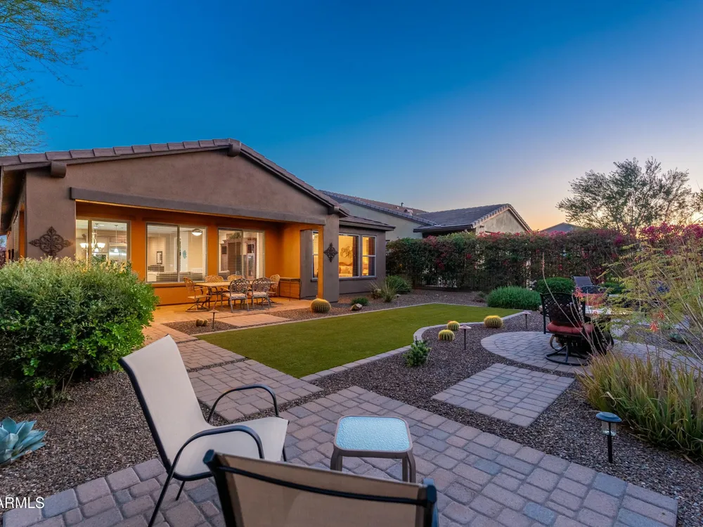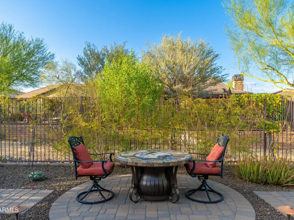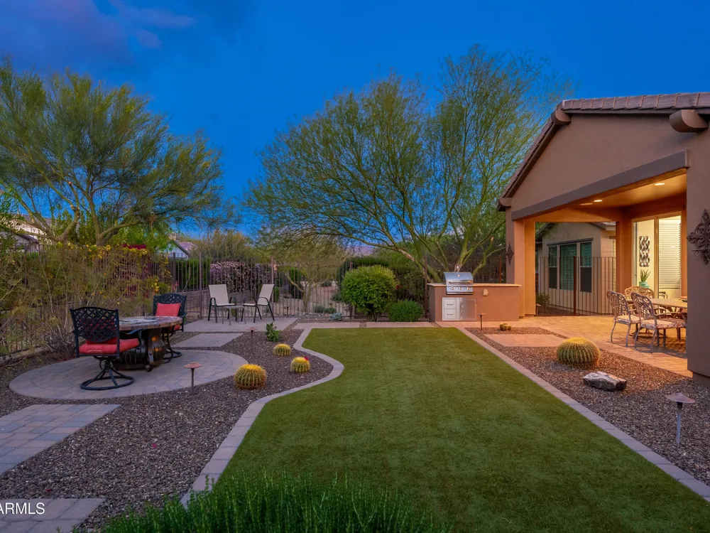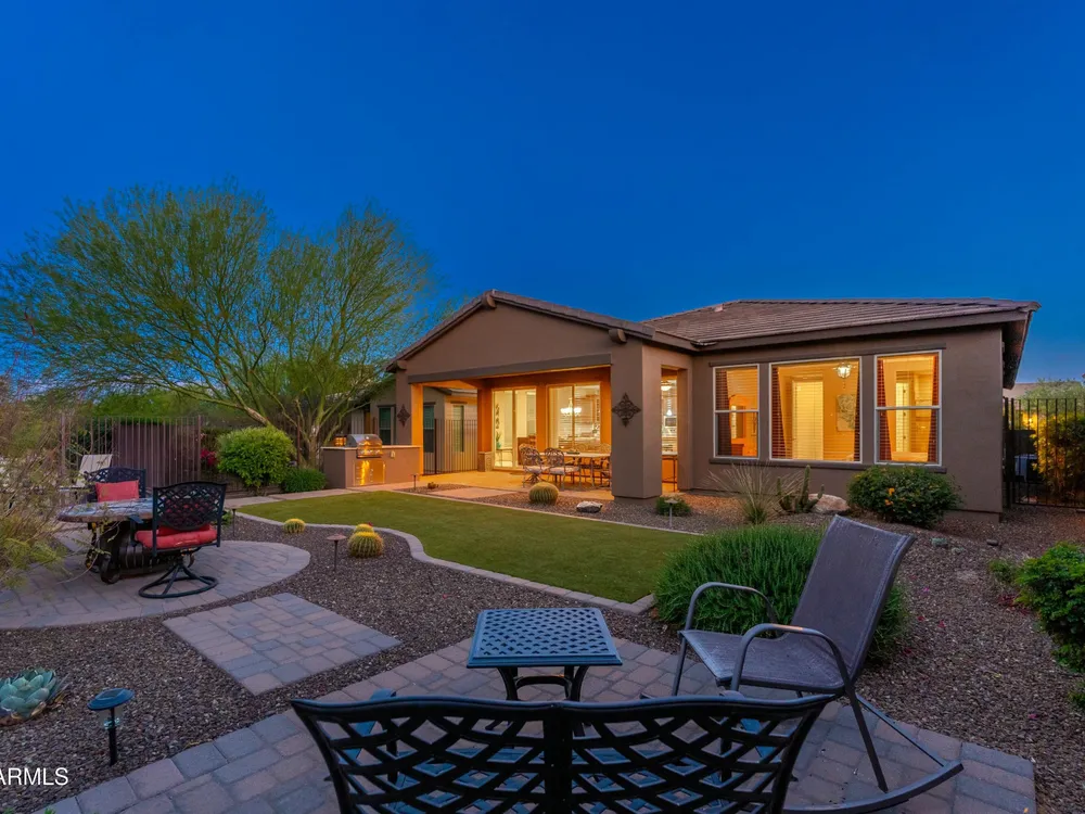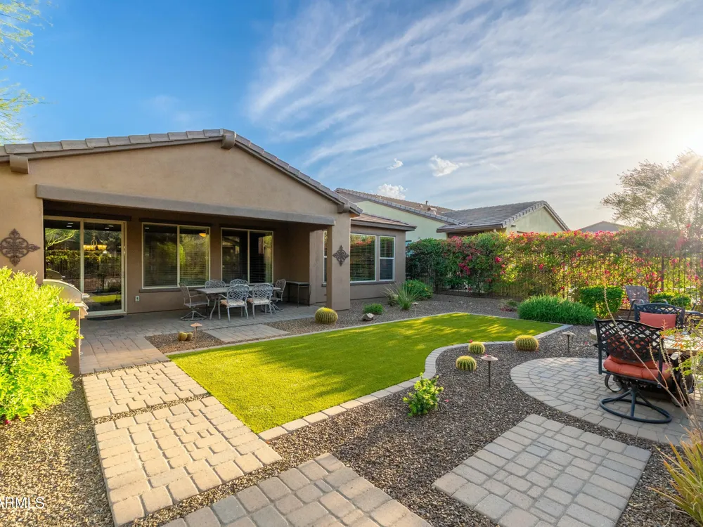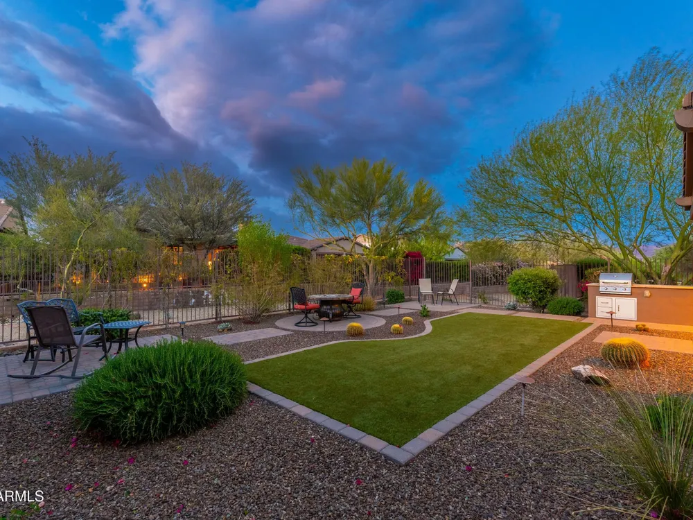 Beautiful North South facing furnished Juniper model home on a cul-de-sac lot! The lucky new buyer can just move right in to enjoy the state-of-the-art amenities at Trilogy at Verde River. The floor plan is ideal with a wide open great room and split master. The gourmet kitchen boasts GE Monogram Stainless appliances and a 5-burner gas stove with an exhaust hood. The primary suite is the perfect retreat with upgraded cabinets, granite countertops, an upgraded tile shower & spacious walk-in closet. There are 8-foot doors, 5-inch baseboards, tile flooring throughout, wood blinds, and a spacious laundry room with cabinets and a sink. The private backyard boasts artificial turf, & pavers and is fully enclosed with breathtaking mountain views. Just bring your toothbrush!