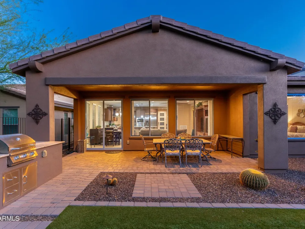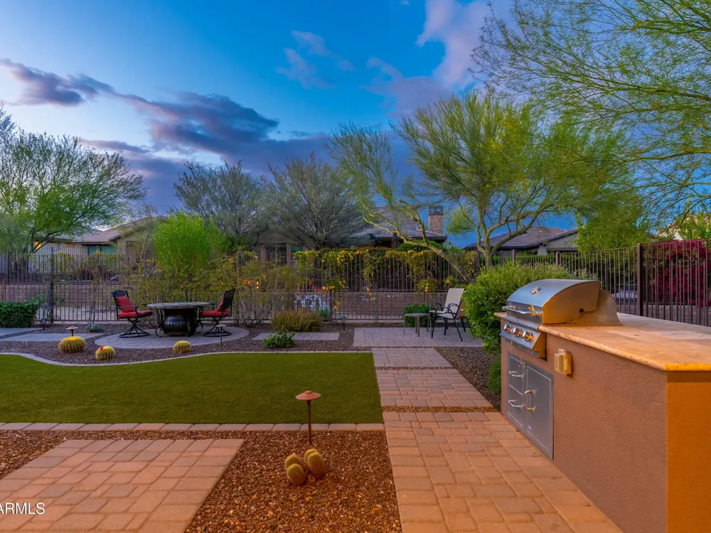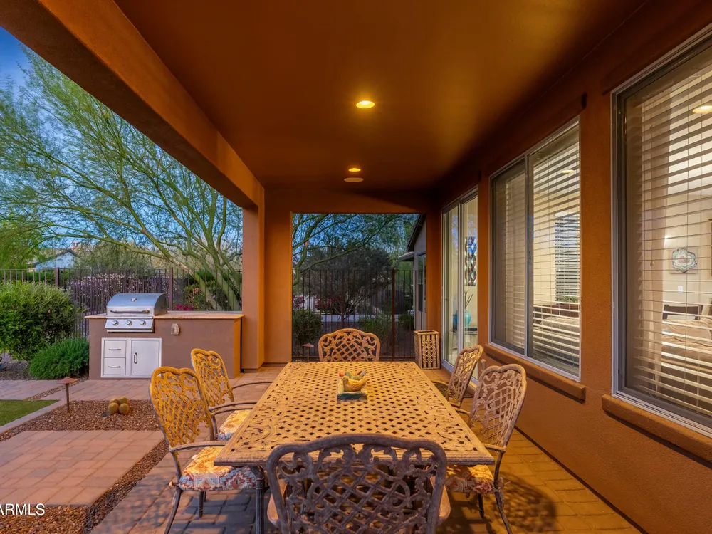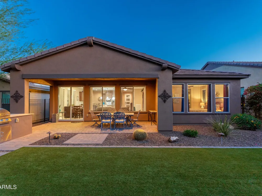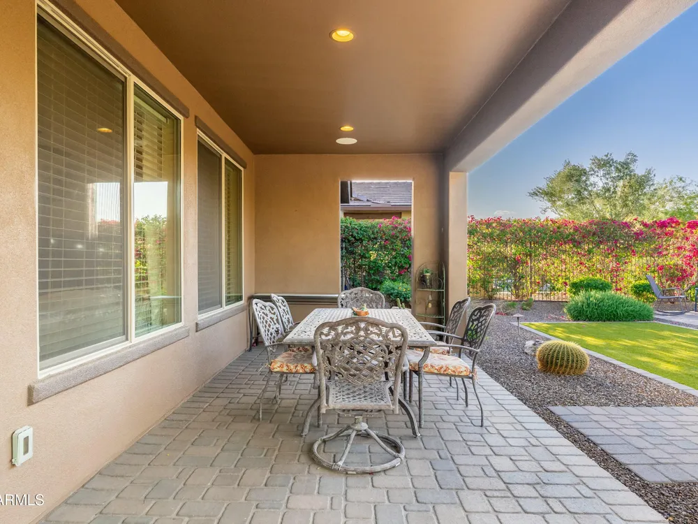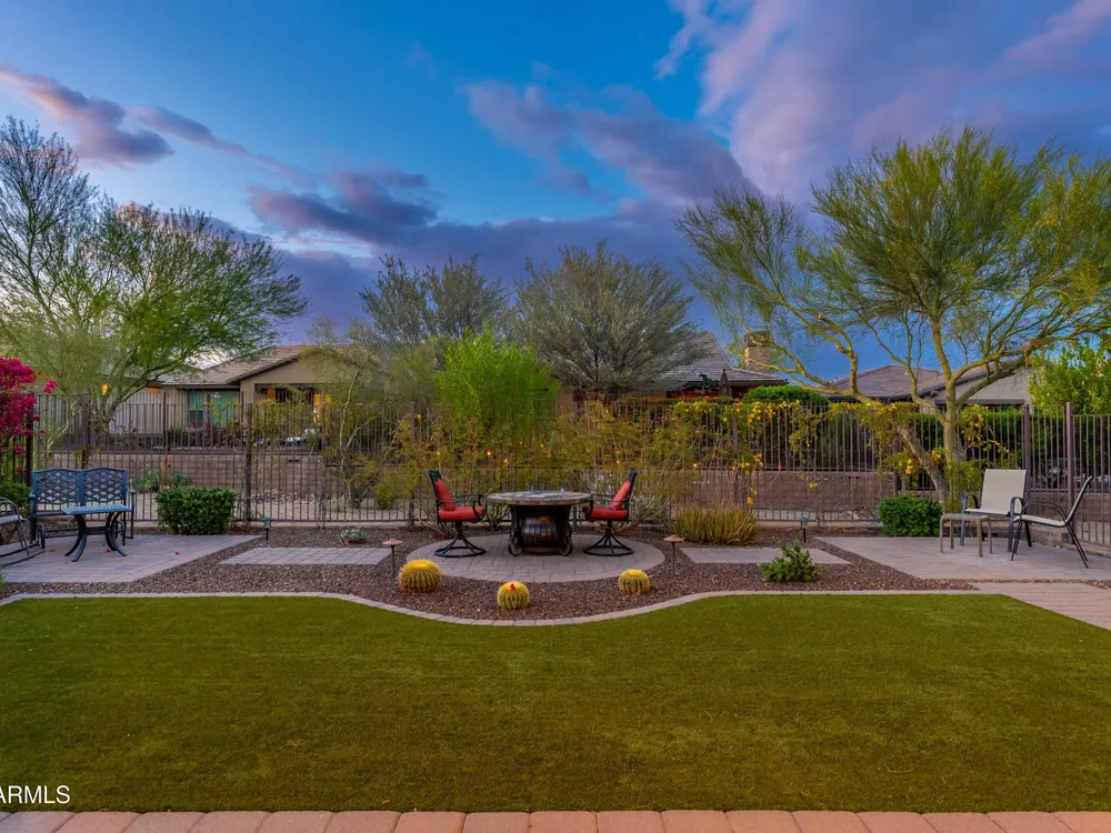 Beautiful North South facing furnished Juniper model home on a cul-de-sac lot! The lucky new buyer can just move right in to enjoy the state-of-the-art amenities at Trilogy at Verde River. The floor plan is ideal with a wide open great room and split master. The gourmet kitchen boasts GE Monogram Stainless appliances and a 5-burner gas stove with an exhaust hood. The primary suite is the perfect retreat with upgraded cabinets, granite countertops, an upgraded tile shower & spacious walk-in closet. There are 8-foot doors, 5-inch baseboards, tile flooring throughout, wood blinds, and a spacious laundry room with cabinets and a sink. The private backyard boasts artificial turf, & pavers and is fully enclosed with breathtaking mountain views. Just bring your toothbrush!