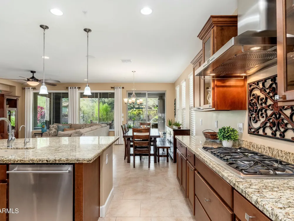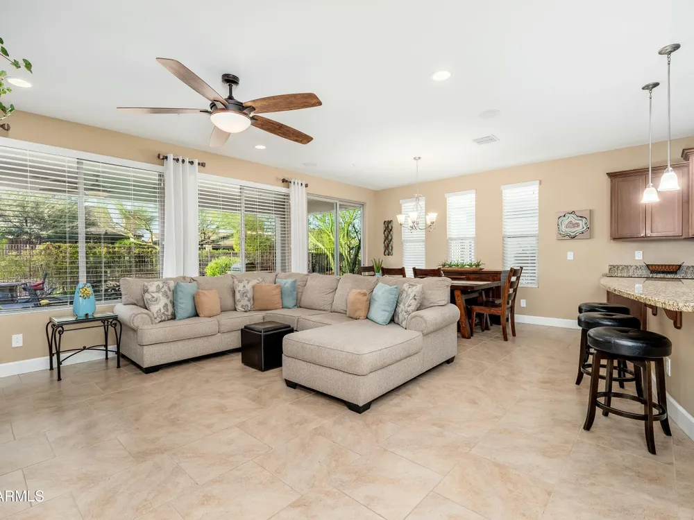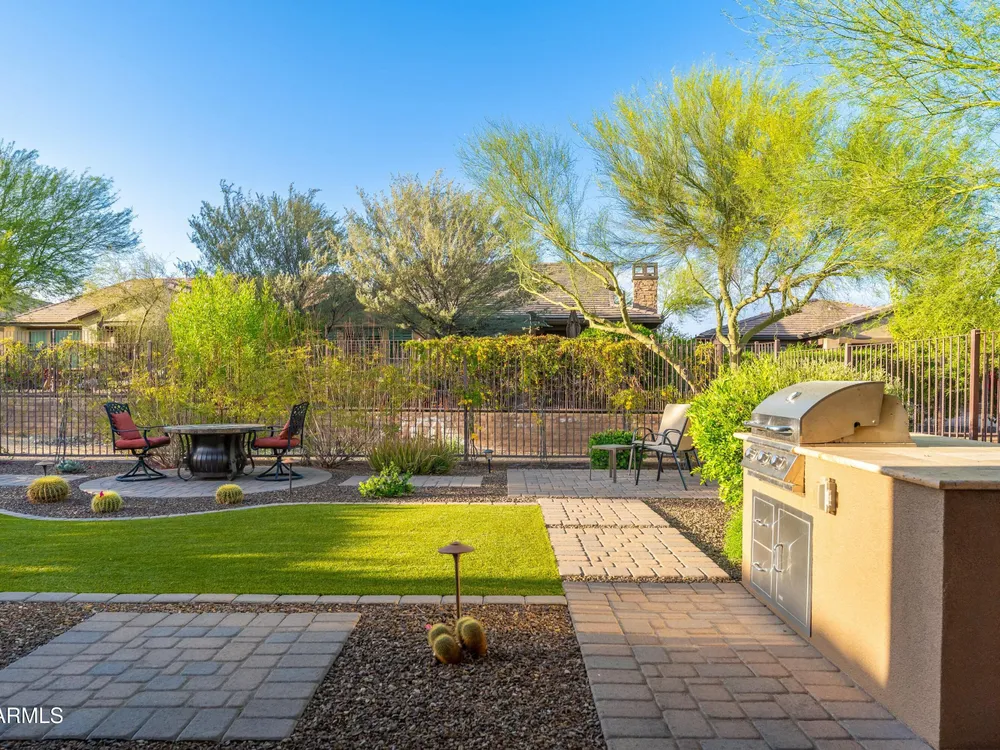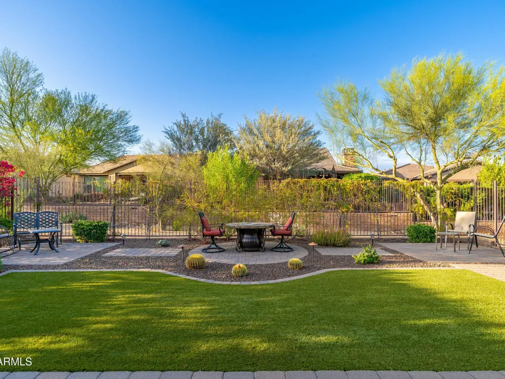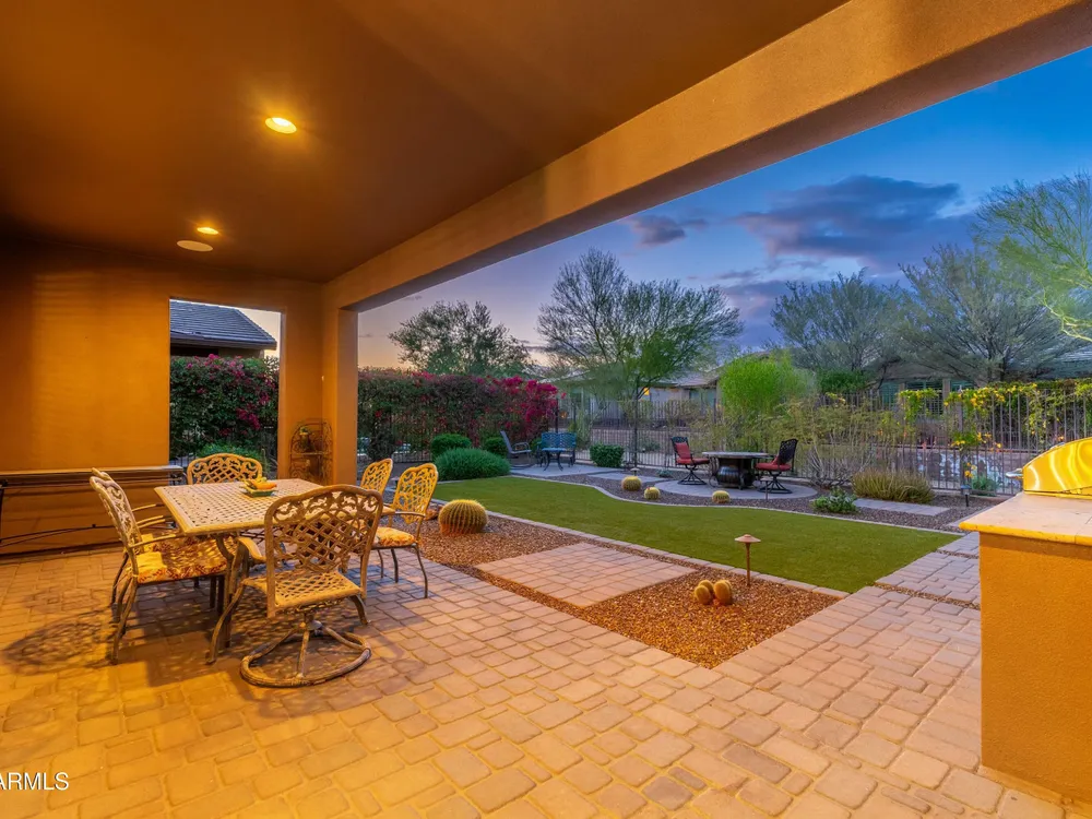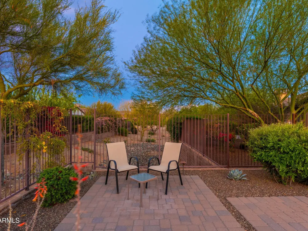 Beautiful North South facing furnished Juniper model home on a cul-de-sac lot! The lucky new buyer can just move right in to enjoy the state-of-the-art amenities at Trilogy at Verde River. The floor plan is ideal with a wide open great room and split master. The gourmet kitchen boasts GE Monogram Stainless appliances and a 5-burner gas stove with an exhaust hood. The primary suite is the perfect retreat with upgraded cabinets, granite countertops, an upgraded tile shower & spacious walk-in closet. There are 8-foot doors, 5-inch baseboards, tile flooring throughout, wood blinds, and a spacious laundry room with cabinets and a sink. The private backyard boasts artificial turf, & pavers and is fully enclosed with breathtaking mountain views. Just bring your toothbrush!