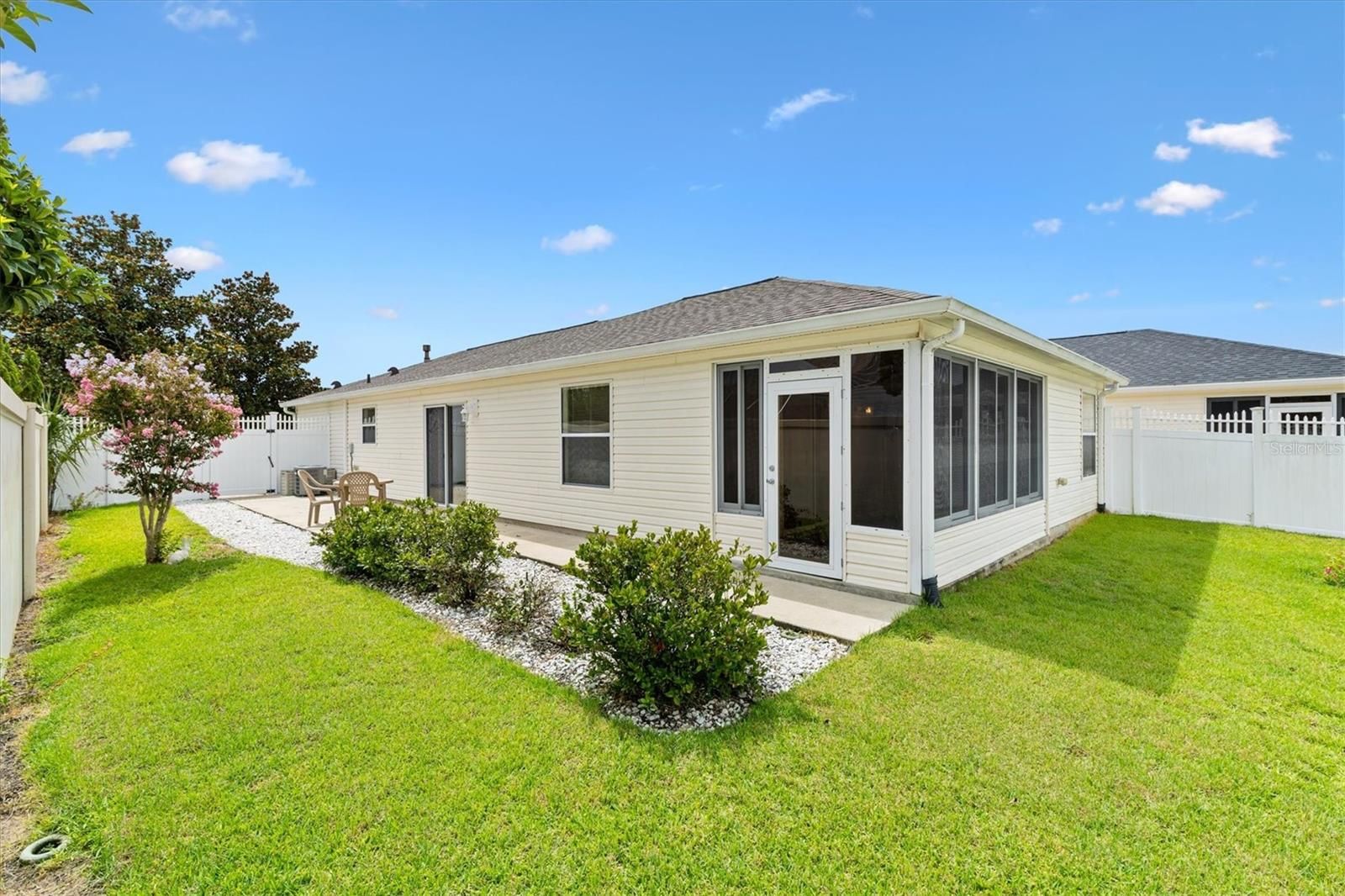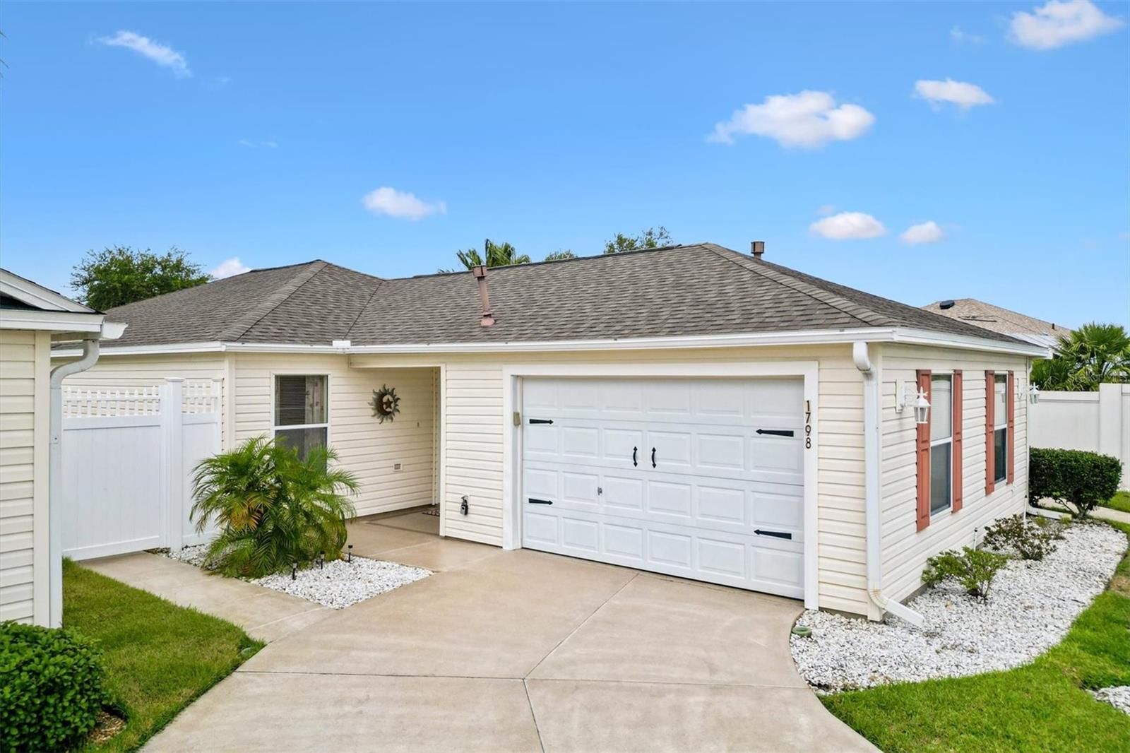 Under contract-accepting backup offers. Bond Paid • Corner Lot • 2021 Roof •Turnkey• Prime Location •1.5 miles to Lake Sumter Landing • Welcome to this move-in ready Marathon Courtyard Villa located in the Village of Sabal Chase within the desirable Tanglewood Villas community in The Villages, Florida. With a Bond Paid, a 2021 Roof, and a corner lot setting at the end of a peaceful street, this home offers a rare blend of convenience, comfort, and privacy—all just minutes from Lake Sumter Landing. The open-concept floor plan welcomes you with spacious living and dining areas ideal for both daily living and entertaining. The well-appointed kitchen includes a new stainless steel refrigerator (2023), gas stove, pantry storage, and pull-out shelving for easy organization. The thoughtful layout ensures seamless flow and natural light throughout the home. The Primary Suite includes a walk-in closet and private en-suite bathroom for everyday comfort. A pocket door separates the guest bedroom and second full bath, providing visitors with their own private area. Outdoor living is just as inviting. The screened lanai with shades opens to a private courtyard, complete with both paved and grass areas—perfect for pets, gardening, or quiet outdoor enjoyment. Decorative finishes on the driveway and garage floor enhance exterior appeal, while the courtyard’s privacy wall creates a serene setting rarely found in villa living. Practical updates provide peace of mind: Roof replacement (November 2021), bond paid, and low-maintenance exterior. This villa’s design delivers a smart combination of efficiency and livability with plenty of storage and a bright, welcoming atmosphere. The location is one of the best features of this property—just 1.5 miles from Lake Sumter Landing, where you’ll find waterfront dining, boutique shopping, and nightly live entertainment. For golf enthusiasts, Mallory Hill Country Club is 0.9 miles, and Cane Garden Country Club is 1.8 miles away, both offering championship courses and popular restaurants. Recreation options abound, with Canal Recreation Center (0.8 mi) and Bacall & Bogart Executive Golf Courses (0.8 mi) providing convenient access to pools, sports, and fitness activities. The Sabal Chase Postal Station and neighborhood pool are also nearby for everyday ease. This Marathon Courtyard Villa represents a true opportunity to experience the lifestyle that makes The Villages so special. Whether relaxing in the courtyard, hosting friends, or exploring by golf cart, you’ll appreciate the balance of comfort, updates, and proximity to amenities that define this home. Enjoy everything The Villages offers golf, recreation centers, swimming pools, medical facilities, and more than 3,000 clubs and activities—all accessible by golf cart. With its paid bond, recent roof, and exceptional location, this Sabal Chase Villa is move-in ready and waiting for its next owner.