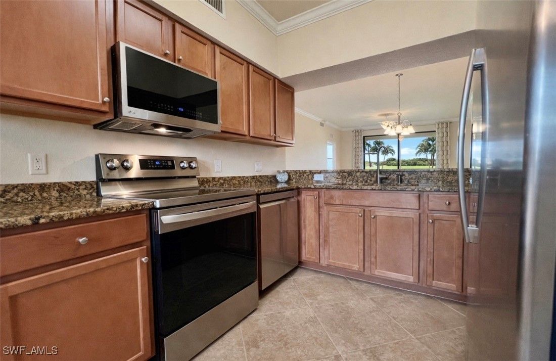- Dryer, Dishwasher, Electric Cooktop, Disposal, Ice Maker, Microwave, Refrigerator, Self Cleaning Oven, Washer