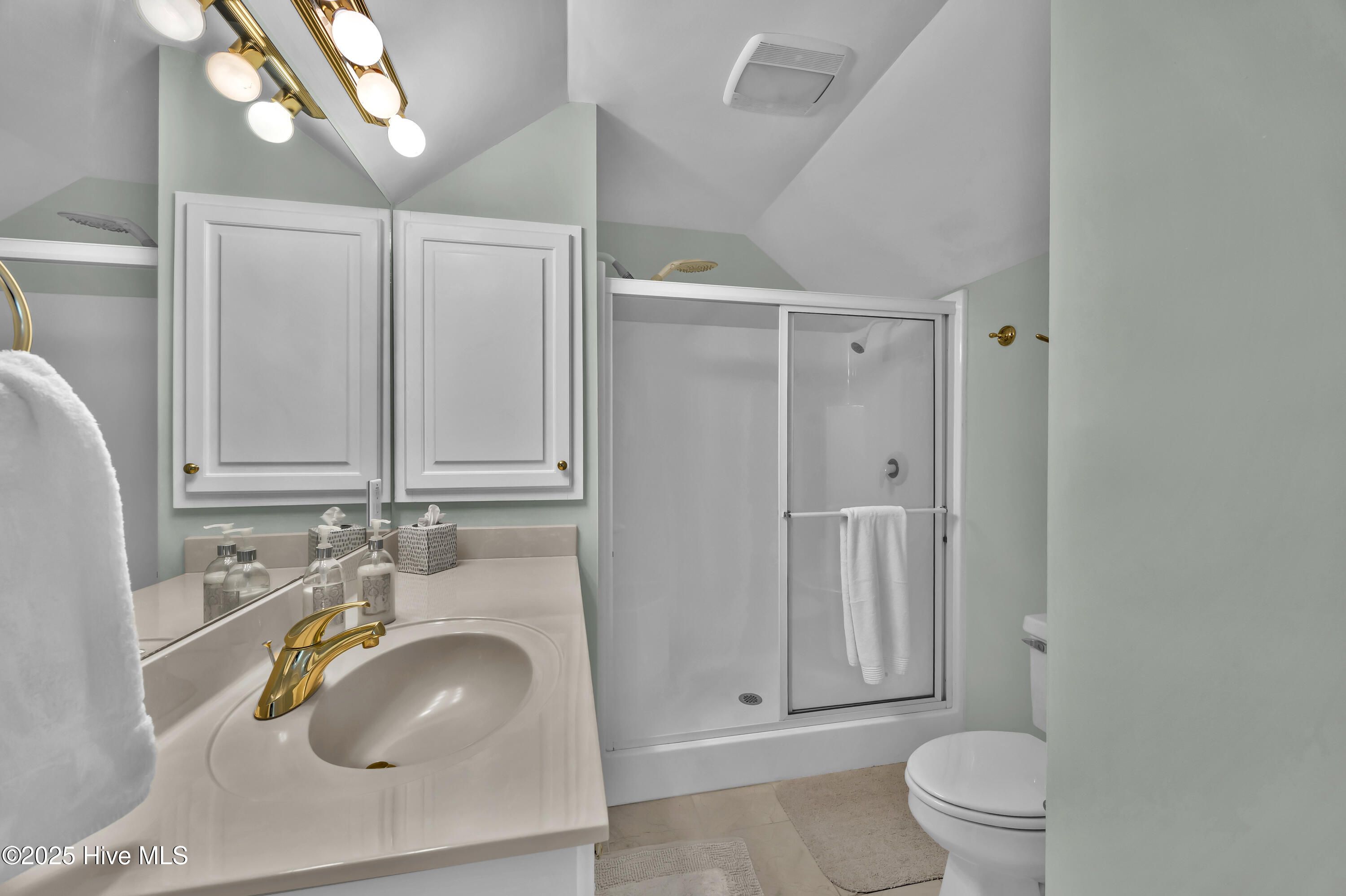 - Master Downstairs, Vaulted Ceiling(s), High Ceilings, Entrance Foyer, Solid Surface, Ceiling Fan(s), Walk-in Shower