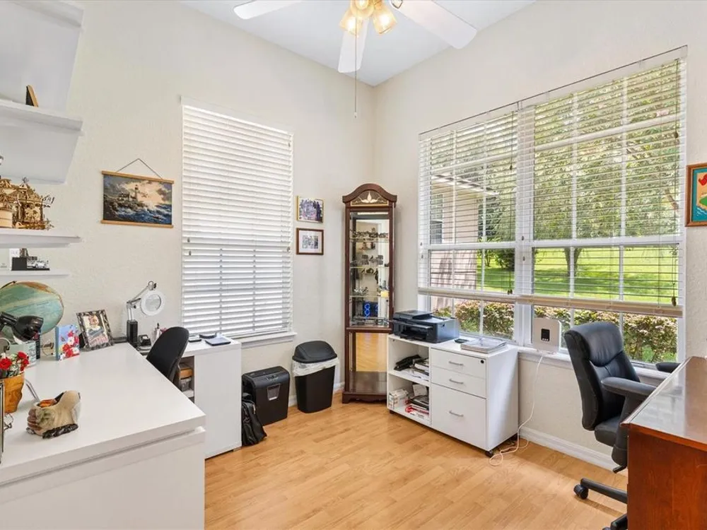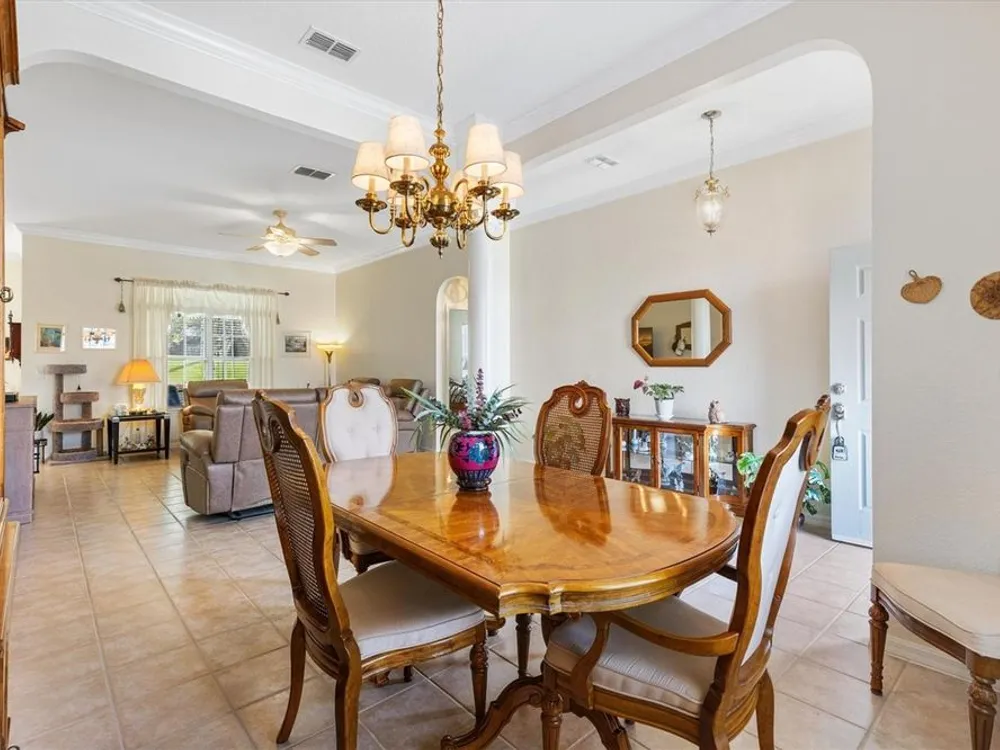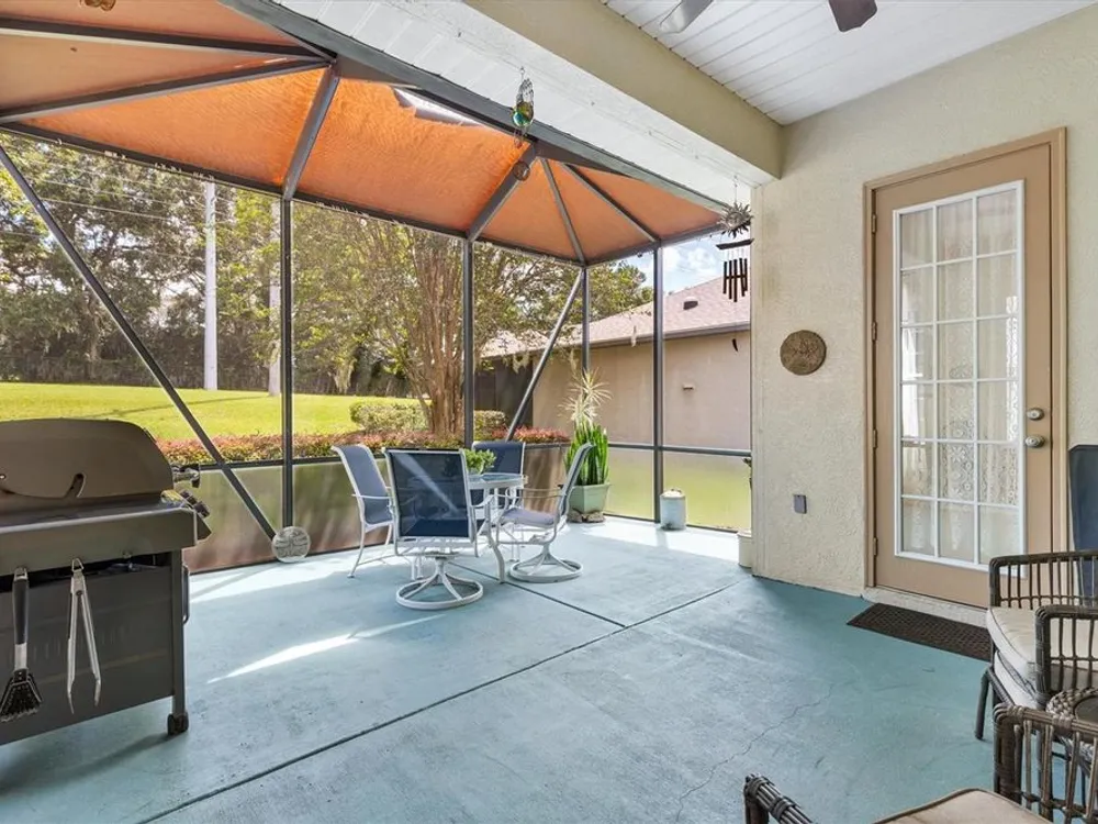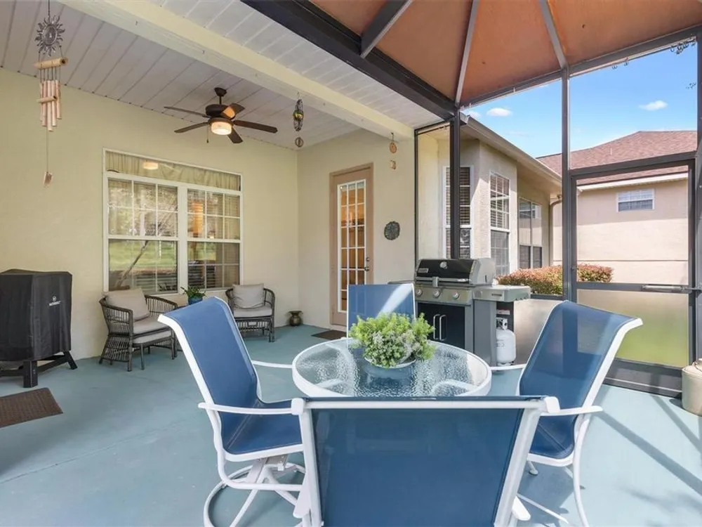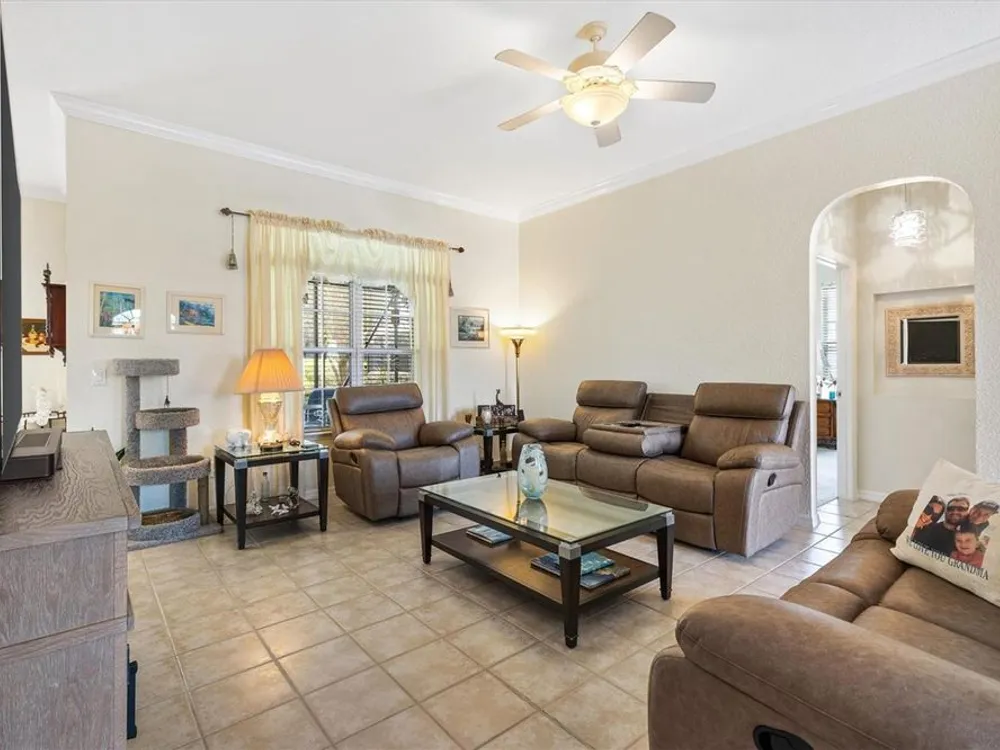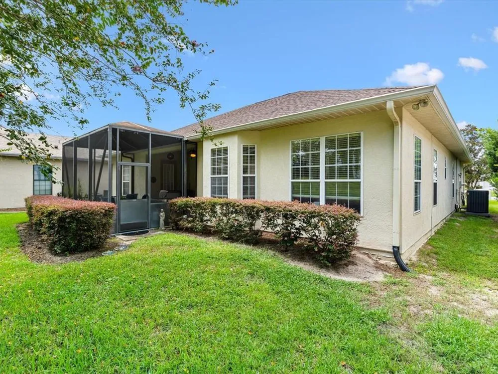 Welcome to your new home in the Exclusive 55+ Gated Golf Community of STONECREST, with all the amenities, adjacent to THE VILLAGES, Florida! Motivated Seller!! This thoughtfully designed Dogwood floor plan has been modified to provide flexibility, Featuring 3 Bedrooms, VERSATILE BONUS ROOM, and 2 Baths. NEW ROOF (2019) and HVAC system in (2012), NEW INTERIOR PAINT (2024), NEW CARPET in PRIMARY BEDROOM (2024), NEW OVERHEAD STORAGE and SHELVING in garage (2024), LG Washer and Dryer (2023). The Kitchen is the heart of the home, offering STAINLESS STEEL Appliances (refrigerator 2024), bay window with a cozy window seat and storage, and warm touches like under and above cabinet lighting. From here, step into the screened lanai that also connects to the Primary suite, creating the perfect place to relax with morning coffee. Inside, CROWN MOLDING, TRAY CEILING with a decorative column in dining room, and high ceilings give the Living and Dining spaces a sense of elegance. Pocket doors throughout open the home while maintaining privacy. Ceiling fans in all bedrooms and lanai. The Primary suite feels like a retreat, complete with dual vanities, walk-in shower, and Large Walk-in Closet. Even the laundry room is oversized, with a utility sink for added convenience. Outdoors, the SCREENED LANAI extends to a covered Birdcage, where you can enjoy views of the private backyard. With resort style amenities just steps away and The Villages minutes from your doorstep, this home offers not just a place to live, but the retirement lifestyle you’ve been dreaming of. Isn’t it time to make it yours?