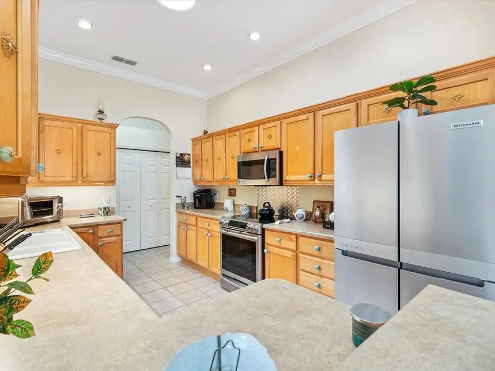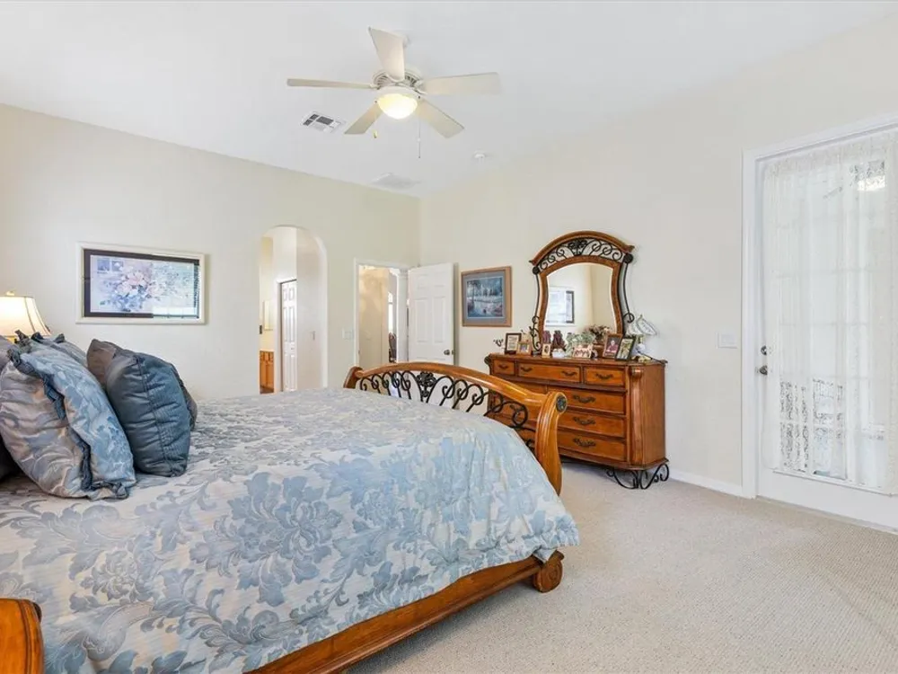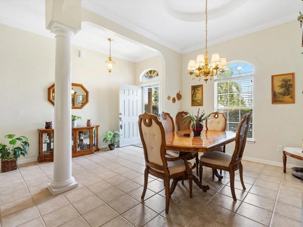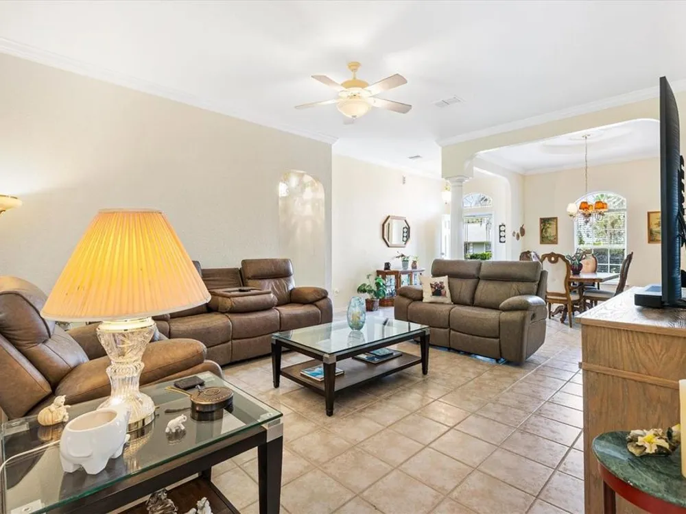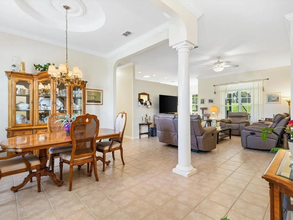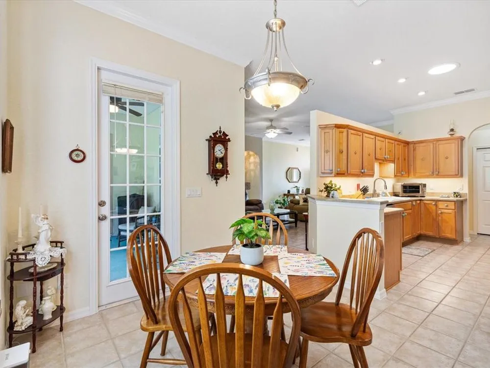 Welcome to your new home in the Exclusive 55+ Gated Golf Community of STONECREST, with all the amenities, adjacent to THE VILLAGES, Florida! Motivated Seller!! This thoughtfully designed Dogwood floor plan has been modified to provide flexibility, Featuring 3 Bedrooms, VERSATILE BONUS ROOM, and 2 Baths. NEW ROOF (2019) and HVAC system in (2012), NEW INTERIOR PAINT (2024), NEW CARPET in PRIMARY BEDROOM (2024), NEW OVERHEAD STORAGE and SHELVING in garage (2024), LG Washer and Dryer (2023). The Kitchen is the heart of the home, offering STAINLESS STEEL Appliances (refrigerator 2024), bay window with a cozy window seat and storage, and warm touches like under and above cabinet lighting. From here, step into the screened lanai that also connects to the Primary suite, creating the perfect place to relax with morning coffee. Inside, CROWN MOLDING, TRAY CEILING with a decorative column in dining room, and high ceilings give the Living and Dining spaces a sense of elegance. Pocket doors throughout open the home while maintaining privacy. Ceiling fans in all bedrooms and lanai. The Primary suite feels like a retreat, complete with dual vanities, walk-in shower, and Large Walk-in Closet. Even the laundry room is oversized, with a utility sink for added convenience. Outdoors, the SCREENED LANAI extends to a covered Birdcage, where you can enjoy views of the private backyard. With resort style amenities just steps away and The Villages minutes from your doorstep, this home offers not just a place to live, but the retirement lifestyle you’ve been dreaming of. Isn’t it time to make it yours?