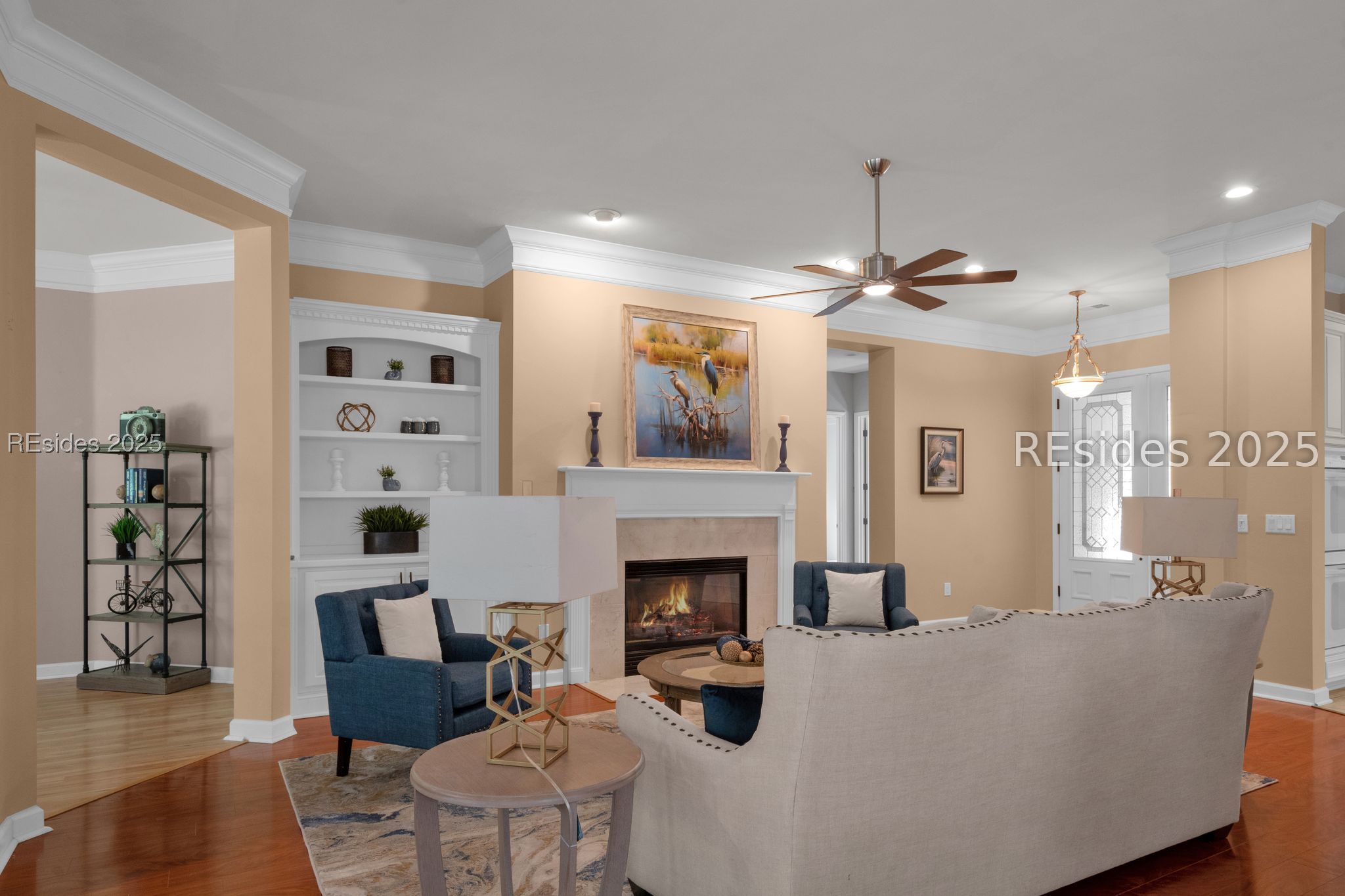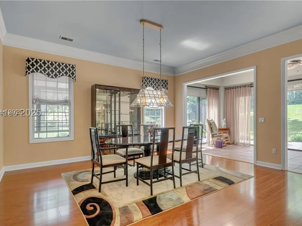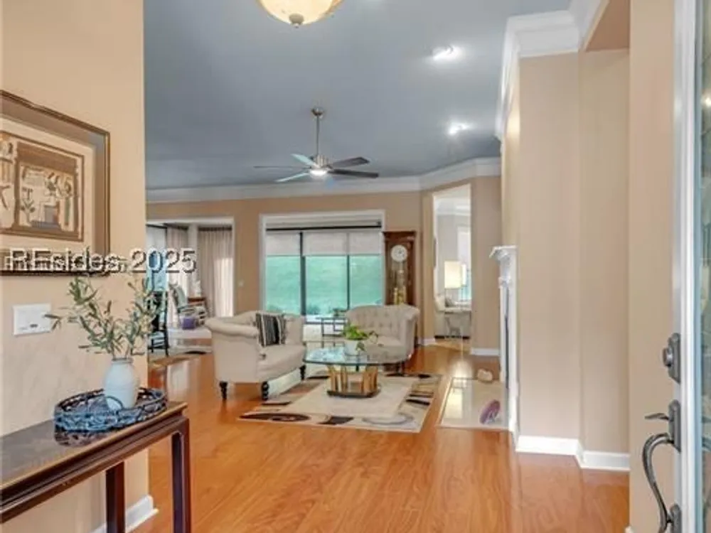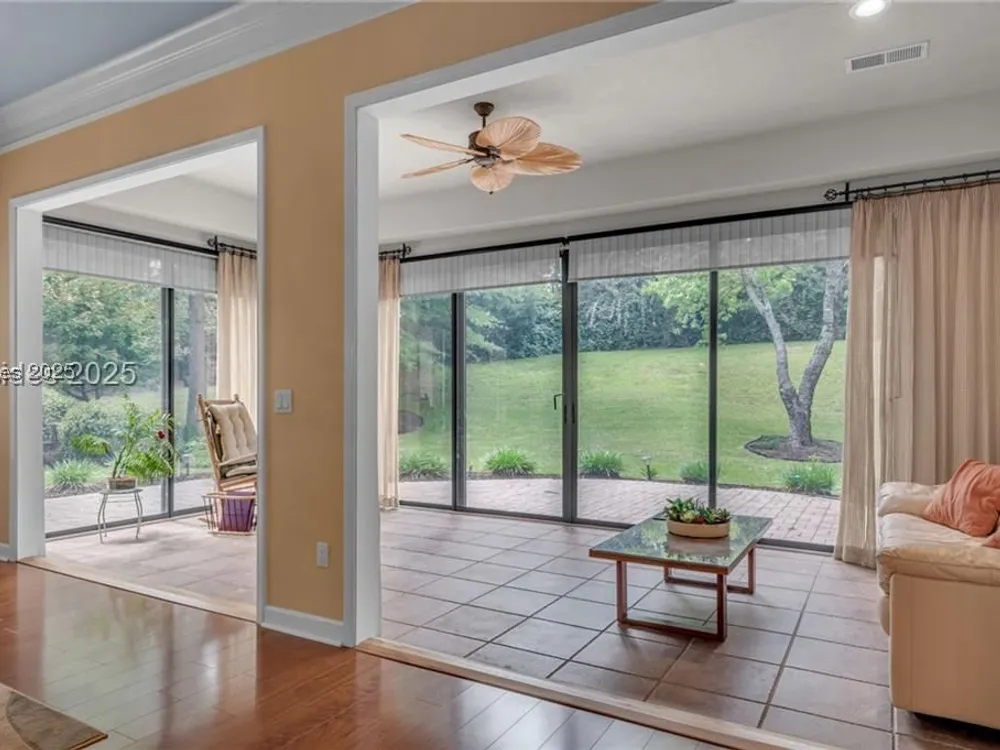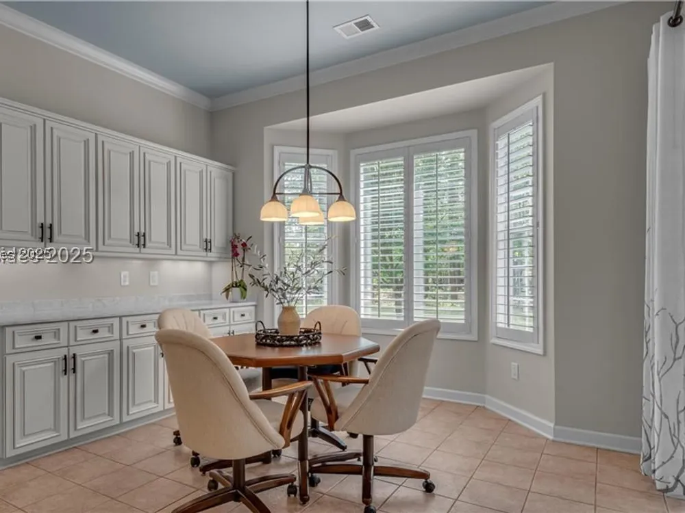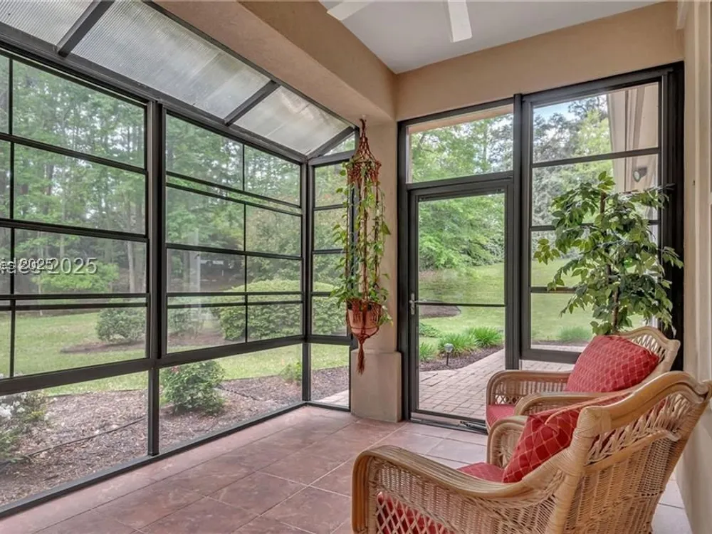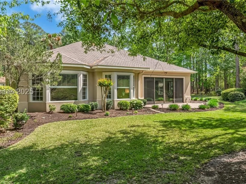Updated and Impeccably maintained home in Riverbend features 2 bedrooms, 2 baths, large office/den, Carolina Room, eat-in kitchen with newer custom cabinets, quartz counters, gas range, and newer appliances. New HVAC 2024, new roof 2017, tankless water heater. Beautifully landscaped yard with open green space on side of home. Enjoy the screened porch and paver patio with total privacy in the backyard. Two-car garage plus Golf Cart Bay with epoxy finish. Best-priced home in Riverbend, Sun City's upscale riverfront community!!