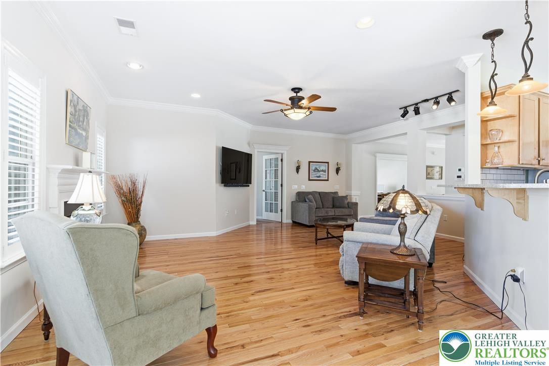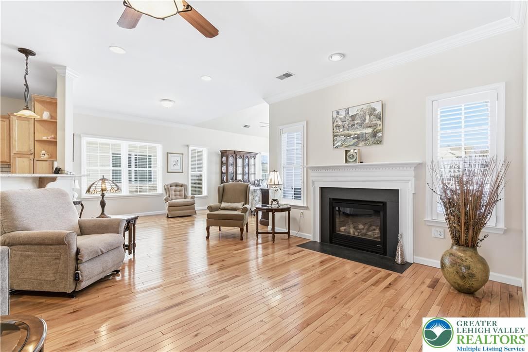 Welcome to this meticulously, well maintained move in ready home. Feel right at home from the moment you enter! The house boasts gleaming hardwood floors, granite countertops with subway tile backsplash and crown molding. There is plenty of natural light. The office/den is perfect for working from home. The spacious primary bedroom has a vaulted ceiling and 2 walk in closets. Enjoy family time around the fireplace during the winter and the stamped concrete patio during the summer for family gatherings..