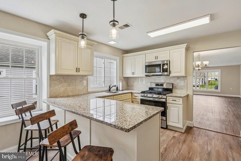 Welcome to this beautifully remodeled, gas-converted home in sought-after Leisure Knoll offering 1,942 sq ft of stylish living space and wonderful community amenities. This turnkey home features a Timberline roof, vinyl siding, double tilt vinyl windows, upgraded landscaping, sprinkler system, double paver driveway, fireplace, and a 4-season bonus room backing to peaceful woods. Inside, enjoy a custom kitchen with granite counters and stainless steel appliances, two beautifully updated full baths, larger base and window trim, quality vinyl flooring, plus new lighting and ceiling fans throughout. Designed for easy living and effortless entertaining, this home truly has it all. A must-see home that stands out!
