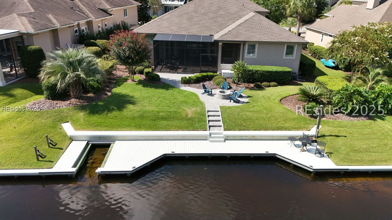 Award-Winning Hampton Lake Waterfront Home! This stunning 4-bedroom, 3-bath residence offers the perfect blend of luxury and comfort. The 4th bedroom is currently being used as an office. Soaring 13 ceilings and rich trim details set the tone. The chef's kitchen boasts quartz countertops, a tile backsplash, pot filler, gas cooktop, and an additional sink on the island with a garbage disposal. The spacious primary suite is a serene retreat with a spa-like shower and jetted tub with access to screened porch and lanai. An oversized 3-car garage features epoxy flooring, a mini-split system for year-round comfort, a full workshop, and extensive storage room. Outdoors, enjoy a screened-in porch and lanai with a full summer kitchen, plus a Weardeck dock complete with water, electricity, and seating. A fire pit sets the stage for evening entertainment. Move-in ready and designed for both relaxation and entertainment, this home is waiting for you. - Roof 2025 - HVAC 2019 - All New Flooring 2025 - New Dock and Kayak Launch 2020