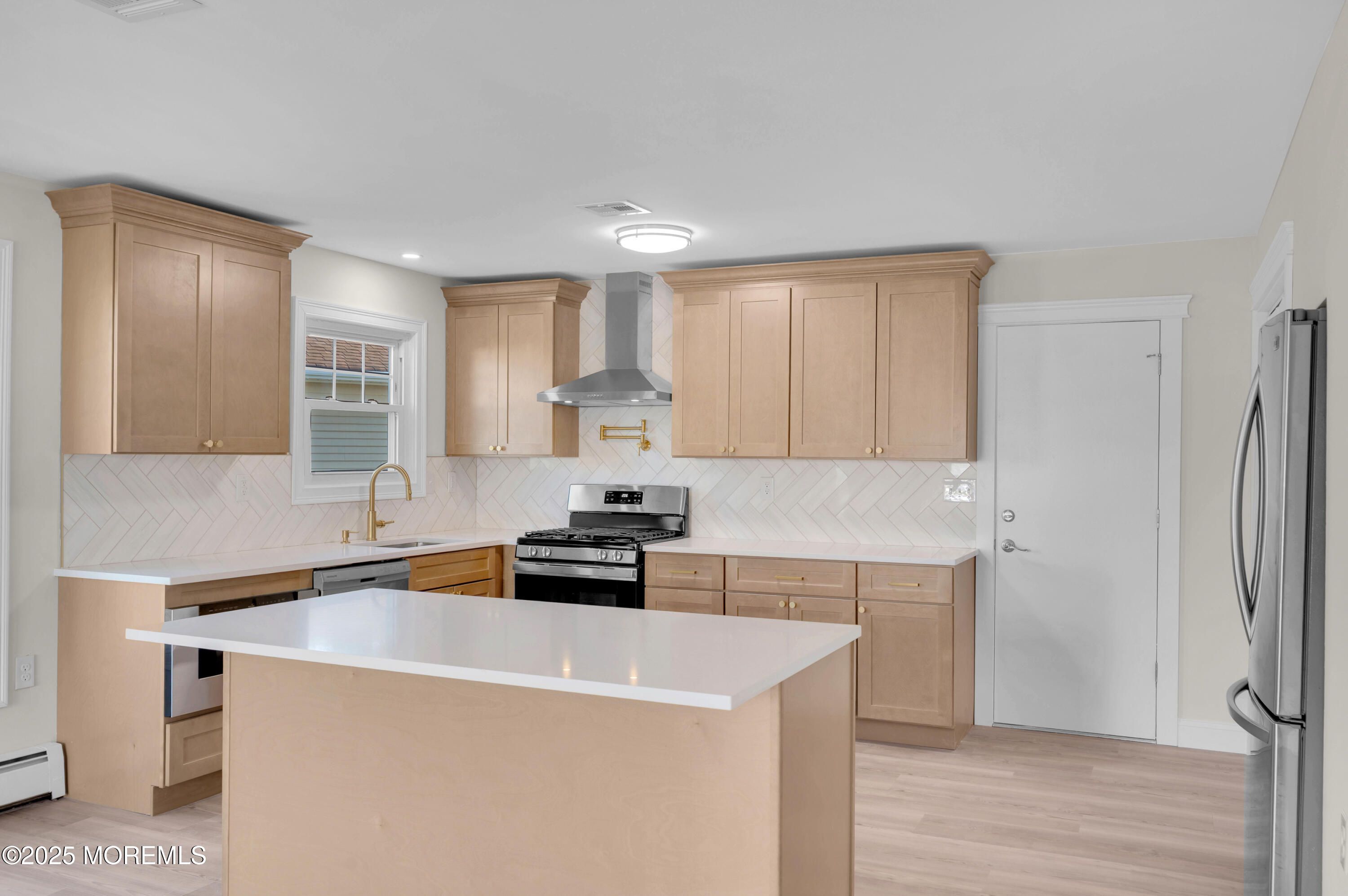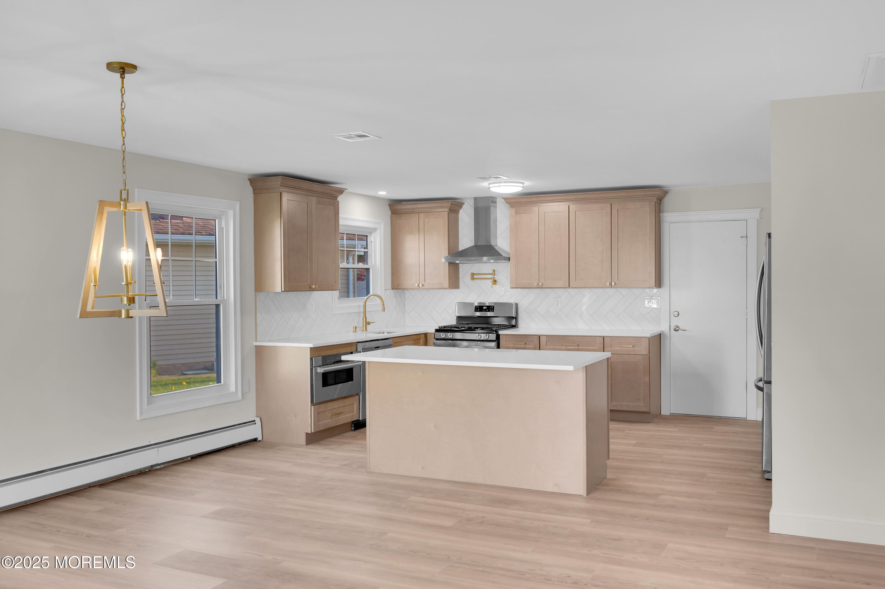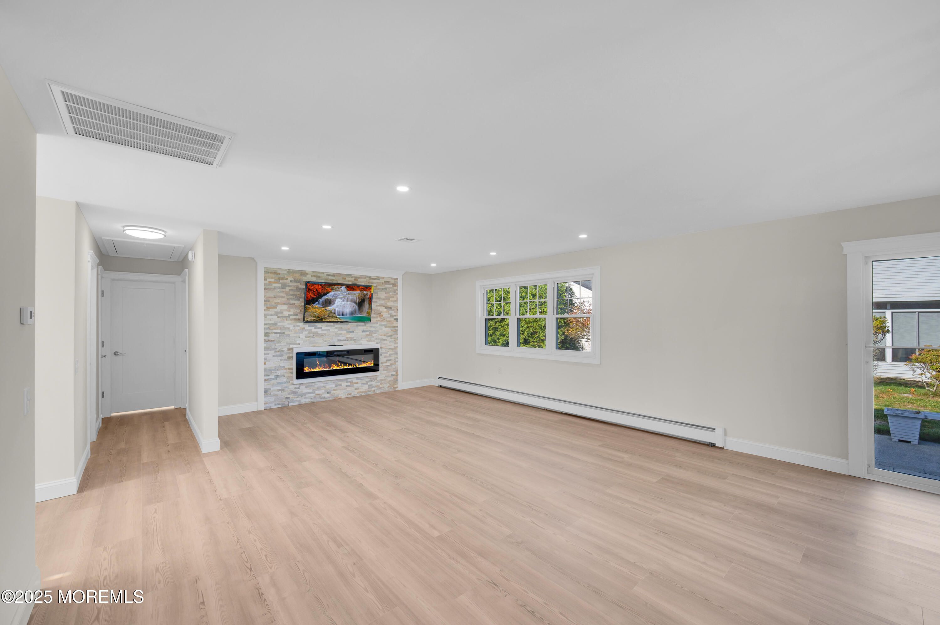 This Bal Harbor has been completely remodeled it features a custom kitchen with all new Cashew solid wood soft closing cabinets, wine fridge in the island, pot filler above the range, crown molding, herringbone tiled backsplash, range hood vented to the exterior and push button in cabinet microwave. Custom tile work in both bathrooms. Master walk in shower with bench and rain head. Vinyl waterproof floors throughout. New recessed lighting in the living room as well as a custom stone wall the boasts a mounted TV and electric fireplace to take the chill out of the air on these crisp fall nights. Along with a new 40-gallon natural water heater and HVAC. It also has a brand-new asphalt double driveway for off the street parking.