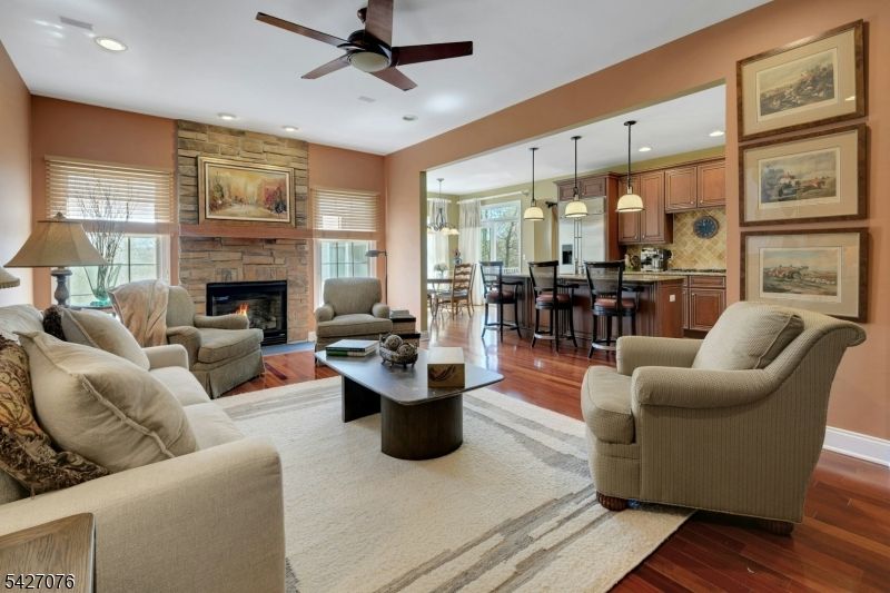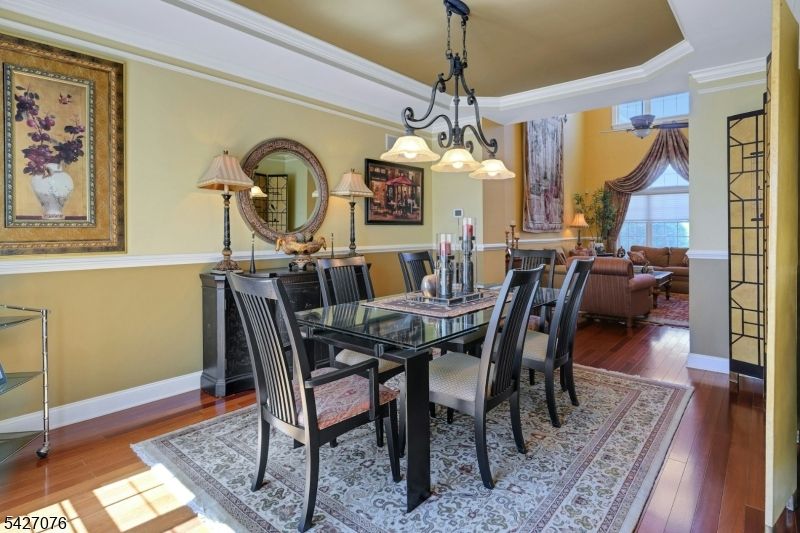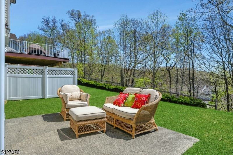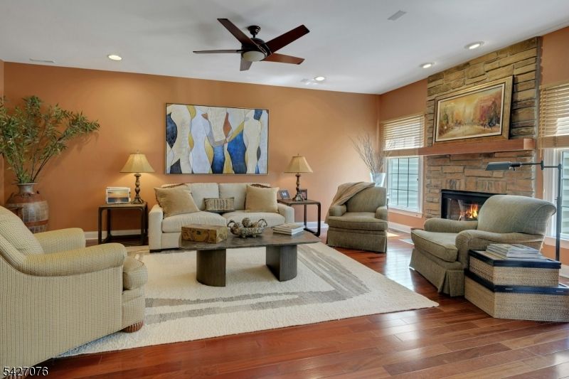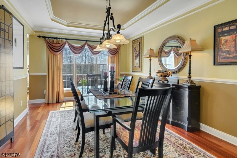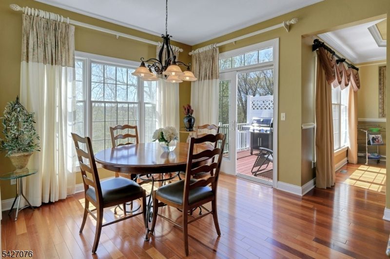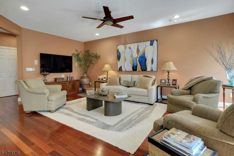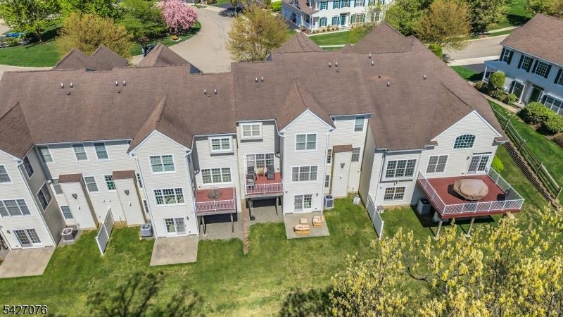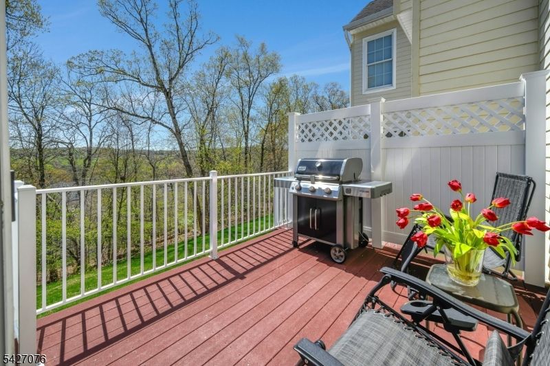Live in the height of luxury at The Regency in Denville! This decorator appointed townhouse reclines at the top of the development and is nestled in a charming cul de sac. The premium lot upgrade commands sweeping hilltop views from your private rear deck. Gleaming Brazilian cherry wood floors welcome you at the entry. Two story living room and 9 ft. ceilings on the first floor give way to an open concept floorplan that offers over 3,100 sq. ft. of living space. An open concept is evident from the formal dining and living rooms to the kitchen with center island, separate eating area and great room with gas fireplace. The gourmet kitchen has a center island/breakfast bar, stainless appliances and built in refrigerator. Work from home in ease from a custom designed office/den with cherry built ins. The second floor is newly carpeted with the exception of Brazilian cherry floors in the primary bedroom suite. The primary bath was remodeled in 2024 to include a dramatic soaking tub, double shower, radiant heat floors, floating double vanity and lighted vanity mirrored cabinets. The Walkout lower level comes complete with full size daylight windows and opens to a private patio. Finish the space to your specifications! This unit offers rare, enviable overflow parking around the green and a 2 car garage with EV charger. What distinguishes the Regency is its expansive, private setting while offering a full array of active community activities including a clubhouse, pool & tennis.