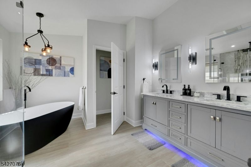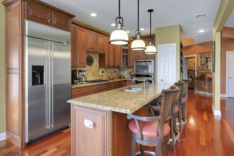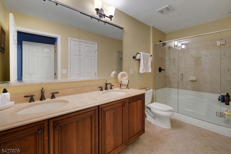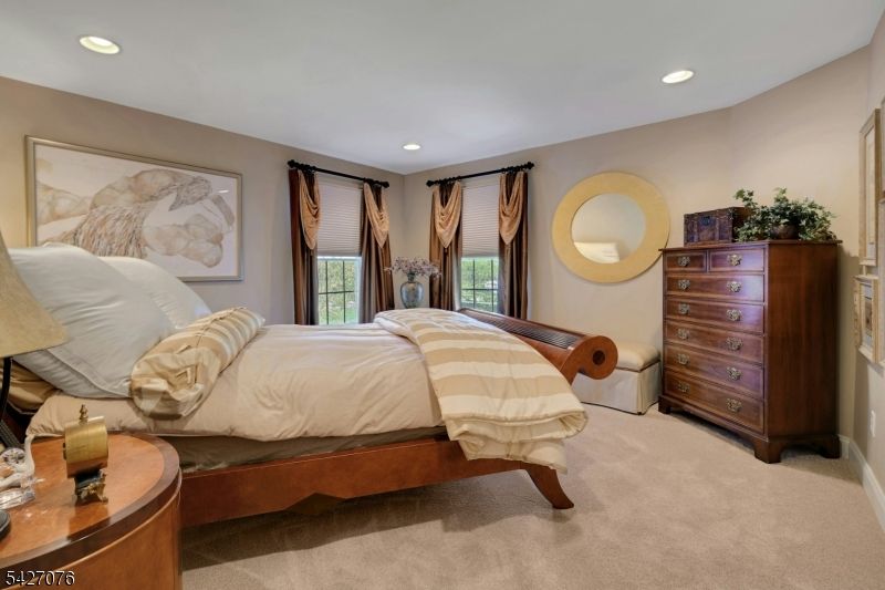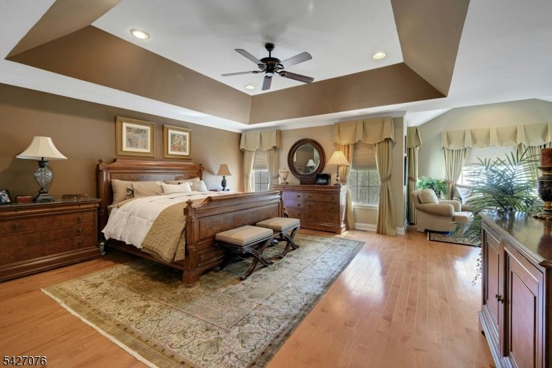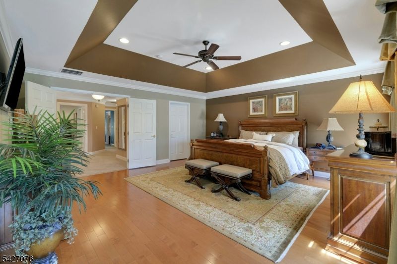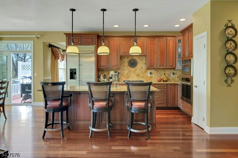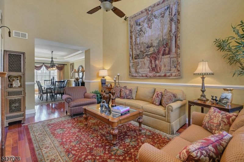 Live in the height of luxury at The Regency in Denville! This decorator appointed townhouse reclines at the top of the development and is nestled in a charming cul de sac. The premium lot upgrade commands sweeping hilltop views from your private rear deck. Gleaming Brazilian cherry wood floors welcome you at the entry. Two story living room and 9 ft. ceilings on the first floor give way to an open concept floorplan that offers over 3,100 sq. ft. of living space. An open concept is evident from the formal dining and living rooms to the kitchen with center island, separate eating area and great room with gas fireplace. The gourmet kitchen has a center island/breakfast bar, stainless appliances and built in refrigerator. Work from home in ease from a custom designed office/den with cherry built ins. The second floor is newly carpeted with the exception of Brazilian cherry floors in the primary bedroom suite. The primary bath was remodeled in 2024 to include a dramatic soaking tub, double shower, radiant heat floors, floating double vanity and lighted vanity mirrored cabinets. The Walkout lower level comes complete with full size daylight windows and opens to a private patio. Finish the space to your specifications! This unit offers rare, enviable overflow parking around the green and a 2 car garage with EV charger. What distinguishes the Regency is its expansive, private setting while offering a full array of active community activities including a clubhouse, pool & tennis.
