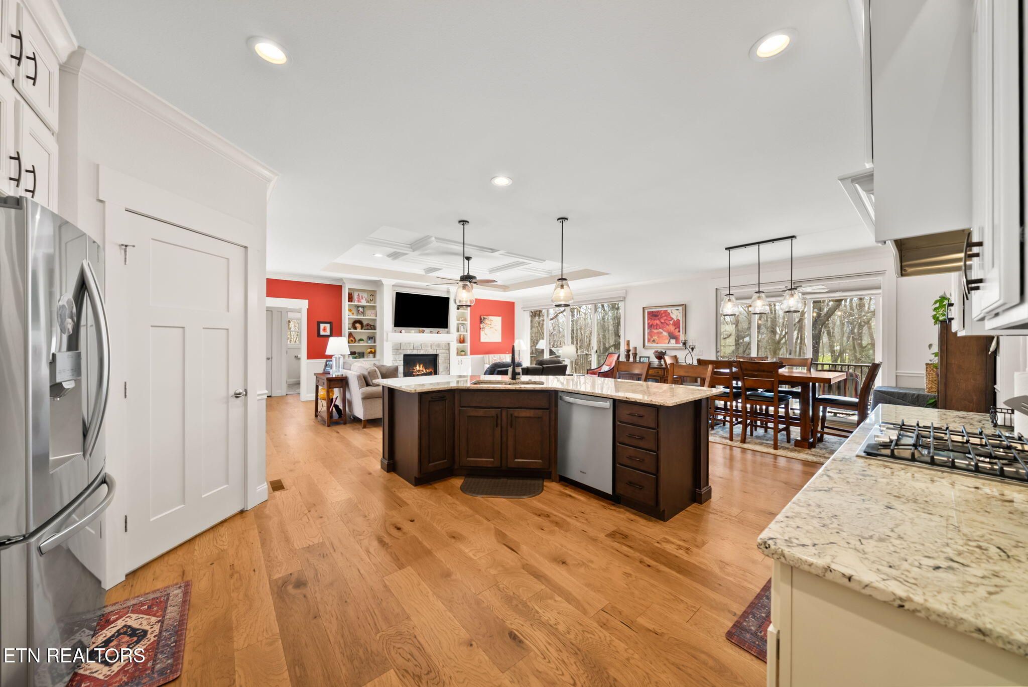 Welcome to a home where custom craftsmanship meets thoughtful upgrades in one of the area's most beautiful neighborhoods. Built in 2019 by Fairfield's premier custom home builder, this one-level split floor plan was designed with comfort, functionality, and effortless living in mind. Located in a beautifully maintained neighborhood offering natural gas, fiber optics, underground utilities, and curbed streets - details that truly set it apart. Warm tones and rich textures flow throughout with Virgilo Hickory Antique engineered hardwood and oversized tile in the wet areas. The great room is anchored by a stunning stone fireplace, accented with coffered trim and white cabinetry for a timeless yet inviting feel. Two separate sliding doors flood the space with natural light and open seamlessly to the outdoor living areas. The kitchen is both elegant and practical, offering abundant soft-close cabinetry, granite countertops, a gas range, oversized island, and a walk-in pantry complete with custom closet systems to maximize storage. Two guest bedrooms provide flexibility for visiting family, a home office, or den space. The primary suite is a peaceful retreat filled with natural light and designer touches. The spa-like bath features dual sinks, seamless shower entry, and convenient access to an oversized walk-in closet with custom cabinetry. The laundry room continues the home's thoughtful design with additional cabinetry and granite countertops for added workspace and storage. Step outside to your private backyard sanctuary, enhanced by added fencing for privacy. Enjoy year-round outdoor living on the 16x12 screened-in porch with Trex decking and AFCO railing, plus an extended 15x12 deck with a dedicated gas line ready for grilling. A 14x20 workshop offers ideal space for hobbies or additional storage. Additional premium features include: Whole-house generator with transferable 10-year warranty. Tankless water heater. Aprilaire Model 1830 crawl space dehumidifier. Upgraded Heatilator NDV4236I-B fireplace. Whole-house water filtration system. 8' insulated garage doors with epoxy-coated floors. Additional storage under the deck for lawn equipment or outdoor items This home blends quality construction, modern infrastructure, and low-maintenance living - ideal for those looking to enjoy comfort, privacy, and the next chapter with peace of mind.
