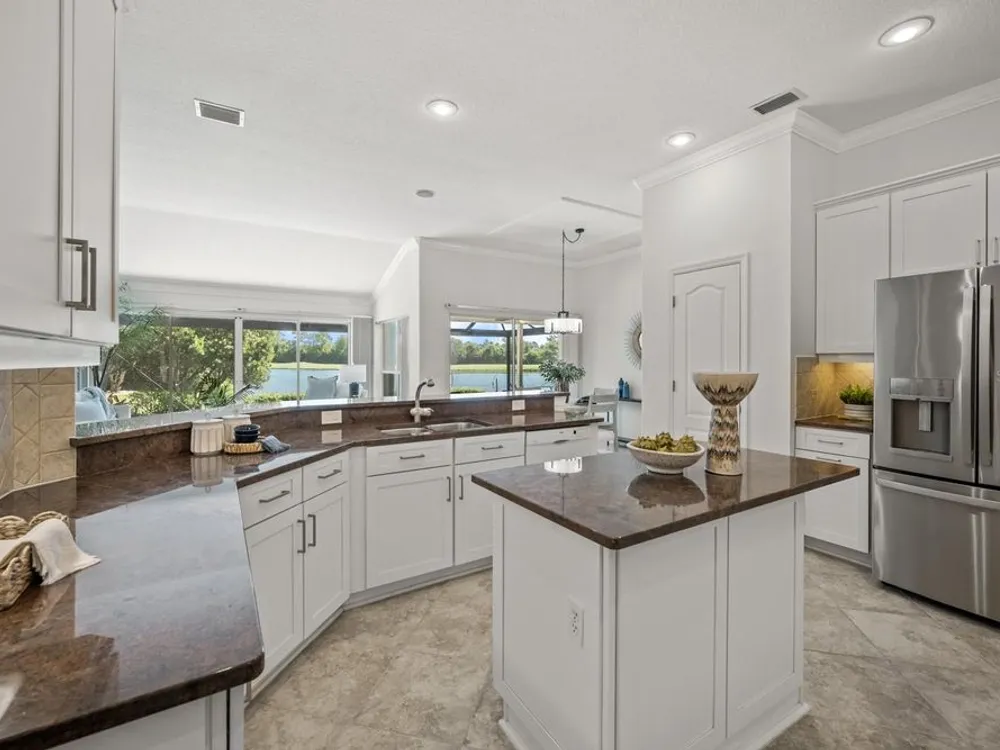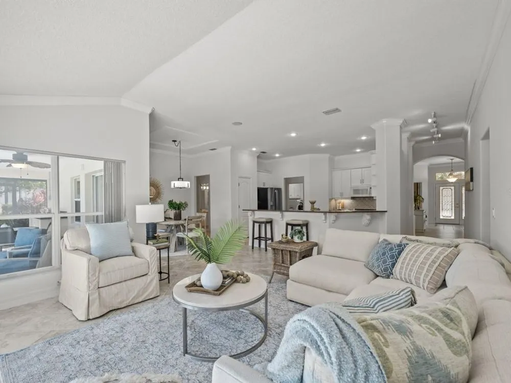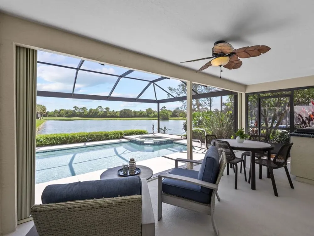 The great room beckons with a view overlooking a 12’ x 35’ sparkling pool and a custom "picture- window-pool-screen” view of the Grand Haven 11th Fairway Pond. Nestled, as it is, in the pond’s corner, the home’s view widens to an over-1000’ panorama of the far shore. The distance protects your privacy, and with a pair of binoculars you’ll often see a sunbathing gator or osprey. Because the covered lanai faces east, the outside living room enjoys perpetual shade. Inside, this home has been meticulously cared for and conveys warmth and invitation. The kitchen’s recent updates to its cabinetry, countertops, and appliances – make it the focal point to the home. The home is hurricane hardened, sporting cinder-block construction, inverter electric generator, corrugated-steel shutters, and a hurricane curtain system that encloses the pool lanai. The widened garage parks two cars and adds an extra 6’x17’ feet of storage. This rare combination of postcard-worthy views and tranquility awaits!
