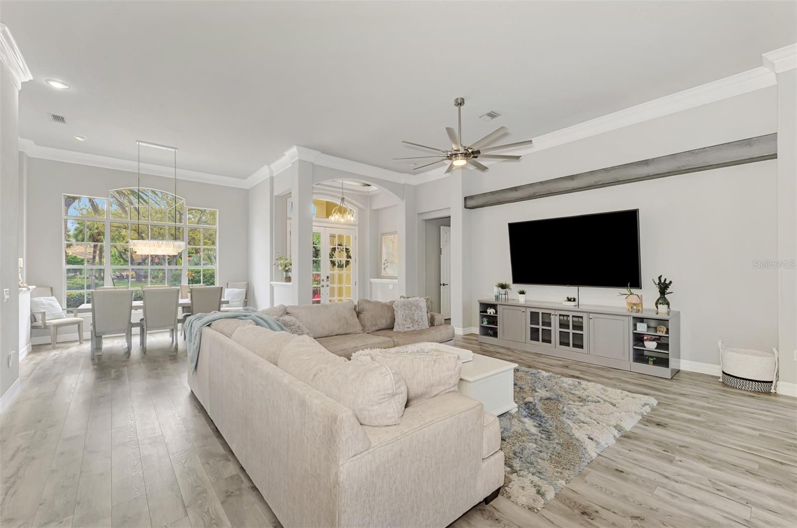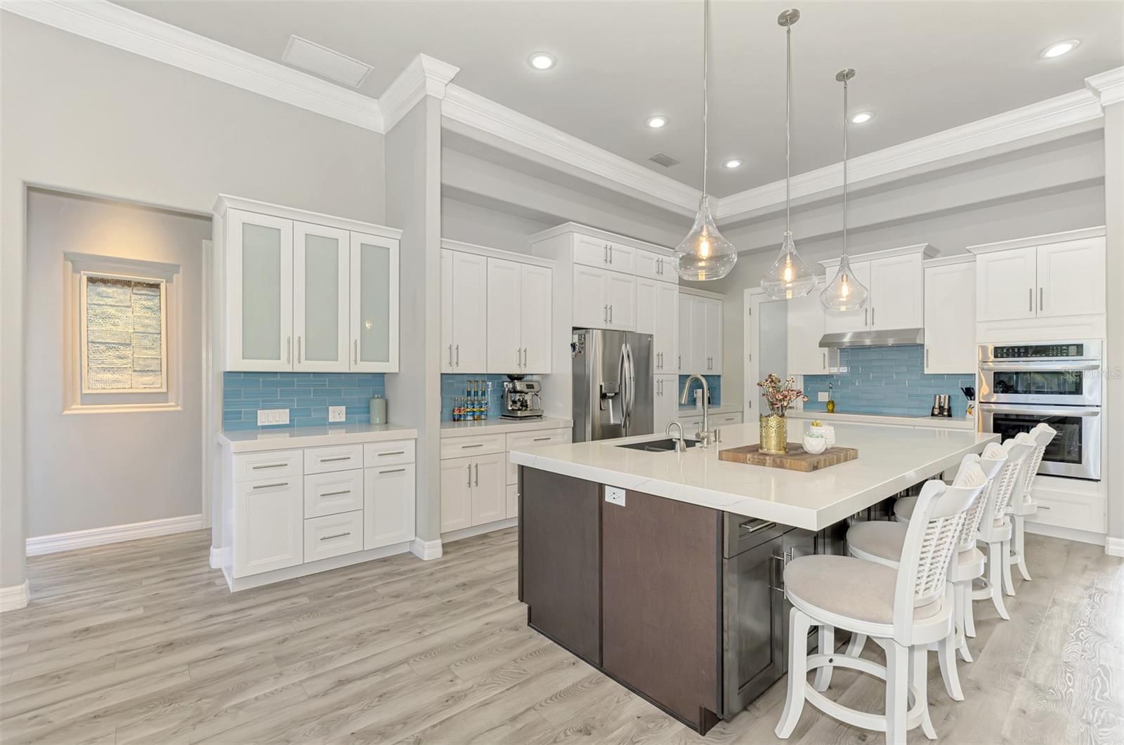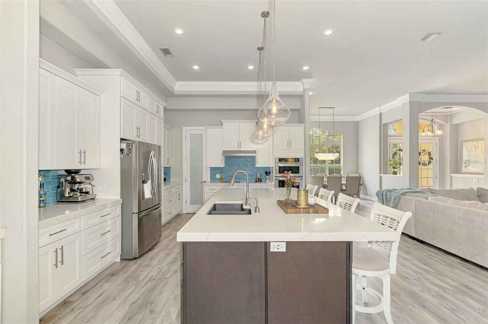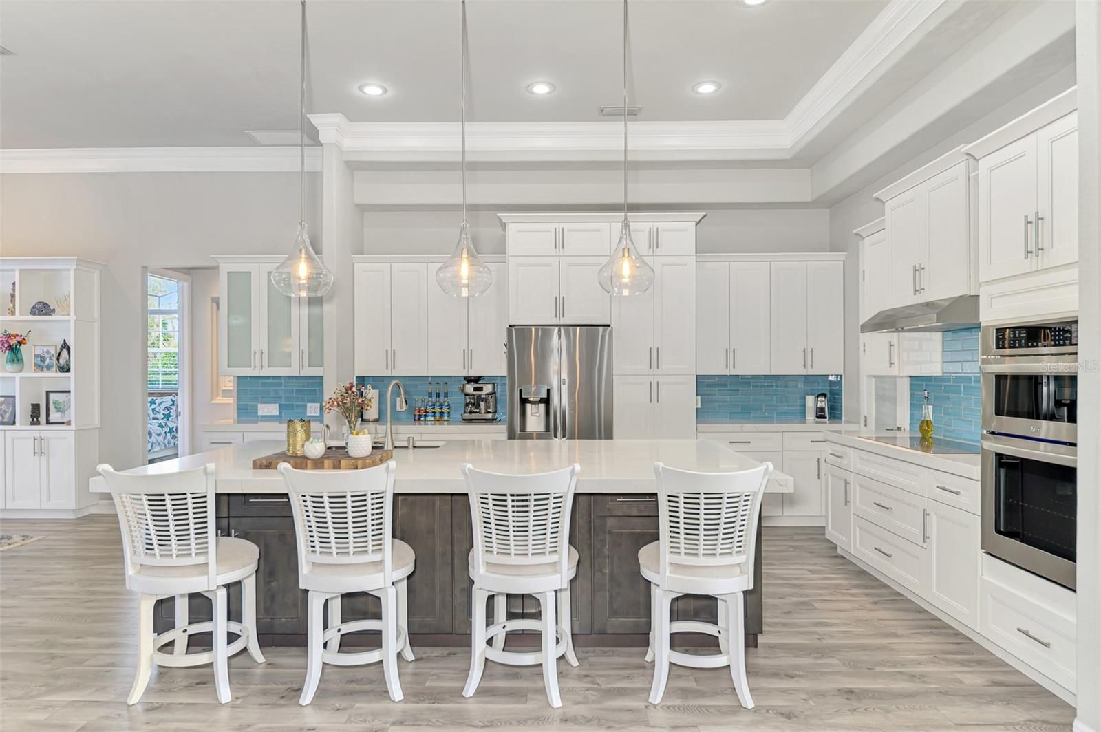 - Built-in Features, Ceiling Fan(s), Crown Molding, Dry Bar, High Ceilings, Kitchen/Family Room Combo, Open Floorplan, Solid-Wood Cabinets, Stone Counters, Tray Ceiling(s), Walk-In Closet(s), Window Treatments