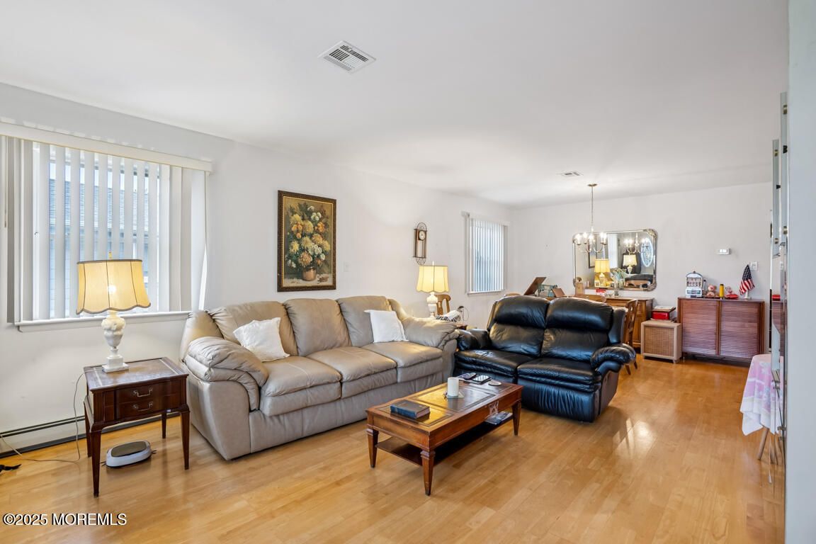 Beautifully maintained 2-bedroom ranch in sought-after Holiday City Berkeley! Bright open layout with hardwood floors, updated kitchen, charming retro bath, and sliders to a private patio. Enjoy electric heat, central air, garage, and an active 55+ community with pools, clubhouse & endless activities—minutes from beaches and shopping.