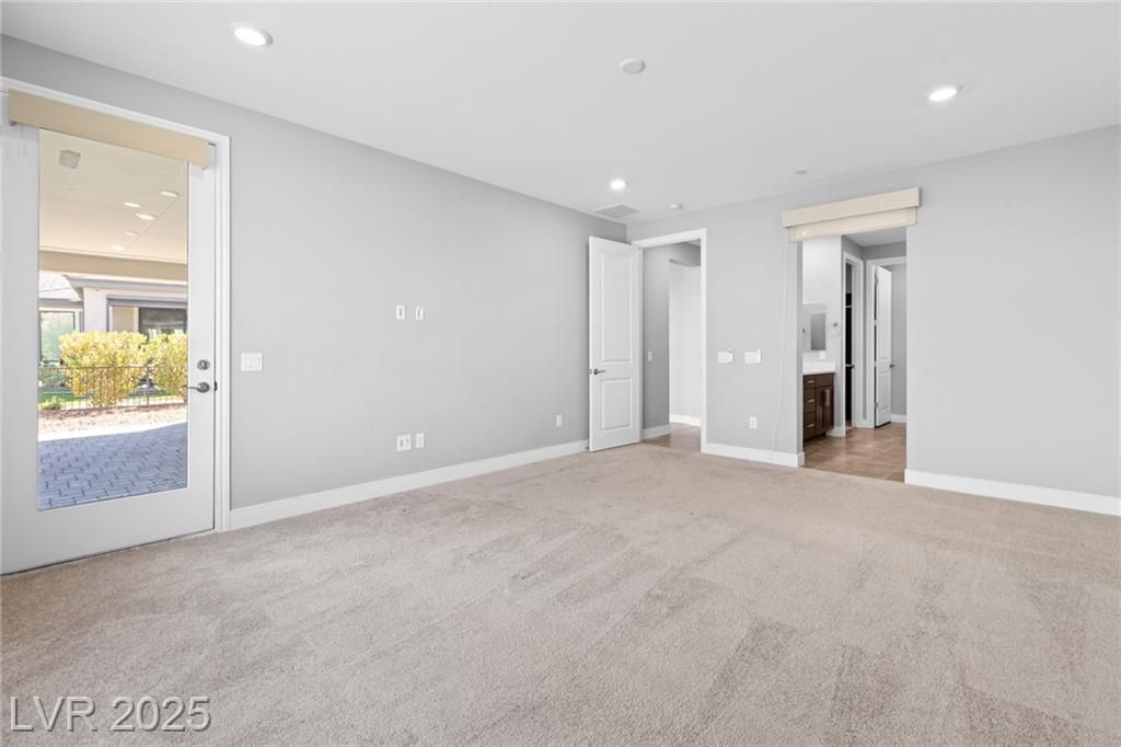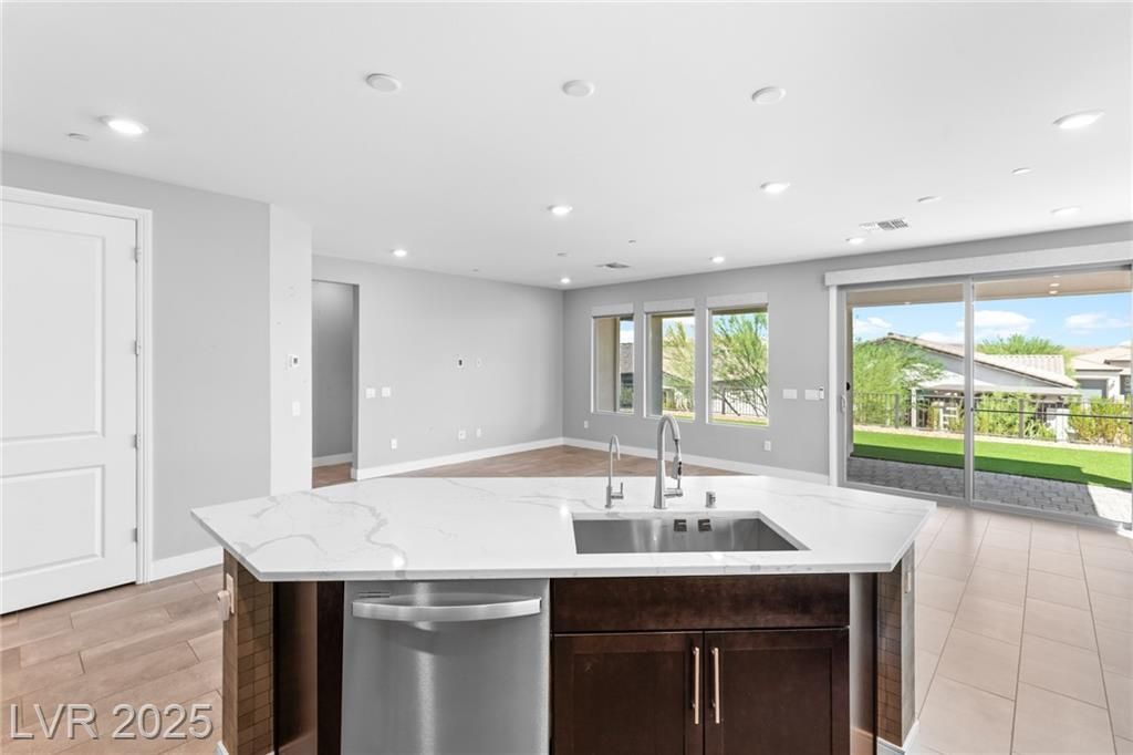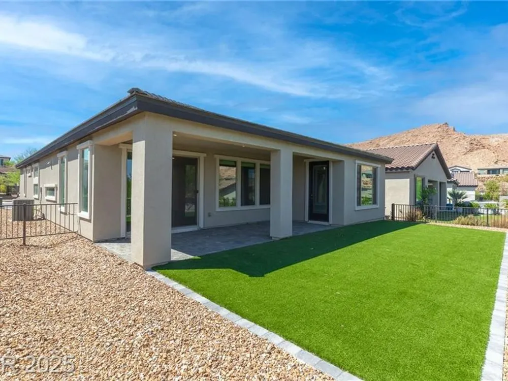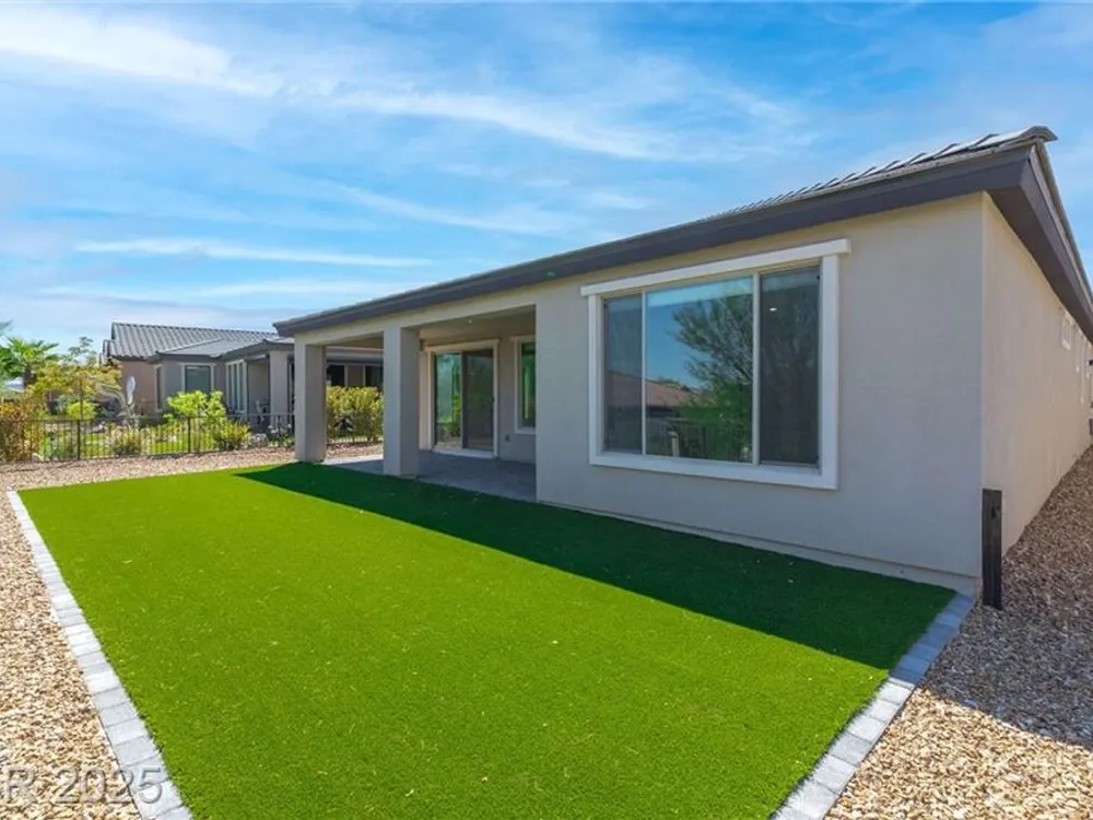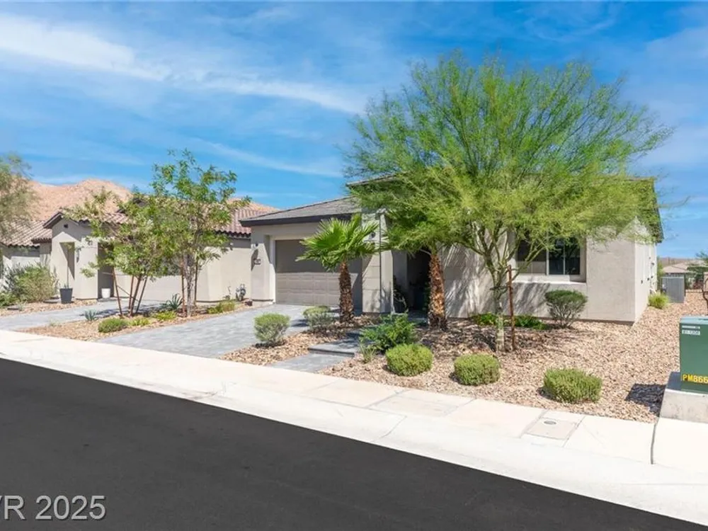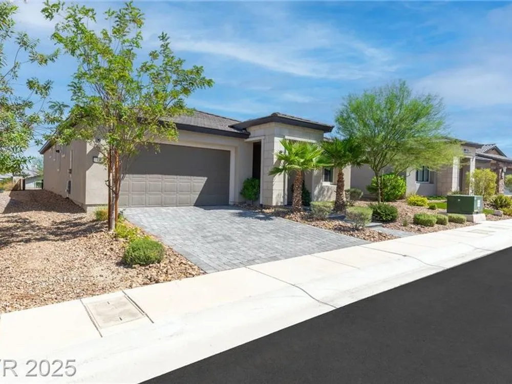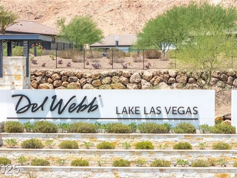 Gorgeous home in the desirable Del Webb 55+ community at Lake Las Vegas! This beautifully designed single-story home offers 2 spacious bedrooms, 2 full bathrooms, and a versatile den with elegant French doors. Step into the open-concept living & dining area featuring high ceilings & recessed lighting. The chef’s kitchen is equipped with stainless steel appliances, dark cabinetry w/ sleek hardware, & ample counter space. The primary suite offers direct access to the covered patio & includes a luxurious en-suite bathroom with a step-in shower with bench, double vanities, and a gorgeous walk-in closet with built-ins. Enjoy low-maintenance landscaping and manicured shrubs in front, & a driveway with stylish pavers. The covered patio is perfect for outdoor relaxation. Additional highlights include a spacious laundry room w/ cabinets and countertops. Terrific community amenities include access to a resort-style pool, clubhouse, fitness center, walking trails, social events, and more!