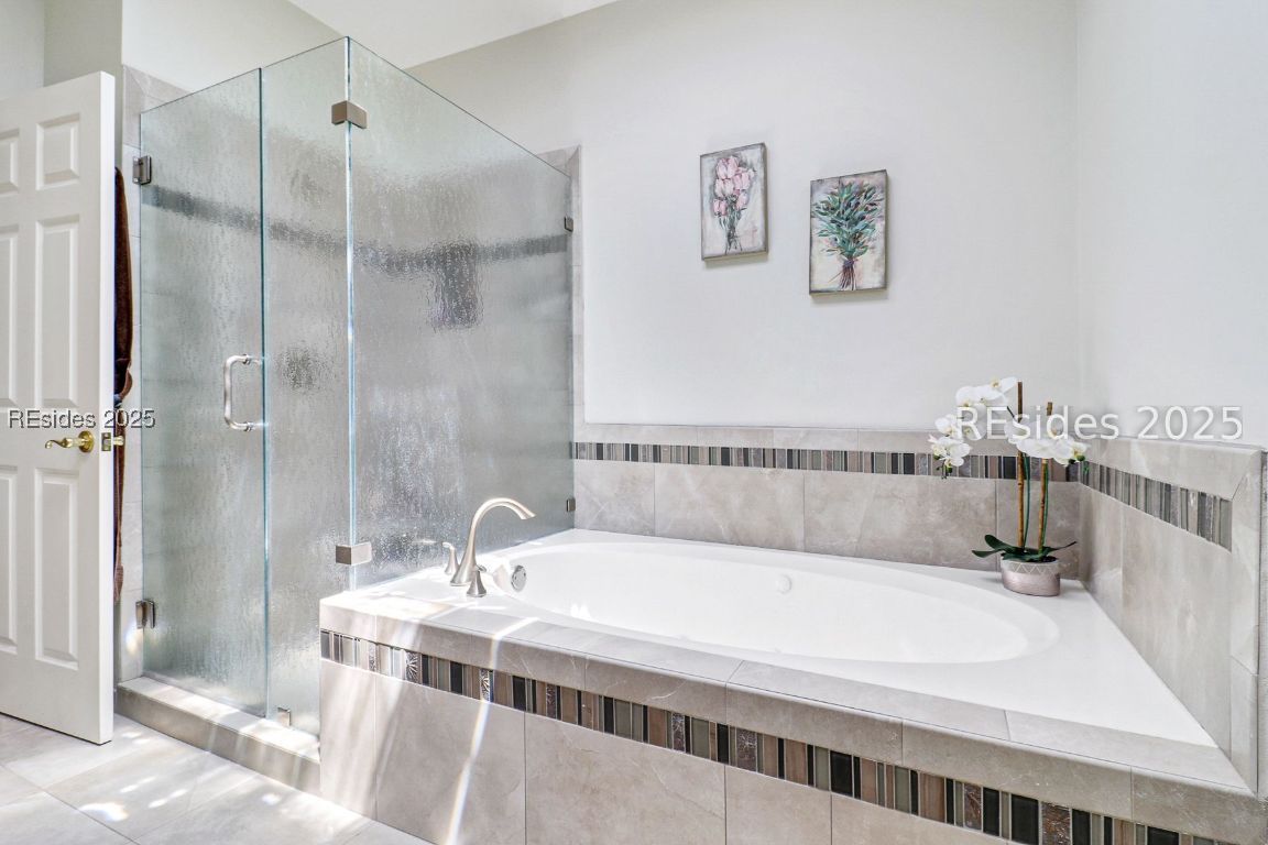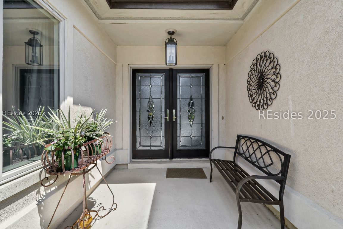 Excellent value on fully remodeled lifestyle residence with private outdoor Oasis and primo locale close to all popular HHP has to offer! Interior features include 9-15 smooth ceilings, LVP flooring, quartz & granite counters, custom/detailed millwork (crown molding, chair rail, etc.) & built-ins, electric fireplace, excellent natural light w/walls of windows + transom windows, artisan crafted stained glass accents, designer fixtures/hardware/lighting/window treatments, recessed lighting, ceiling fans, skylights, etc. Exterior offers private, wrap around/gated, outdoor Oasis with pristine hardscaping (Savannah brick planters & accents) & landscaping, specimen trees, mature plantings, spa with covered arbor, privacy wall, etc. with preferred north/east exposure for shaded late afternoons & evenings relaxing, grilling & entertaining Very livable floor plan offers Chefs kitchen (max cabinet/counter space, breakfast bar, Samsung & Bosch appliances, pendant & inside/under cabinet lighting, decorative tile backsplash) open to great room, formal/casual dining, excellent BR separation w/private primary suite boasting well-appointed bath & walk-in closet + 2 ample ensuite guest BRs, laundry room & 2 car garage w/epoxy finish floor. All with attractive/durable hard coat stucco exterior and prime, high elevation locale just a short stroll to Skull Creek, waterfront leisure path, CCHH + short drive/bike ride to waterfront dining/entertainment & shopping!