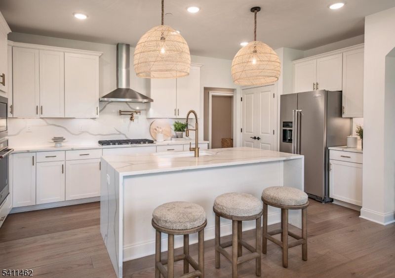 Located in the highly desirable borough of Far Hills, just minutes from the Far Hills train station and downtown Bernardsville, this beautifully appointed Branton townhome offers refined living in a premier setting. The home features a stunning kitchen with upgraded designer appliances and a large center island, seamlessly flowing into the open-concept dining area and great room. This inviting space is ideal for entertaining and is highlighted by a designer gas fireplace. The first-floor primary suite offers exceptional comfort with two oversized walk-in closets and a private en suite bath. Also on the main level is a private home office, providing an ideal space for working from home. The second floor includes two spacious bedrooms, each with its own walk-in closet and private bathroom, along with a generous loft area perfect for additional living or relaxation space. Anticipated delivery is September 2026. This is an age-restricted community. Still time to select custom design options. Photos are of a similar home.