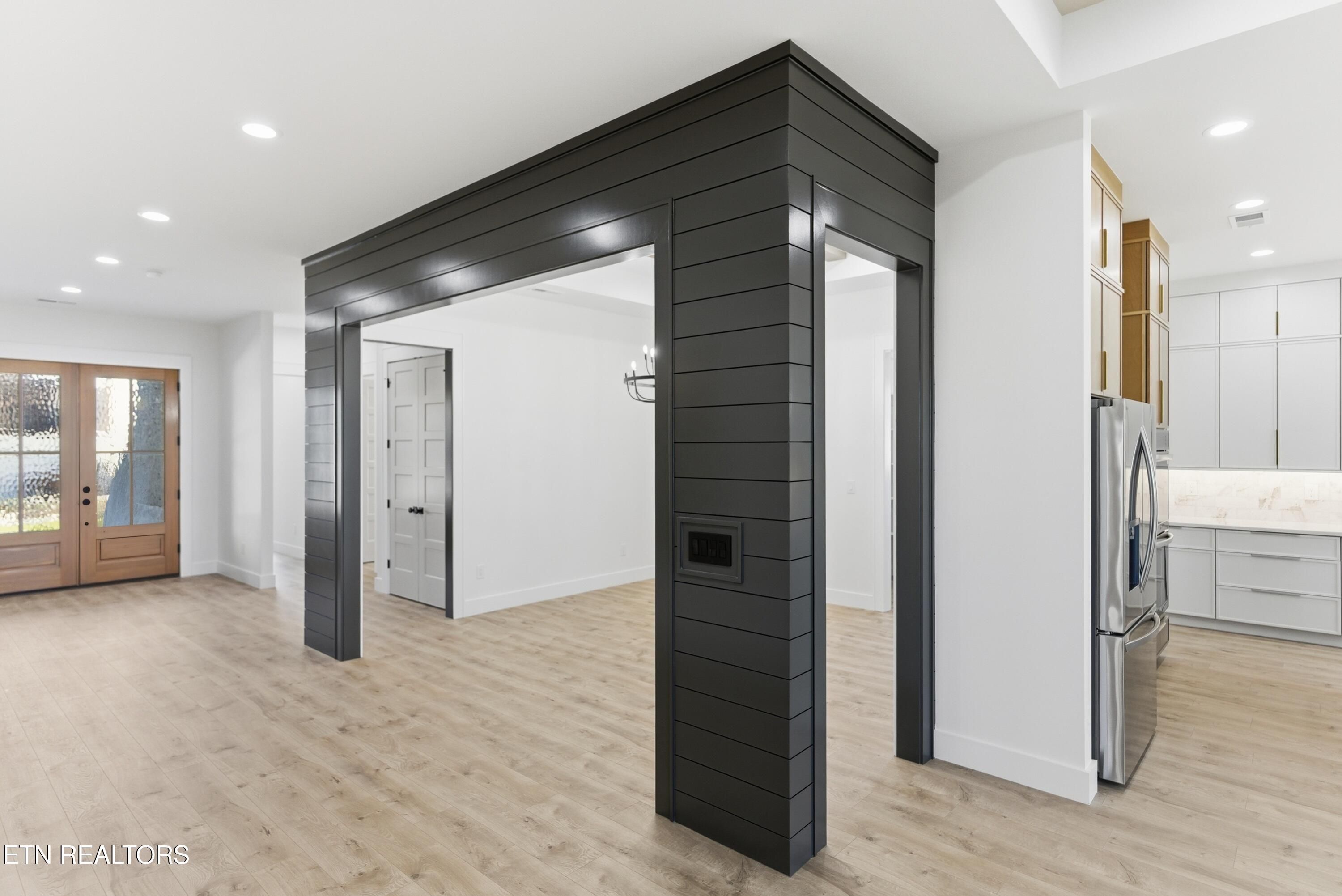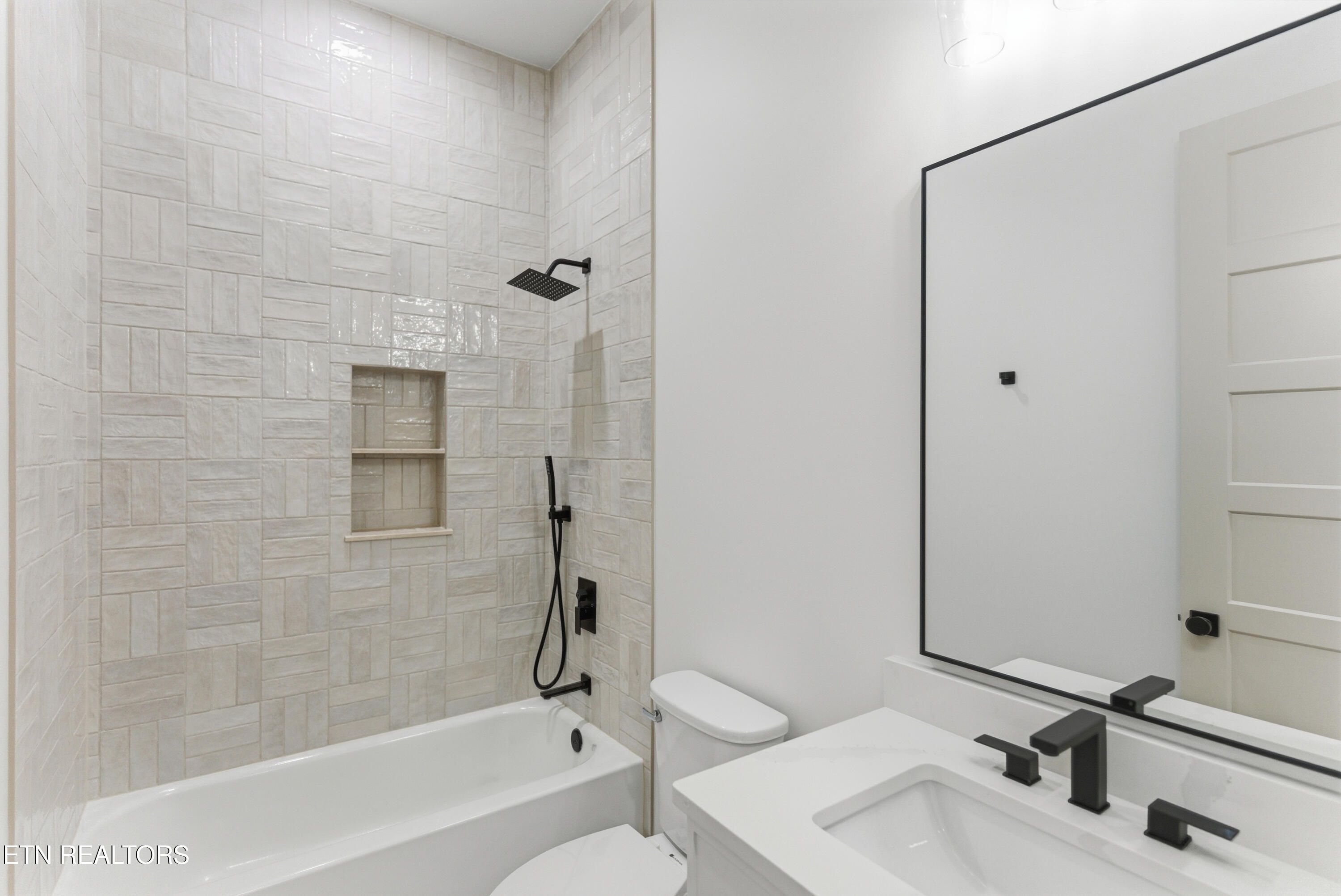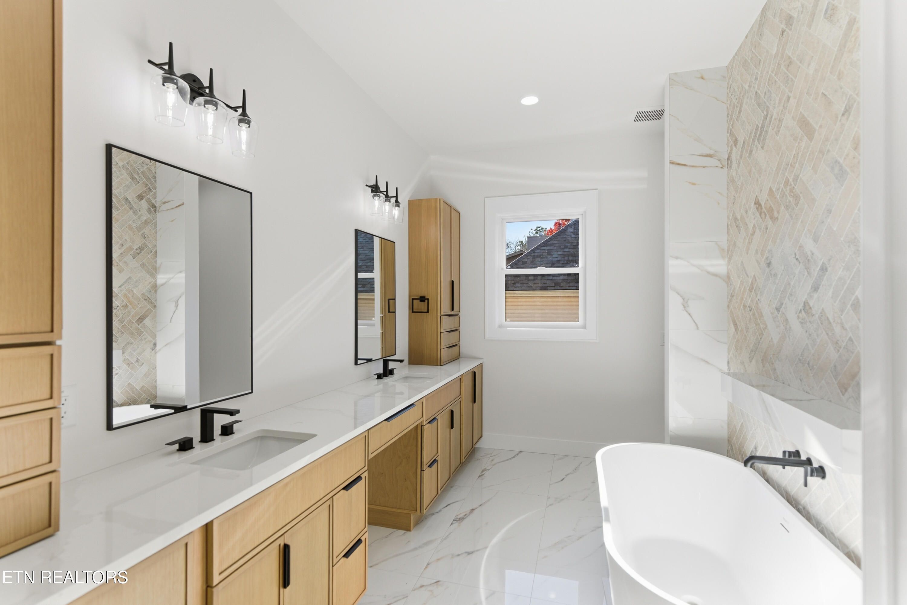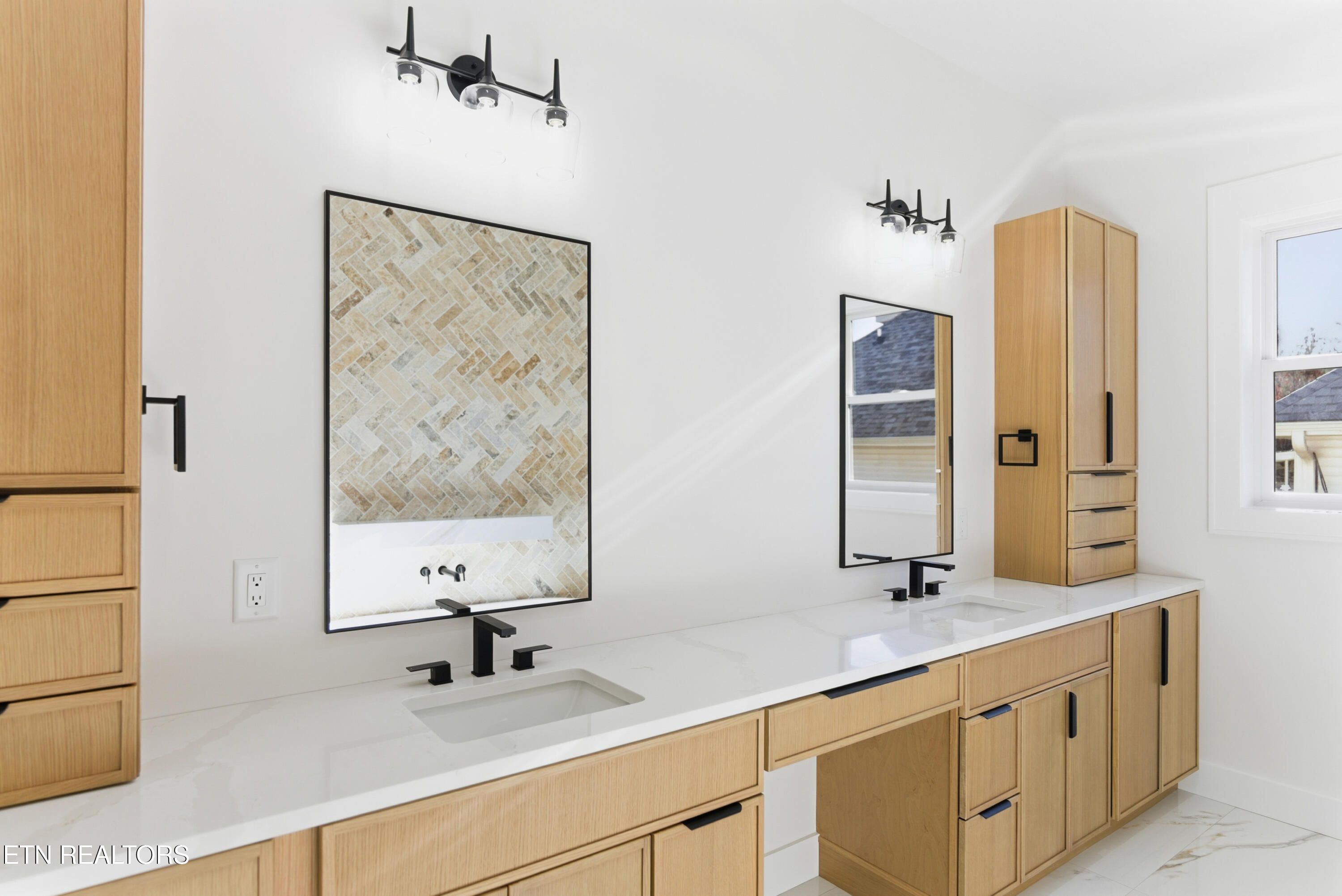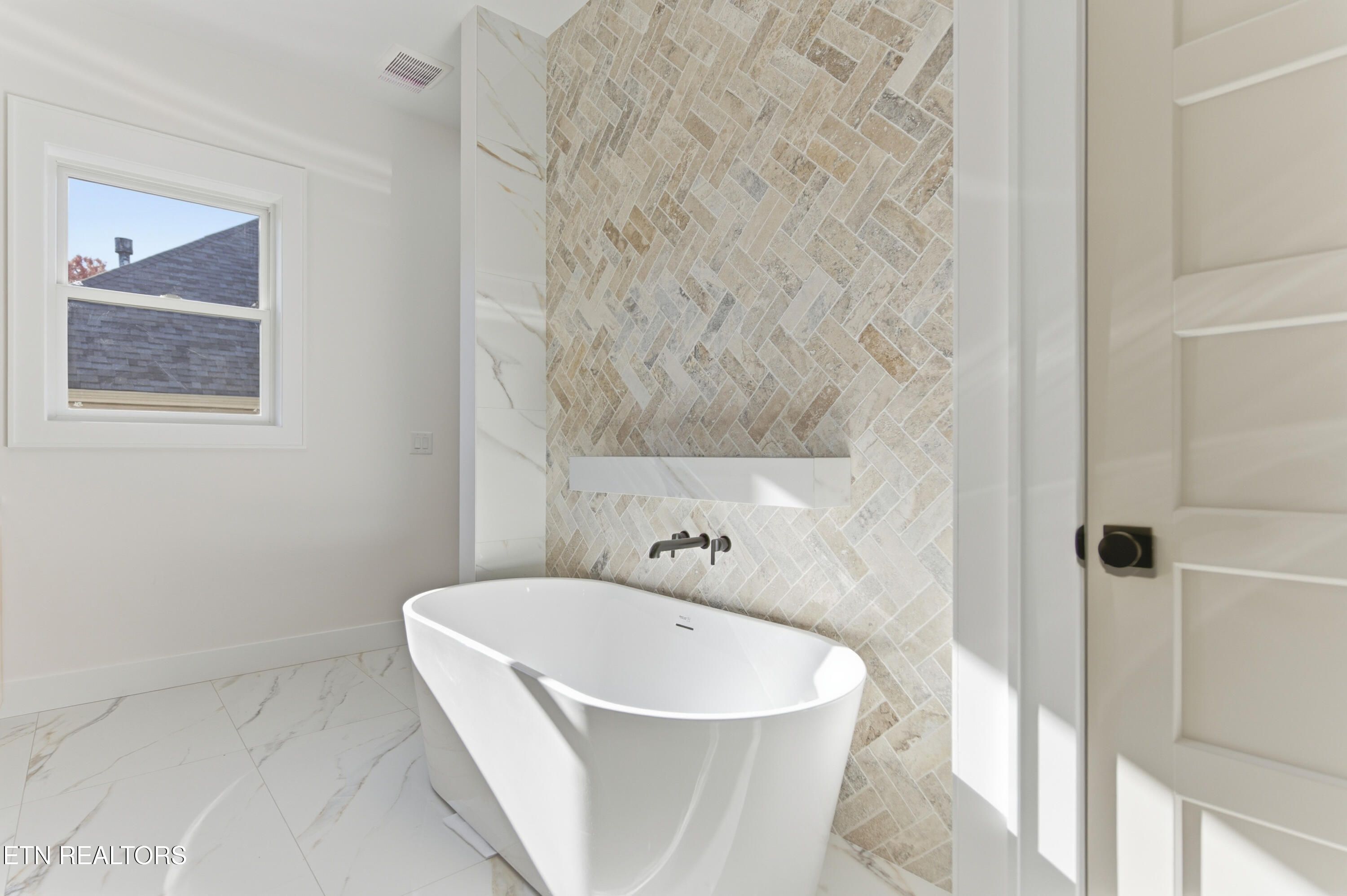 Beautiful new construction by Artisan Builders LLC! This stunning home blends modern craftsmanship with timeless design. The exterior showcases natural light brick, board-and-batten siding, and black accents for impressive curb appeal. Inside, the open layout features a bright living room with a modern fireplace and built-ins, and a dining area highlighted by a bronze accent wall. The kitchen offers white and natural wood cabinetry, quartz countertops, and premium appliances. The primary suite includes a tray ceiling and a luxury bathroom with a freestanding tub set against a herringbone accent wall, plus a large walk-in shower with marble-look tile, niches, and a built-in bench. Additional highlights include 4 spacious bedrooms, 3 full bathrooms, a screened porch, and a full brick foundation all around the house. Built with 2x6 energy-efficient framing and high-end finishes throughout. The rooms are exceptionally large — this home is a must see!