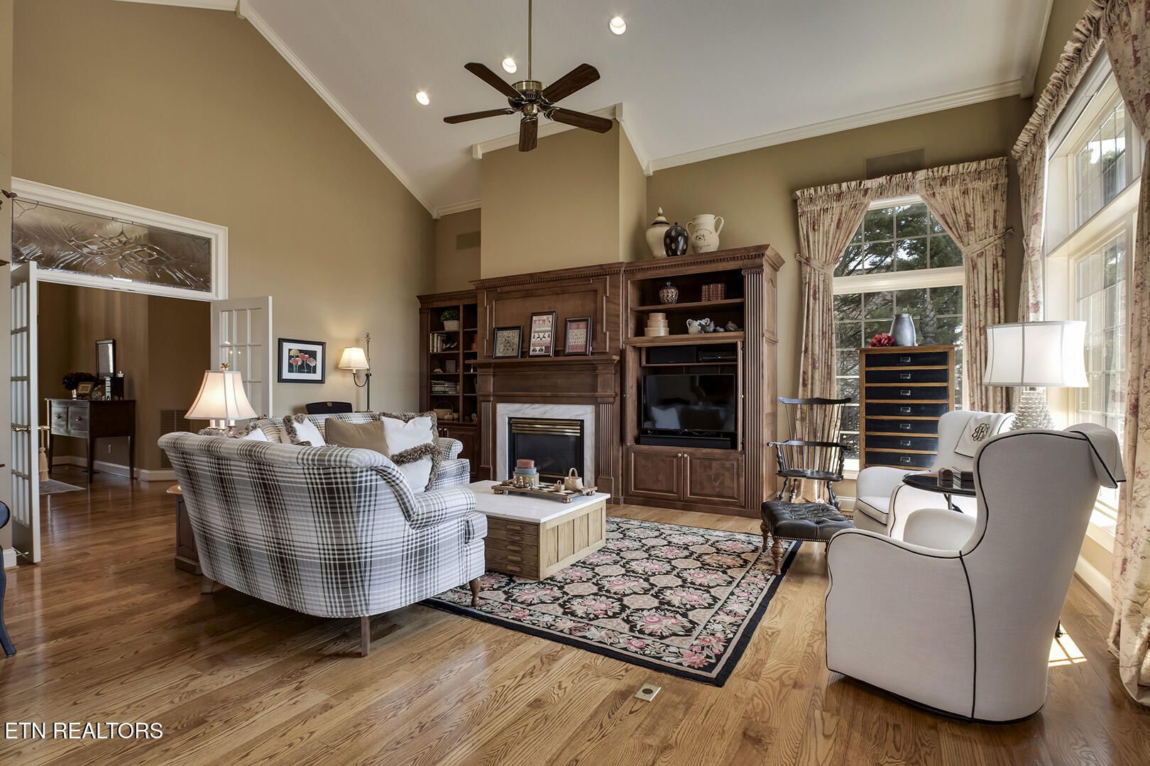 GOLF COURSE FRONT with open LAKE and MOUNTAIN VIEWS. You can't find that every day. This home has been impeccably maintained and offers all the space you will want for entertaining guests and family. The living room boasts a beautiful fireplace with marble surround and a cathedral ceiling. The back deck and screened porch offer fabulous views of Tellico Lake and the Smoky Mountains. A private office with built-ins is located just off from the large primary bedroom. So much to see: a second bedroom with ensuite on the main level, lower level entertaining space, a garden room, a work shop and more storage area than you can imagine. Rarity Bay is a GATED community with 24/7 security. This is lakefront living at its best with a championship golf course, fitness center, pool, pickleball and tennis courts, dog park, social and charitable volunteer opportunities galore. On-site access to hiking trails and an equestrian center. Social Membership to the Country Club is mandatory. This home comes with a full-golf membership that is transferrable to the new owner at a $30,000 value.