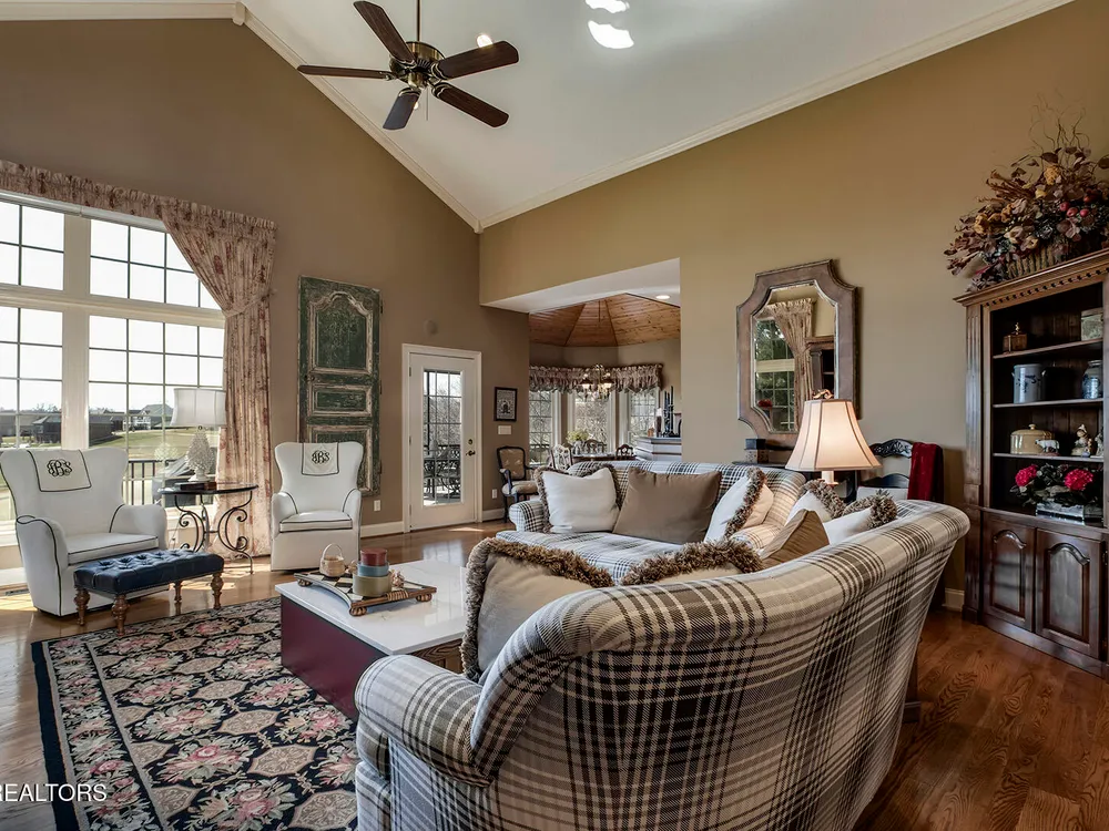 GOLF COURSE FRONT with open LAKE and MOUNTAIN VIEWS. You can't find that every day. This home has been impeccably maintained and offers all the space you will want for entertaining guests and family. The living room boasts a beautiful fireplace with marble surround and a cathedral ceiling. The back deck and screened porch offer fabulous views of Tellico Lake and the Smoky Mountains. A private office with built-ins is located just off from the large primary bedroom. So much to see: a second bedroom with ensuite on the main level, lower level entertaining space, a garden room, a work shop and more storage area than you can imagine. Rarity Bay is a GATED community with 24/7 security. This is lakefront living at its best with a championship golf course, fitness center, pool, pickleball and tennis courts, dog park, social and charitable volunteer opportunities galore. On-site access to hiking trails and an equestrian center.