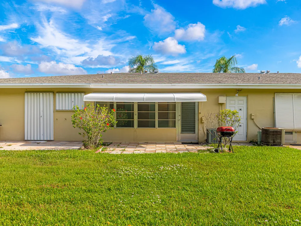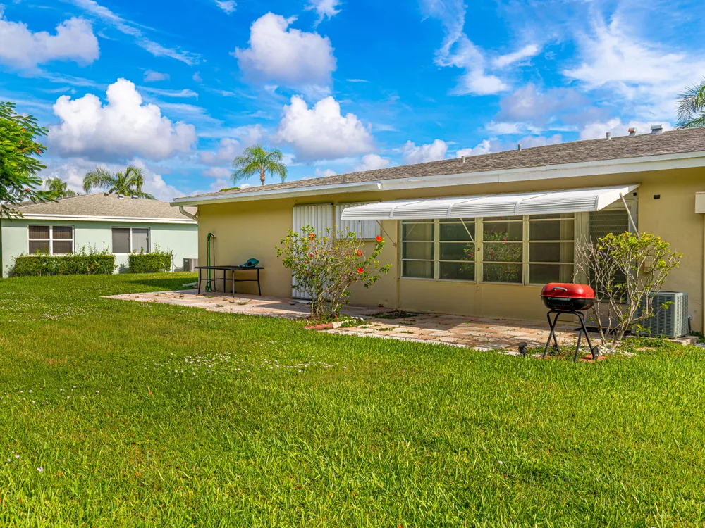 Peaceful 1 Bedroom 1.5 Bath Villa in the 55+ community of High Point of Delray in Delray Beach. No neighbors above you or behind you. Features include Screen/Windowed Lanai/Patio, Adjustable Awnings, Private Backyard area, Parking spot that is a short distance to the entrance, and Community Laundry. Bedroom has a partition separating the sleeping area from the bathroom (can be removed). Amenities include: Clubhouse .1 mile away, Pool, Library, Shuffleboard, & Kitchen. Monthly Fee includes Cable, Water, Roof Maintenance, High Speed Internet, & Building Insurance. Short drive to the Beach, Delray Medical Center, Restaurants, trendy Atlantic Ave, The Boys Farmers Market, Costco & I-95.