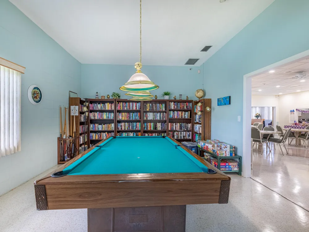 - Bike/Walking Path, Billiard Room, Laundry, Library, Pool, Shuffleboard
