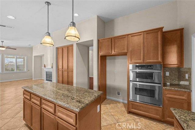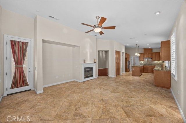 Welcome to this exceptional home in the highly sought-after Four Seasons Retirement Community, offering the largest Laurel single level floor plan with 2340 square feet of beautifully designed living space.This elegant 3-bedroom, 2-bath home combines comfort, quality, and thoughtful upgrades throughout. As you enter, you'll immediately notice the beautiful hardwood floors, complimented by plantation shutters throughout the home creating a warm and sophisticated atmosphere. The spacious layout features plush carpeting in the bedrooms and tile flooring in the kitchen/family room, blending style with practicality.The gourmet kitchen is designed for both everyday living and entertaining. Just off the kitchen is a large laundry room with a sink adding convenience and functionality. The primary suite is a relaxing retreat, complete with built-in cabinetry, dual sinks, a luxurious jetted-spa tub, and a separate walk-in shower for a true resort-style experience. One of the secondary bedrooms has been thoughtfully customized with beautiful wood cabinetry making it ideal as a home office or study. Additional upgrades include a tankless water heater, water softener and whole-house vacuum system. The home also features an oversized 2-car garage providing extra space for storage. Step outside to enjoy the Alumawood patio cover, perfect for relaxing or entertaining while taking in the peaceful fountain & foothill view. This remarkable home offers the perfect blend of luxury, functionality, and maintenance living in one of the area's premier active adult communities. Four Seasons is a vibrant community designed to keep you active and engaged with 3 Club Houses, Restaurant,Beauty Salon, Massage Parlor and Facial Salon, 3 Swimming Pools & Spa areas, with 1 Indoor Heated Pool,3 Fitness centers with state-of-the-art equipment, Pickle Ball Courts, Movie Theatre, Paddle Tennis, Shuffleboard, Horseshoe and Putting Green. So much to do and fun to be had.