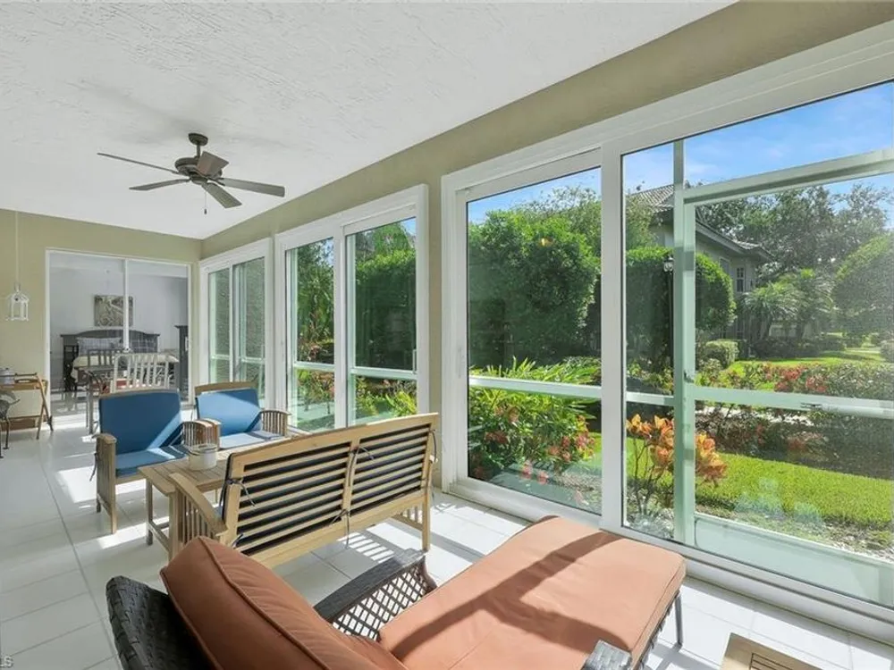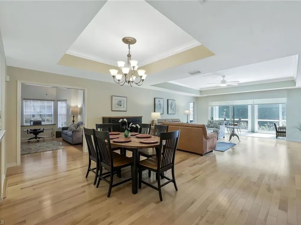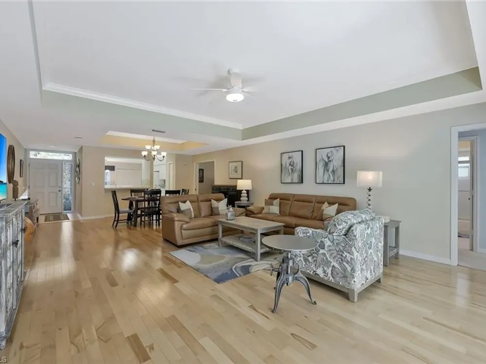 Step into a lifestyle of comfort and community in Tra Vigné — a private, beautifully maintained enclave of just 77coach homes tucked within the sought-after Vineyards community. This rarely available, first-floor end unit offers the privacyand feel of a single-family home, with the ease and convenience of a lock-and-leave lifestyle. From the moment you enter, the wide-open layout welcomes you with rich hardwood floors,coffered ceilings, and walls of natural light that enhance the home’s airy, inviting ambiance. With 3spacious bedrooms, 2.5 baths, a versatile den, and a one-car garage, this thoughtfully designedplan provides for both everyday living and effortless entertaining. The expansive lanai — yourprivate outdoor sanctuary, offers serenity as well as hurricane protection, perfect for morningcoffee or relaxing after a day at the beach.Residents of Tra Vigné enjoy quiet, tree-lined streets, a short stroll to one of four sparkling pools,and ample guest parking — all within a gated, secure setting. Just outside your door, you’ll findNaples’ best shopping, dining, and entertainment minutes away.For those looking to elevate their lifestyle even further, Vineyards Country Club offers optionalmemberships to a world-class wellness center and spa, two championship golf courses, tennis,pickleball, bocce, and a year-round calendar of social events that create connections and memories.Don’t settle for just another home — discover a place where every day feels like a vacation.Welcome and cheers to new beginnings!