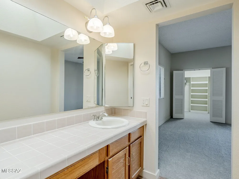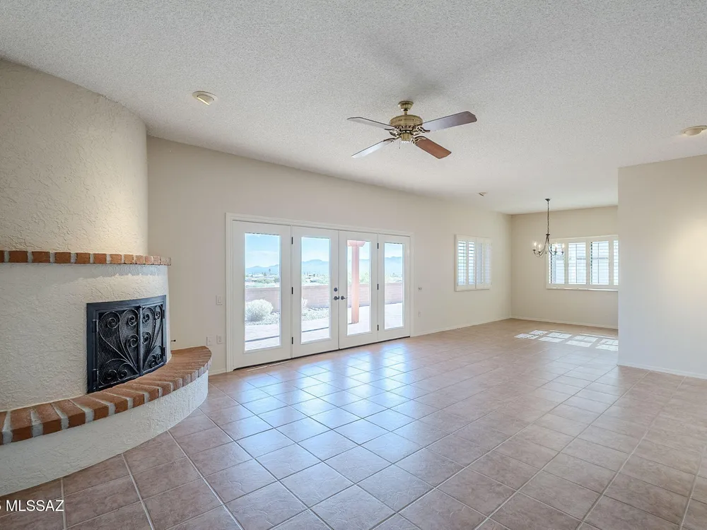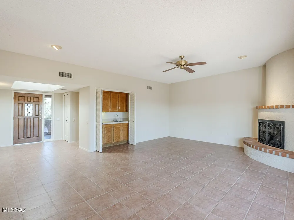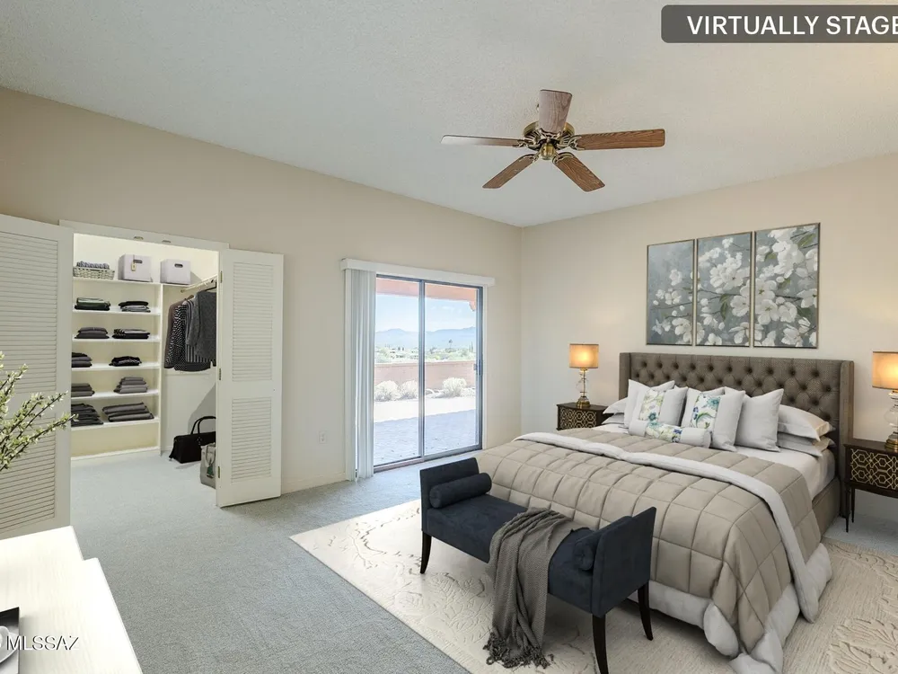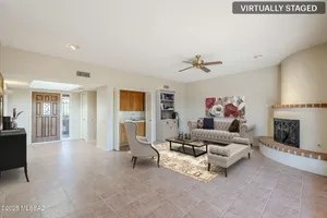 Charming Vera Cruz Model tucked along a tranquil street in coveted Canoa Estates. Discover this 2-bedroom, 2-bath gem offering 2,050 sq. ft. of inviting living space with stunning northeast mountain vistas from the rear patio. The airy living room showcases a beehive gas fireplace and wet bar--ideal for entertaining. A spacious kitchen highlights pull-out shelves, a lazy Susan, pantry closet, reverse osmosis, and a cheerful breakfast nook. Also featured: a generous flex room which could be used as a media room, exercise room or den. The laundry room has cabinets and a desk area. The front entry has a security door. Savor Arizona's breathtaking sunsets from your patio. Tile floors throughout, except bedrooms which have new carpet.