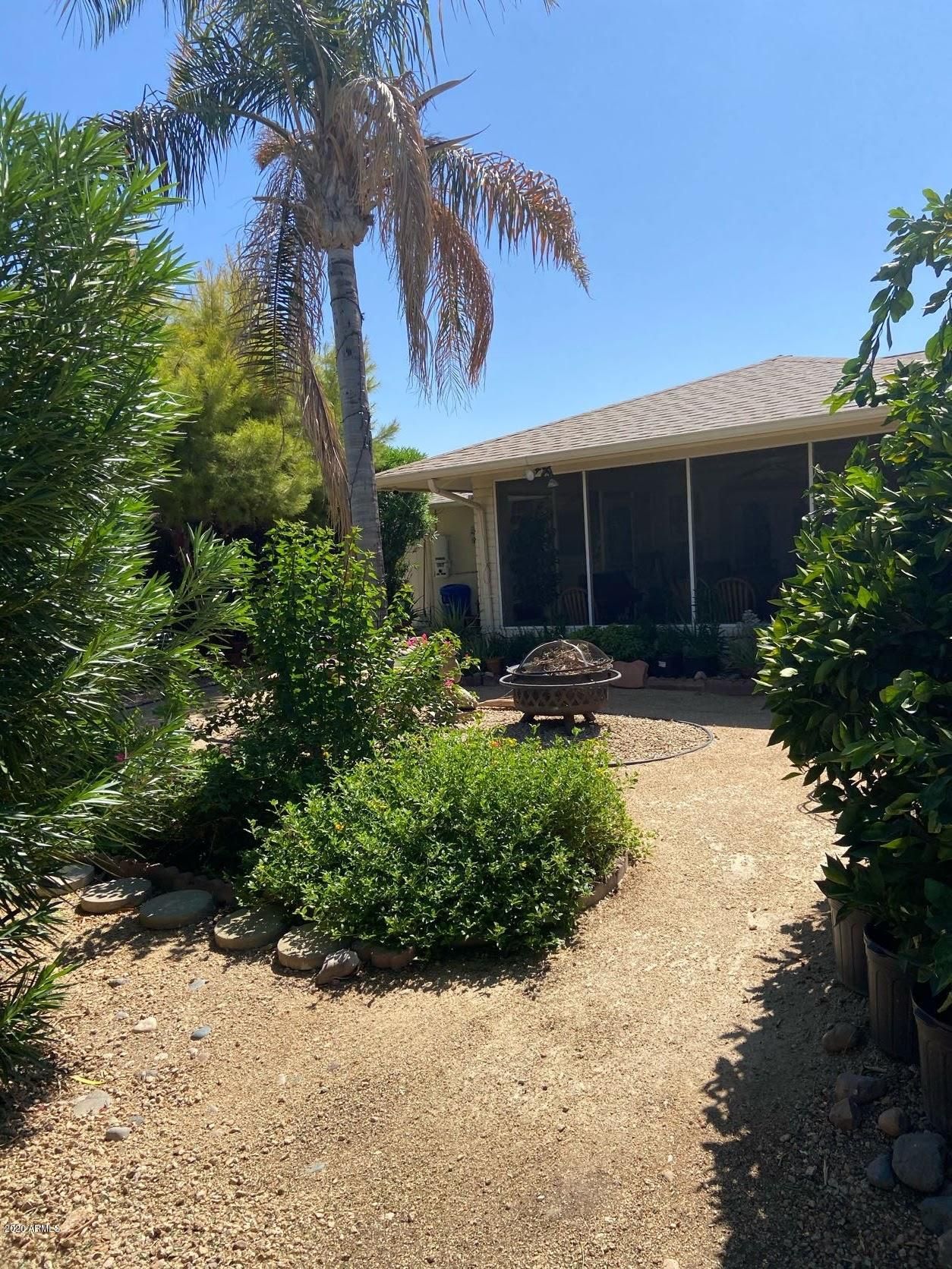 Spacious three bedroom two bath two car garage home with mature orange, grapefruit, and palm trees. Private backyard includes water pond and large screened Arizona room. Neutral colors throughout with a casablanca fan, new AC and tan architectural roof. Money saving solar system. Quiet and friendly neighborhood close to shopping and recreational center and golf courses!
