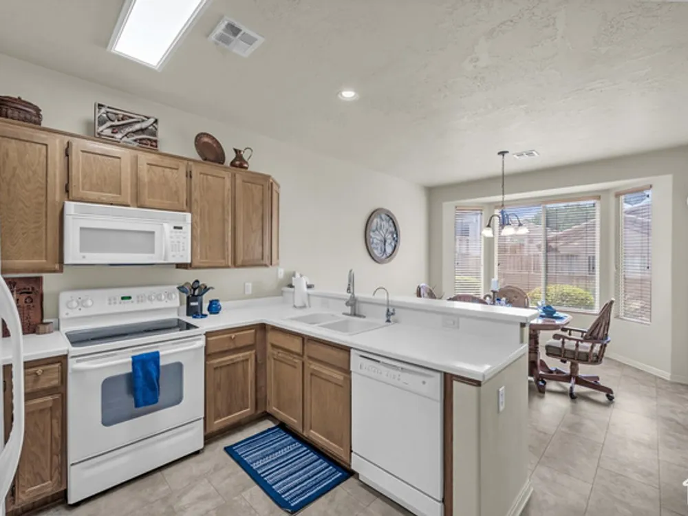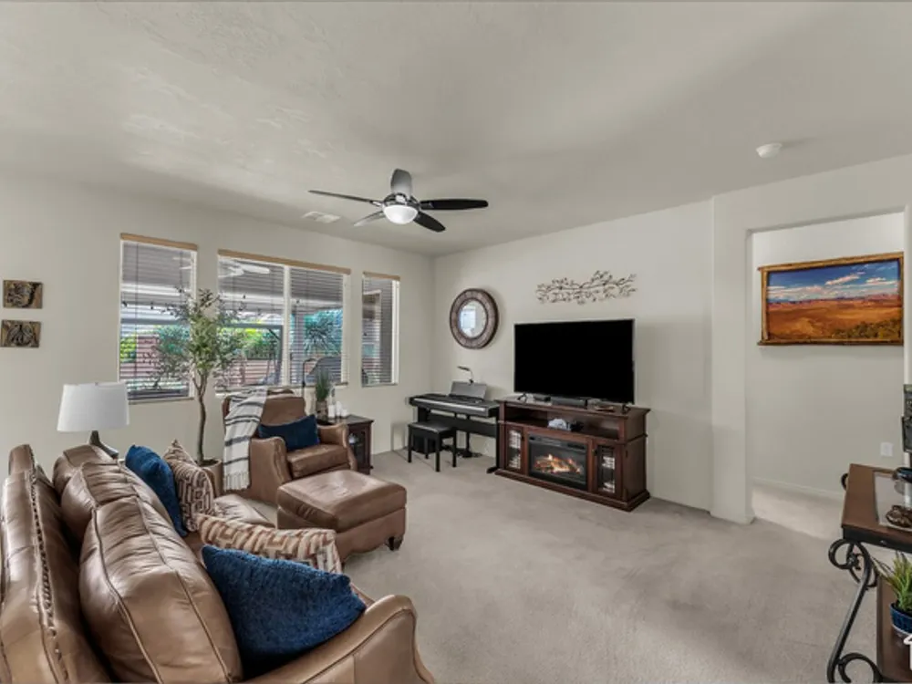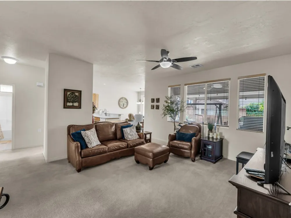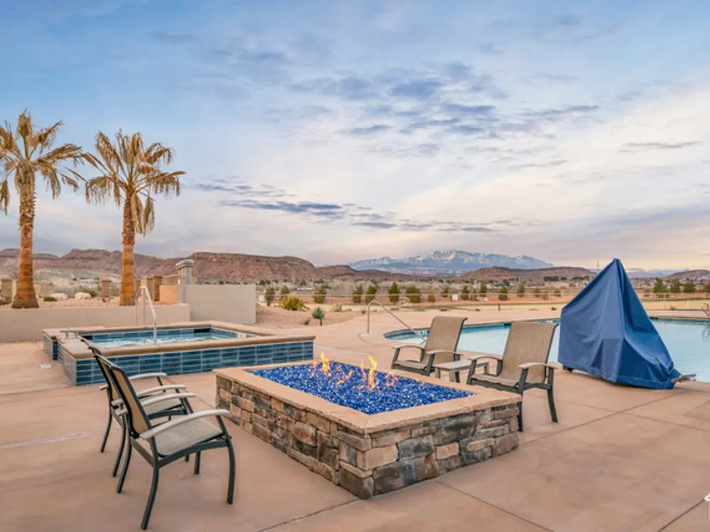 This beautiful home is well-maintained offering an open layout with 10 ft ceilings throughout, creating a bright and spacious feel. The home features a large primary suite along with generously sized guest bedroom. The backyard is designed for both entertaining and low-maintenance living with a large covered patio with a beautiful pergola, stainless steel high-end gas grill, multiple natural gas connections, and xeriscape landscaping. Located in the premier active adult community Sun River, you'll have access to incredible amenities including one of southern Utah's greatest championship golf courses, multiple pools, pickleball, a clubhouse with activities like pottery and woodworking, and more! Furnishings are negotiable. Buyer to verify all information, deemed reliable, however buyer to verify all info including utilities, rental restrictions, and HOA information if applicable.