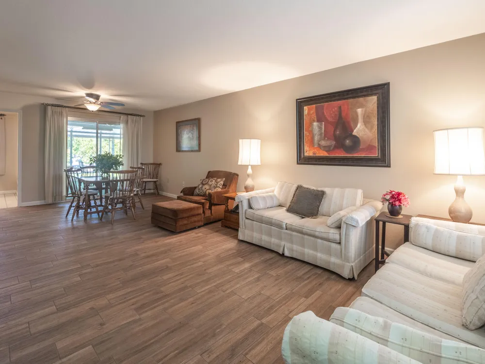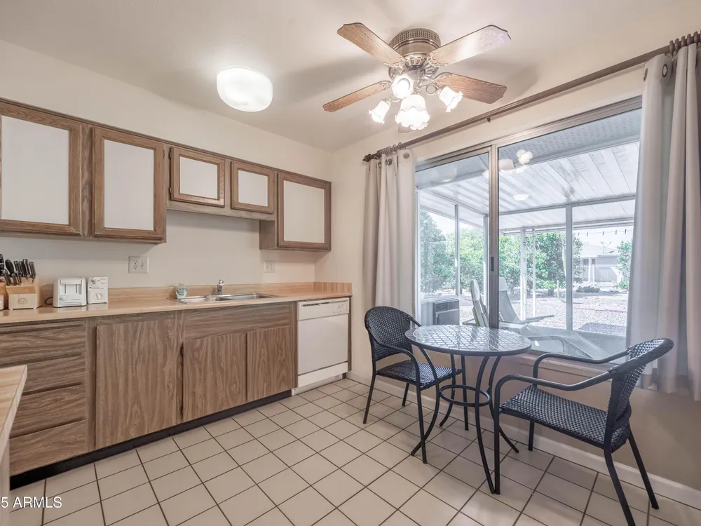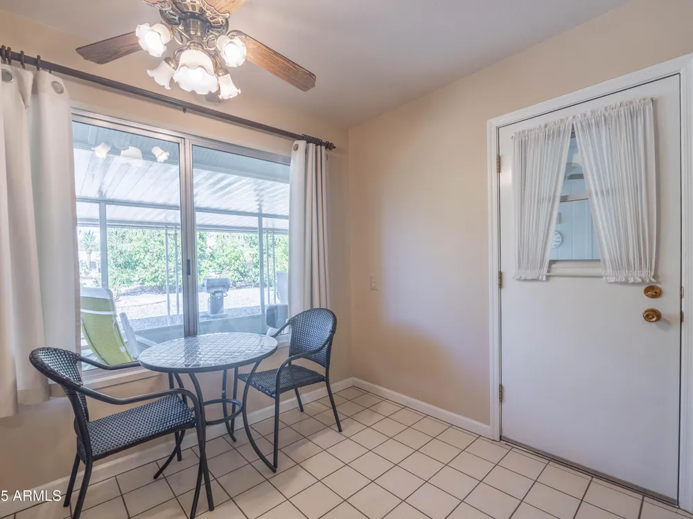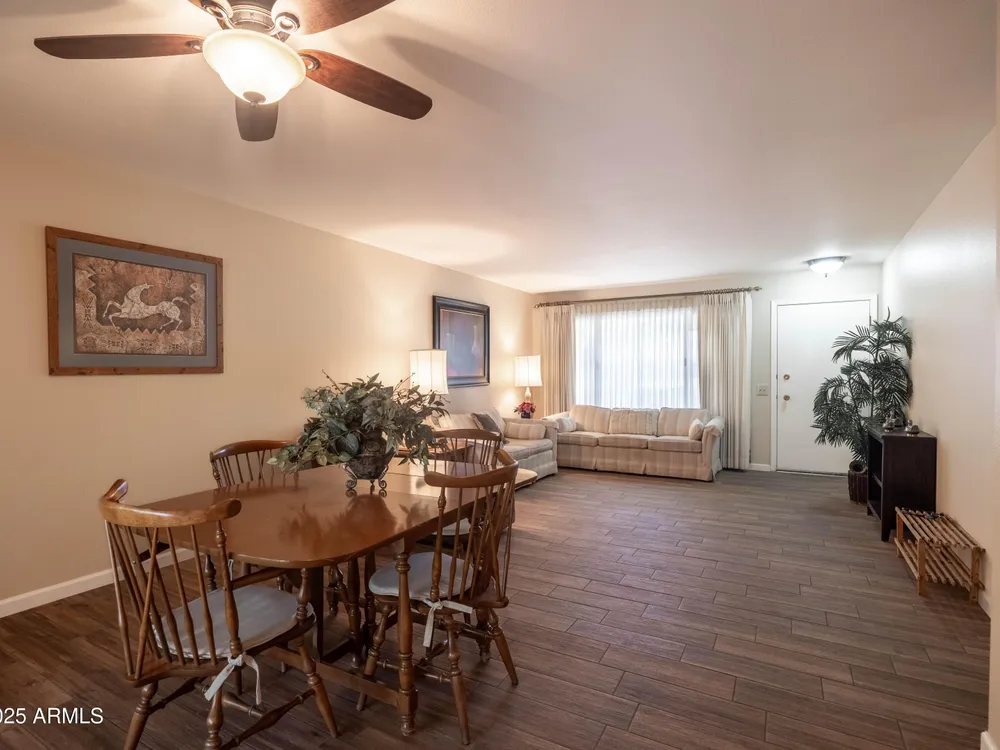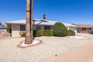 Beautiful, comfortable, affordable and centrally located in popular Sun City West! Two bedrooms and 2 baths AND office too! Newer beautiful luxury wood-look tile flooring! Spacious living and dining room and eat-in kitchen as well! Huge back patio with craft table, and plenty of room for entertaining! Inside laundry and storage area. Very nice shady back yard with multiple mature fruit trees! Lots of garage storage too! Come enjoy all the amenities that Sun City West has to offer, and swim and play golf in the winter! Not cold here! Consider this one before it is snatched up!