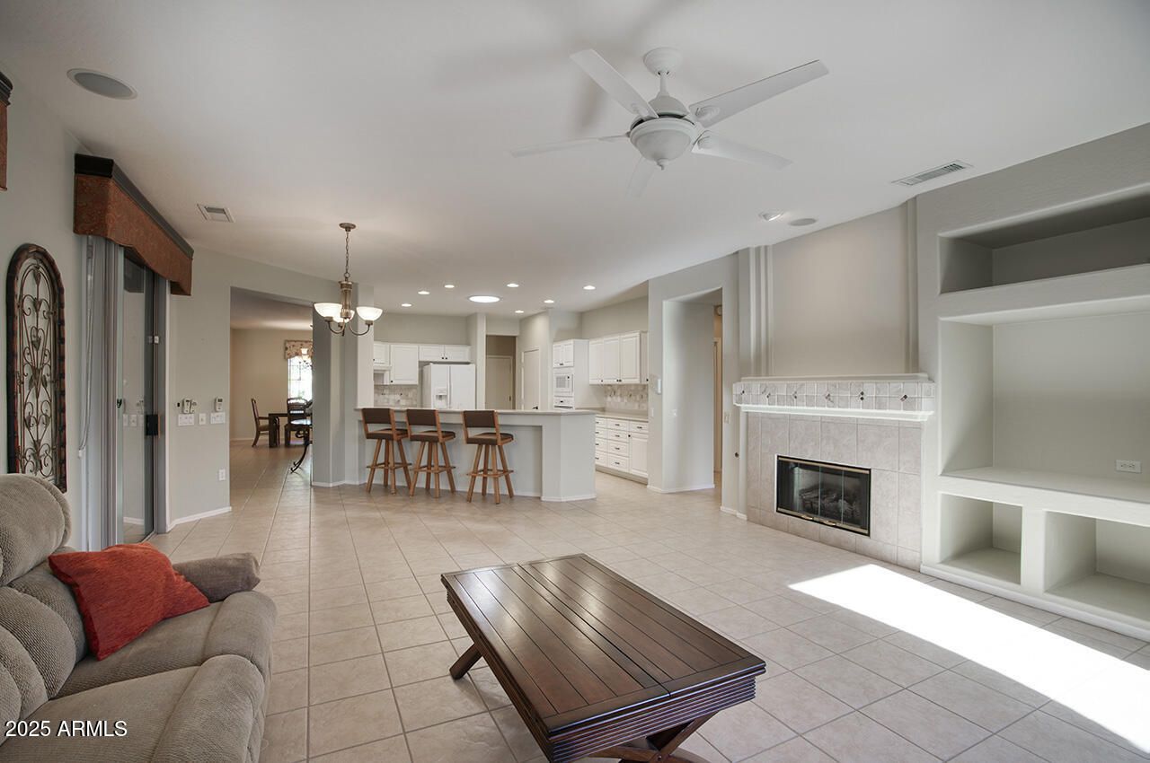 Welcome to this beautiful Hacienda floorplan with a 3 car garage, offering exceptional outdoor living and major system upgrades already completed. Enjoy true peace of mind with both TRANE HVAC systems replaced in 2021, a new roof underlayment installed in October 2025, and a 2022 tankless gas water heater, allowing you to move in and enjoy without worrying about big ticket expenses. This beautifully maintained home is ideally positioned with desirable north/south exposure and greets you with incredibly charming curb appeal, mature landscaping, and evident pride of ownership. Inside, the open and inviting layout is filled with natural light and features tile flooring throughout the main living areas, creating a warm, cohesive flow that's both comfortable and easy to maintain. The kitchen anchors a thoughtfully designed for both everyday living and entertaining, featuring generous cabinetry, ample counter space, and a gas cooktop that is a highly desirable feature for today's buyers. Its open connection to the living and dining spaces makes hosting effortless while keeping everyone connected. The primary suite offers a relaxing retreat with a spacious bedroom and a beautifully updated bathroom featuring dual sinks, modern finishes, and a large walk in shower. Two additional bedrooms provide flexibility for guests, hobbies, or a home office. The outdoor living space is a true highlight. The expansive covered patio with an additional expanded Alumawood area is designed for year round enjoyment, offering multiple seating and entertaining areas, ceiling fans, ambient lighting, and elegant paver flooring. Whether hosting friends, enjoying quiet mornings, or relaxing in the evenings, this backyard feels like a private extension of the home. This home offers the ideal combination of a proven floorplan, meaningful upgrades, and exceptional outdoor living. Homes with this level of care, preparation, and quality are rare.