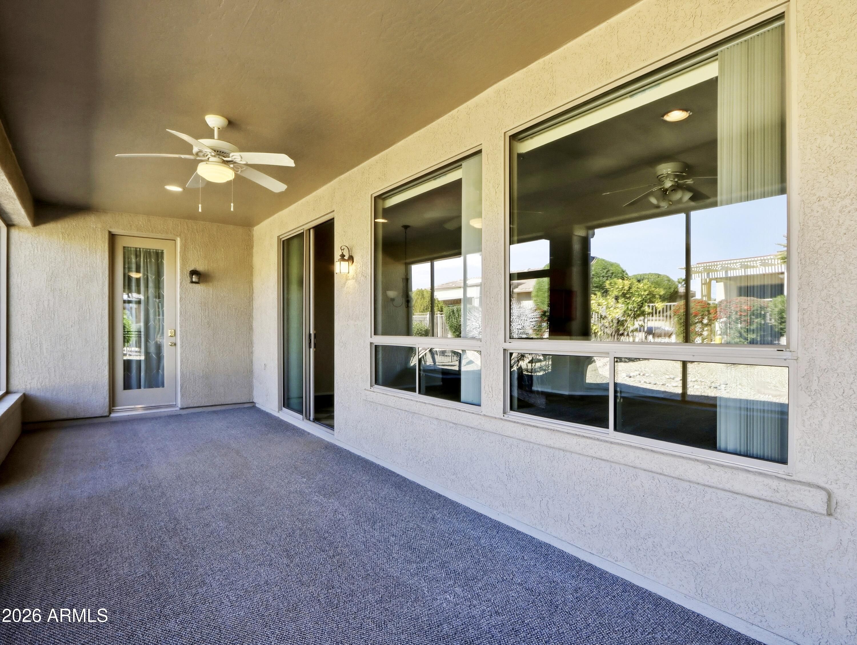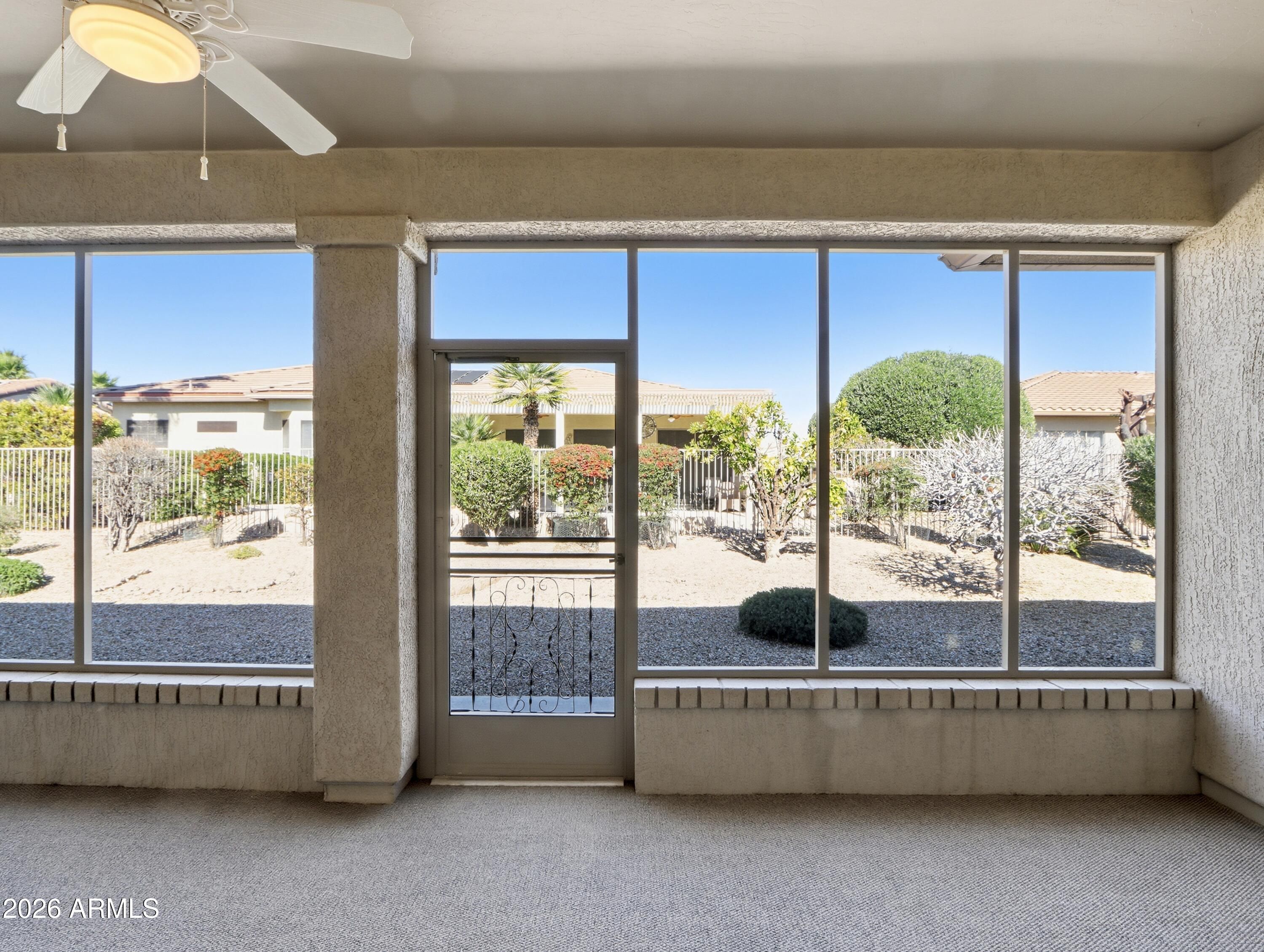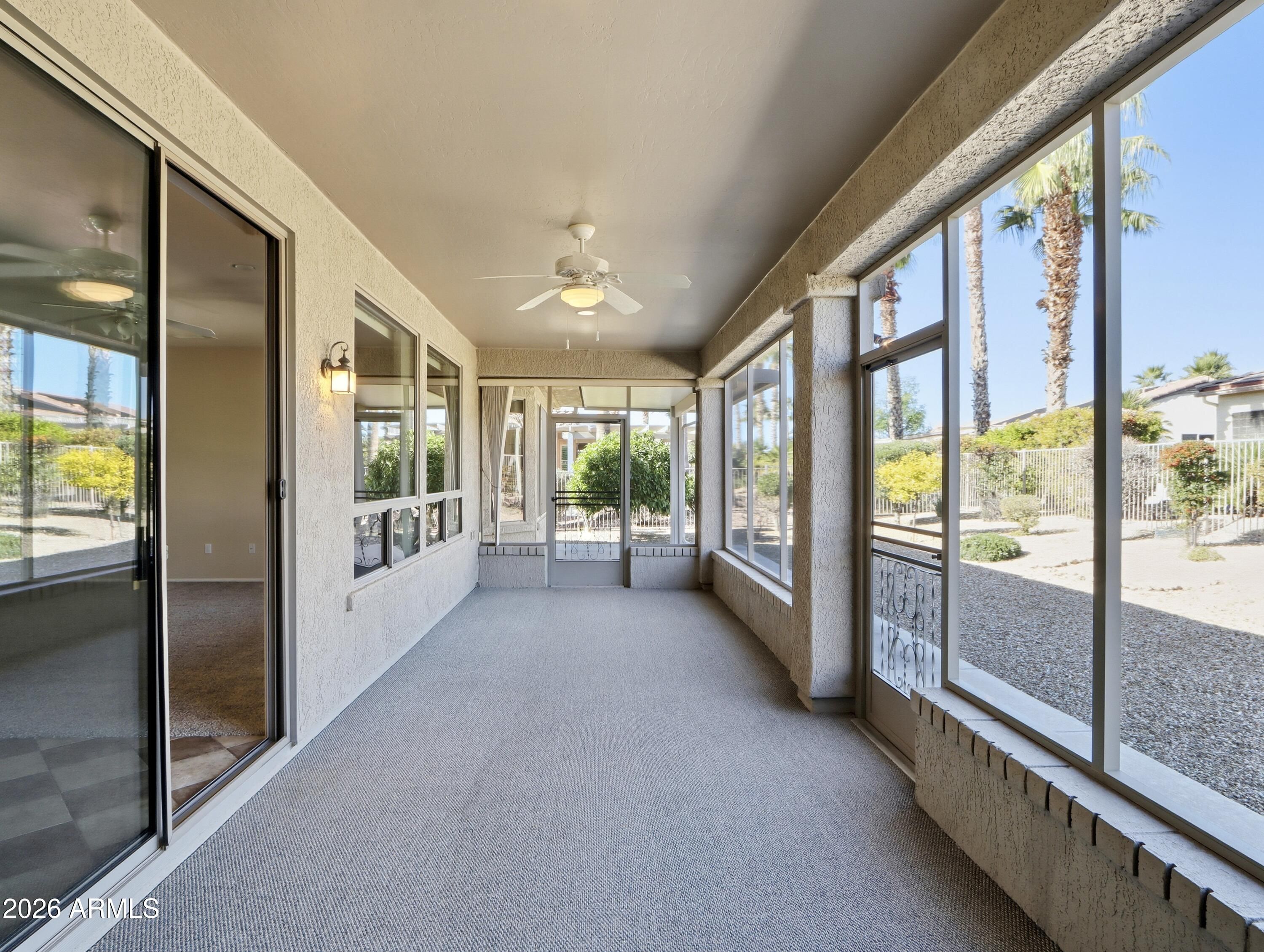 Welcome to this beautifully maintained 3-bed, 2-bath home in the premier 55+ community of Sun City Grand. Offering 2,054 sq ft, this home features a prepaid solar lease that conveys as owned equipment for long-term energy savings. Enjoy Arizona living year-round in the screened-in AZ room, plus extra garage storage with built-in cabinets. Recent updates include new exterior paint and an HVAC system replaced in 2019. Sun City Grand is known for its low-maintenance lifestyle, allowing residents to spend more time enjoying resort-style amenities such as championship golf courses, fitness centers, pools, clubs, dining, and an active social calendar.