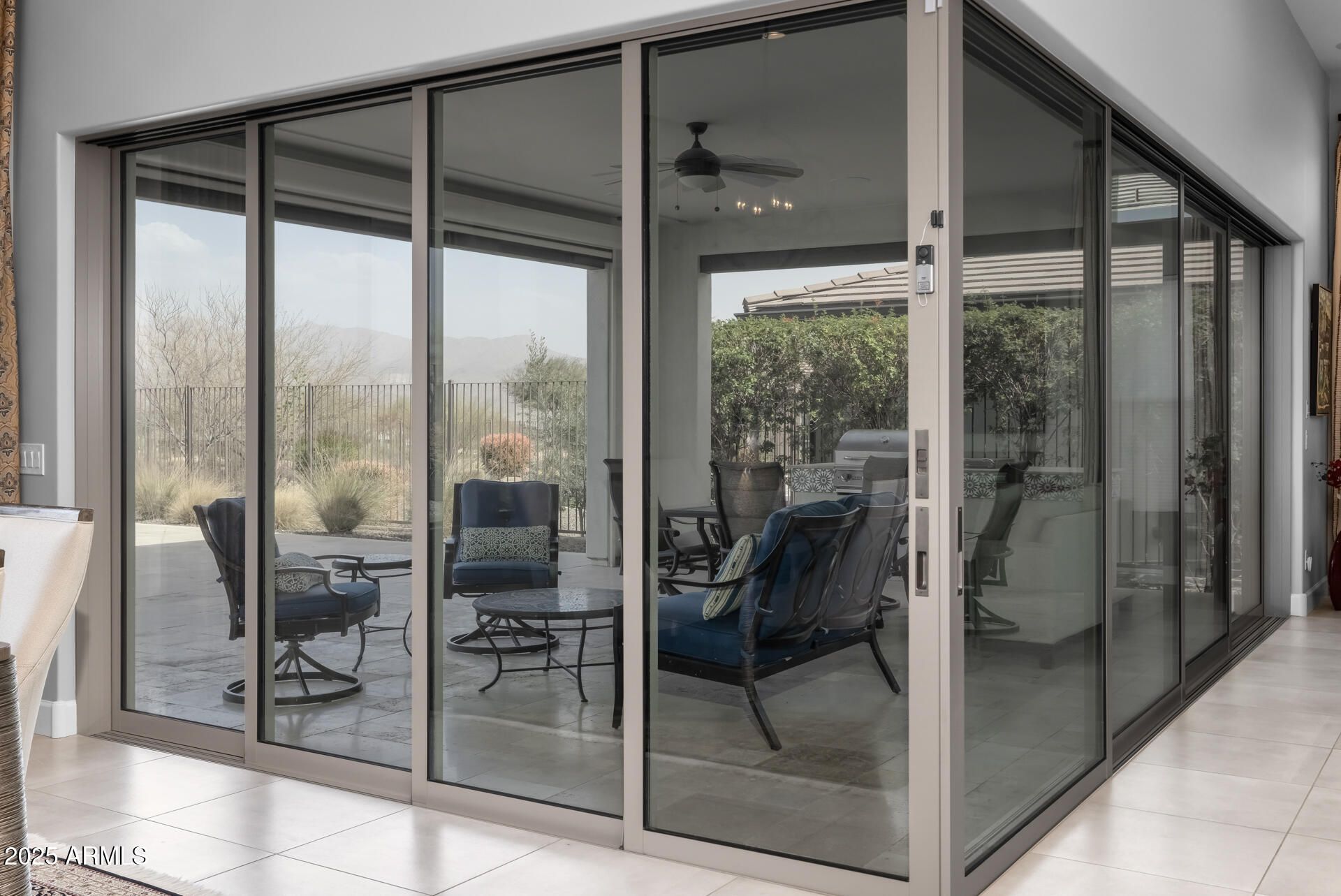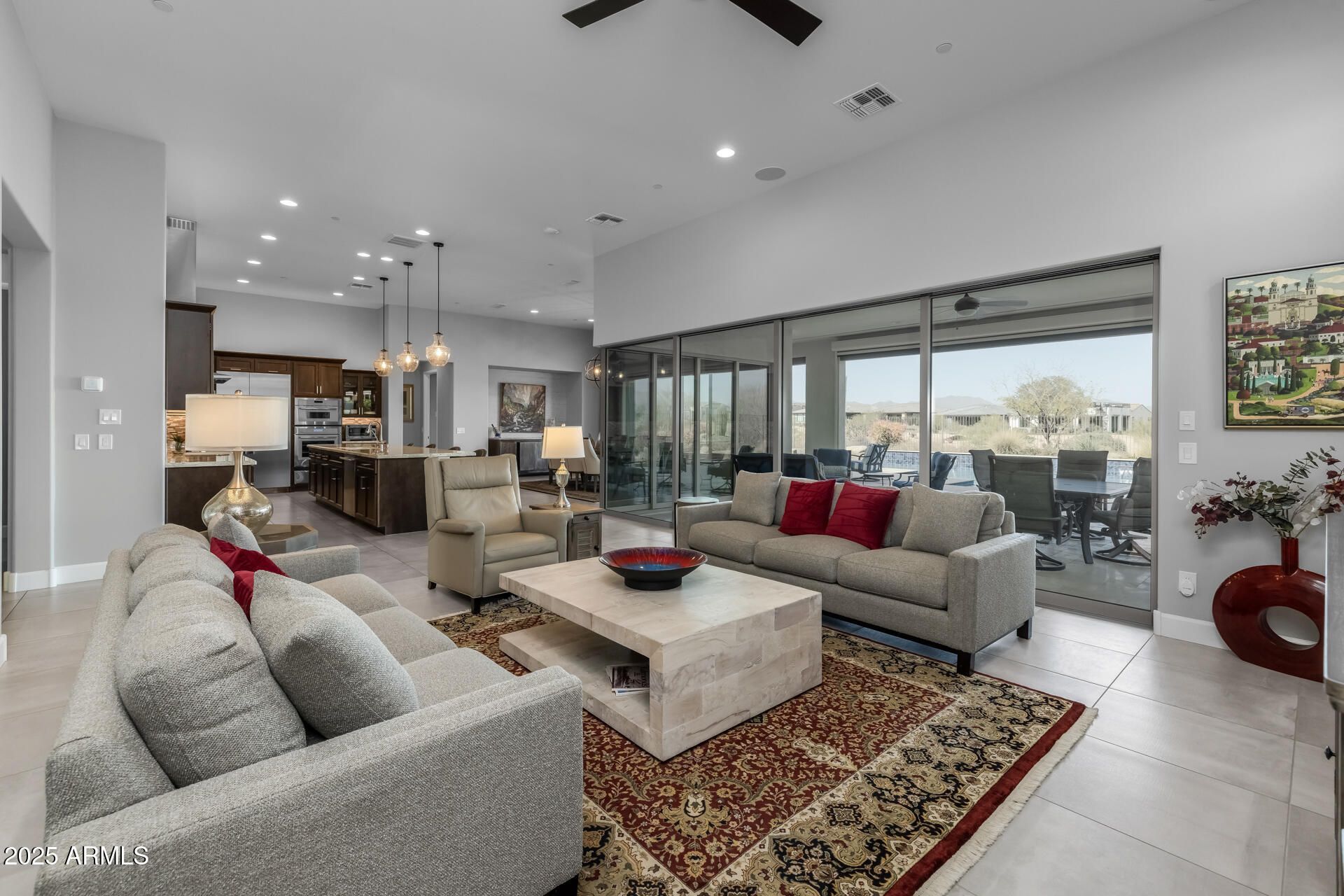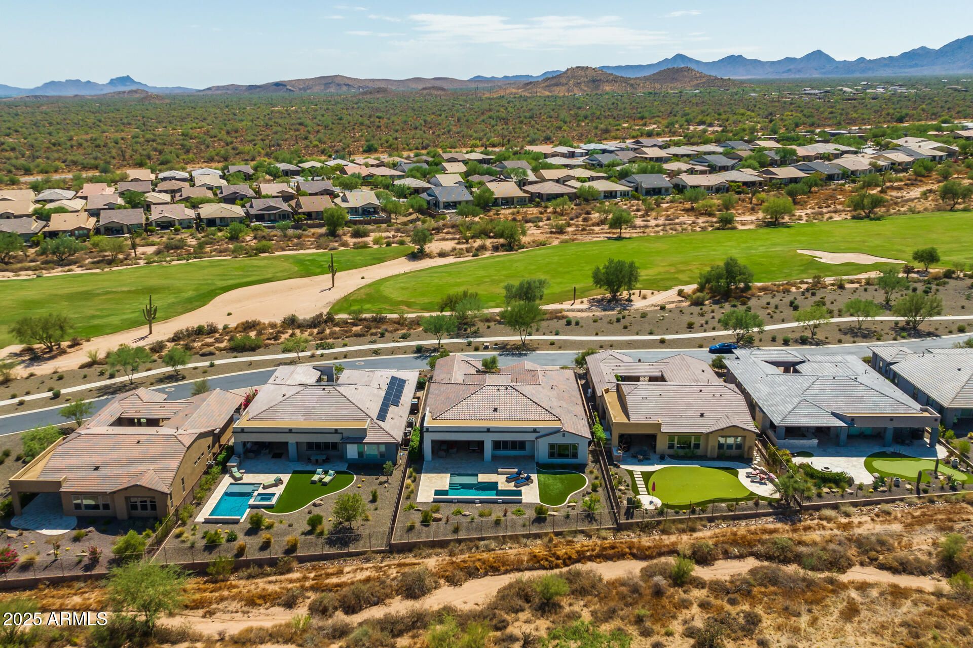Experience the epitome of modern luxury in this meticulously designed Dorado floorplan with a private casita. Perfectly positioned between holes 12 and 16 of the stunning Verde River Golf Course, this home captures unobstructed mountain and golf course views from nearly every angle. Featuring 3 bedrooms, 3.5 bathrooms, and an expansive three-car garage with epoxy flooring and air conditioning, every detail reflects quality and style. Inside, modern finishes create a sophisticated ambiance, highlighted by a striking corner pocket slider in the great room and a gourmet kitchen boasting high-end stainless steel wall appliances, granite countertops, and a spacious island with a breakfast bar. The luxurious primary suite offers a private entrance to the backyard and a spa-like ensuite with a soaking tub, separate shower, and dual closets featuring custom organization systems. The private casita, accessible from the front courtyard, includes a comfortable living space, bedroom, bathroom, and kitchenette, making it perfect for guests or multi-generational living. Outside, captivating mountain views and Sonoran landscaping create a tranquil retreat. A sparkling pool with elegant water features and an expansive covered patio provide the ultimate setting for relaxation or outdoor entertaining. This is resort-style living at its finest. The amenities at Verde River are World Class with Tom Lehman inspired eighteen-hole Golf course, tennis courts, pickleball courts, and bocce ball, heated lap pool and Resort style swimming pool, hot tub, Afterburn fitness center, Helen's demonstration Kitchen for cooking classes and a 7.5 acre dog park. The community center has casual poolside dining at Eddy's Diner and gourmet dining at award-winning Needle Rock Kitchen and Tap, Alvea Spa with full-service Salon and Spa amenities, Art Loft and events center. Trilogy at Verde River is adjacent to the Tonto National Forest and is situated in the middle of miles and miles of hiking and biking trails.