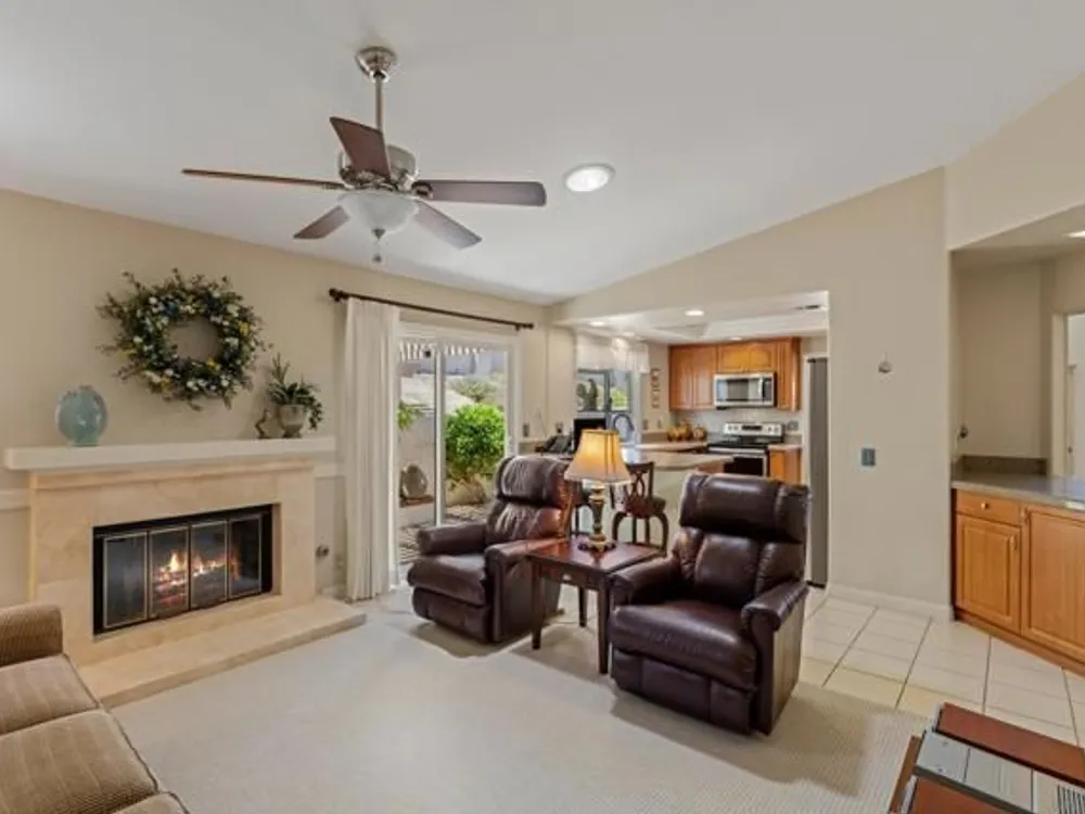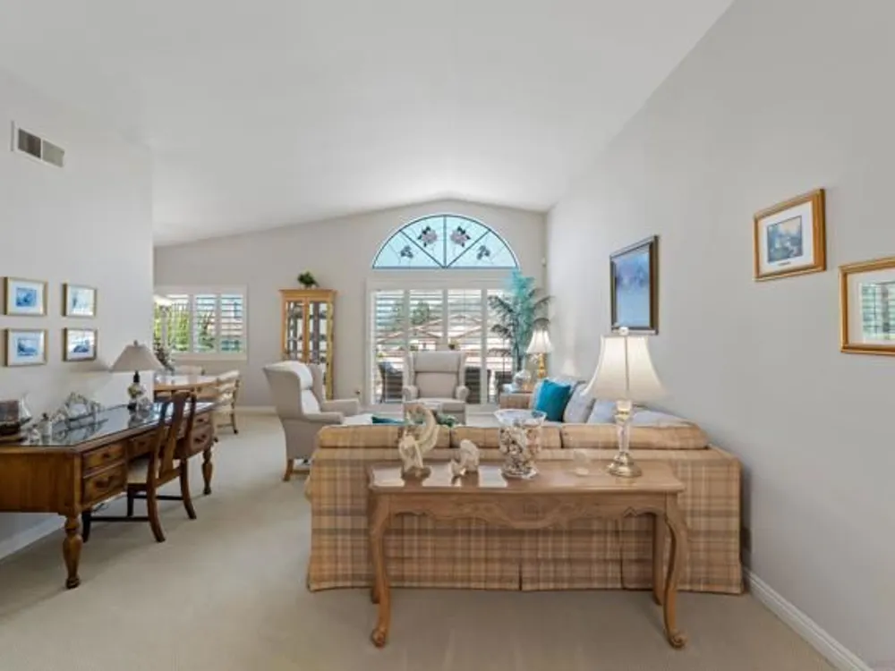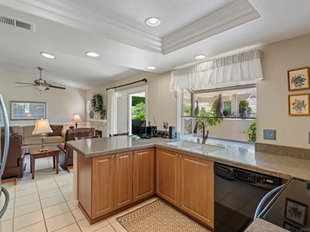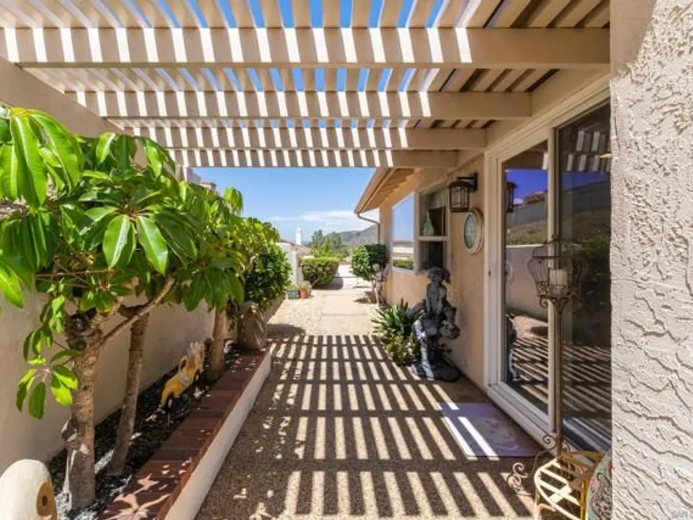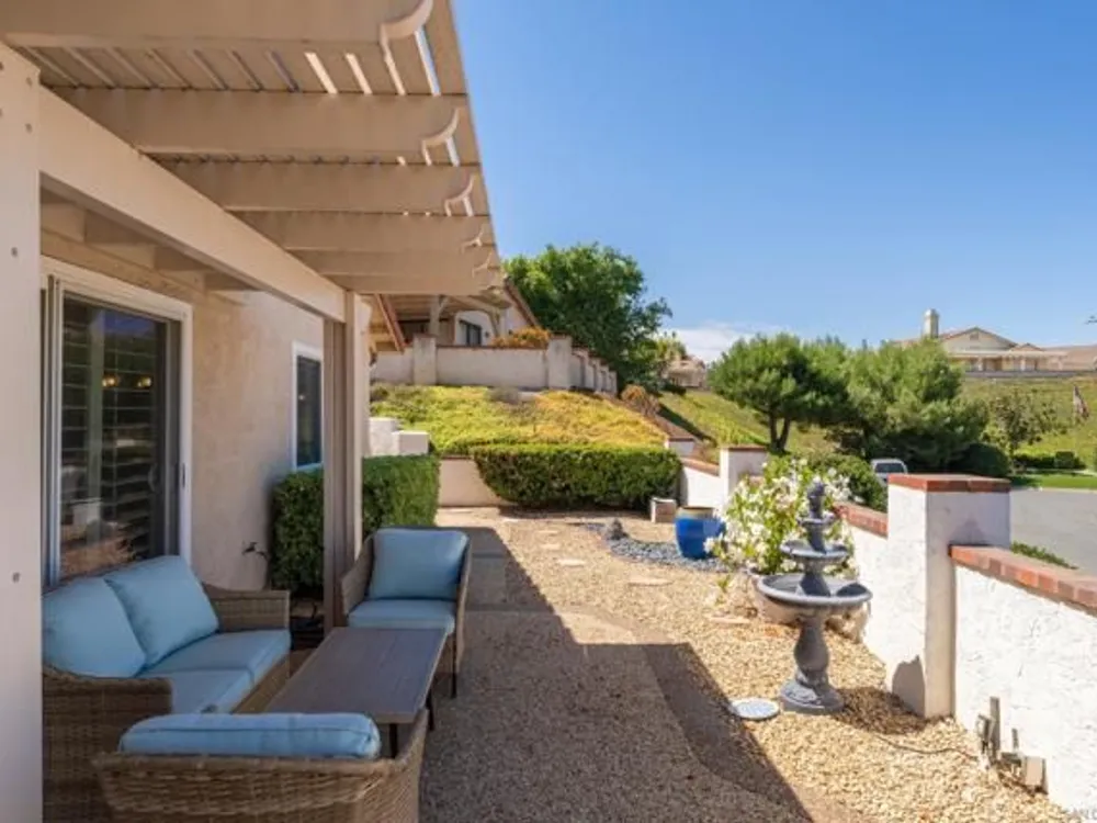 Welcome to this meticulously maintained home in the sought-after 55+ community of Oaks North Marbella. Located on a quiet street with minimal traffic and directly across from a peaceful greenbelt, this home offers great curb appeal with artificial turf and a charming pathway leading to a beautiful leaded glass front door. The bright interior features vaulted ceilings, newer dual-pane windows and sliders, shutters, and a decorative stained glass window. The kitchen includes refaced cabinets and solid surface countertops. Recent updates include new carpeting, newer roof underlayment, and a newer garage door and opener. Relax on the private patio with beautiful mountain views, or take advantage of the nearby historic Bernardo Winery, with it's weekly Farmer's market, shops and restaurants, or partake in the many activities offered with the included membership of the Oaks North Community Center. The public Oaks North Golf Course is also easily accessible for golf enthusiasts. Don't miss out on this truly turnkey home in an exceptional location.