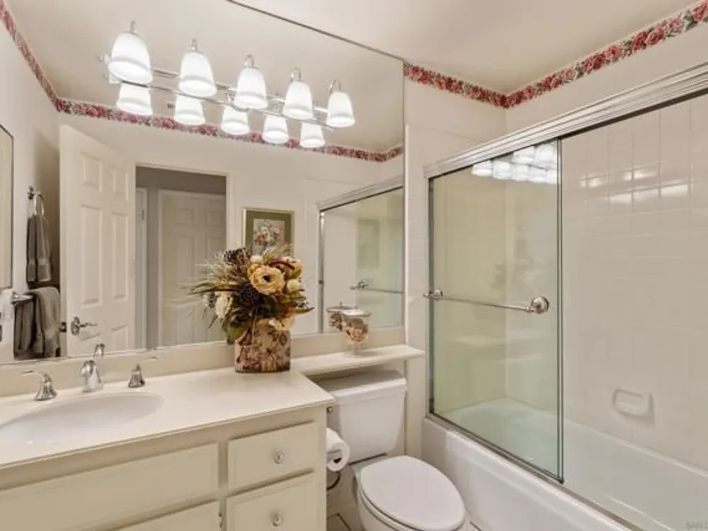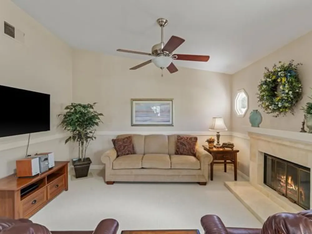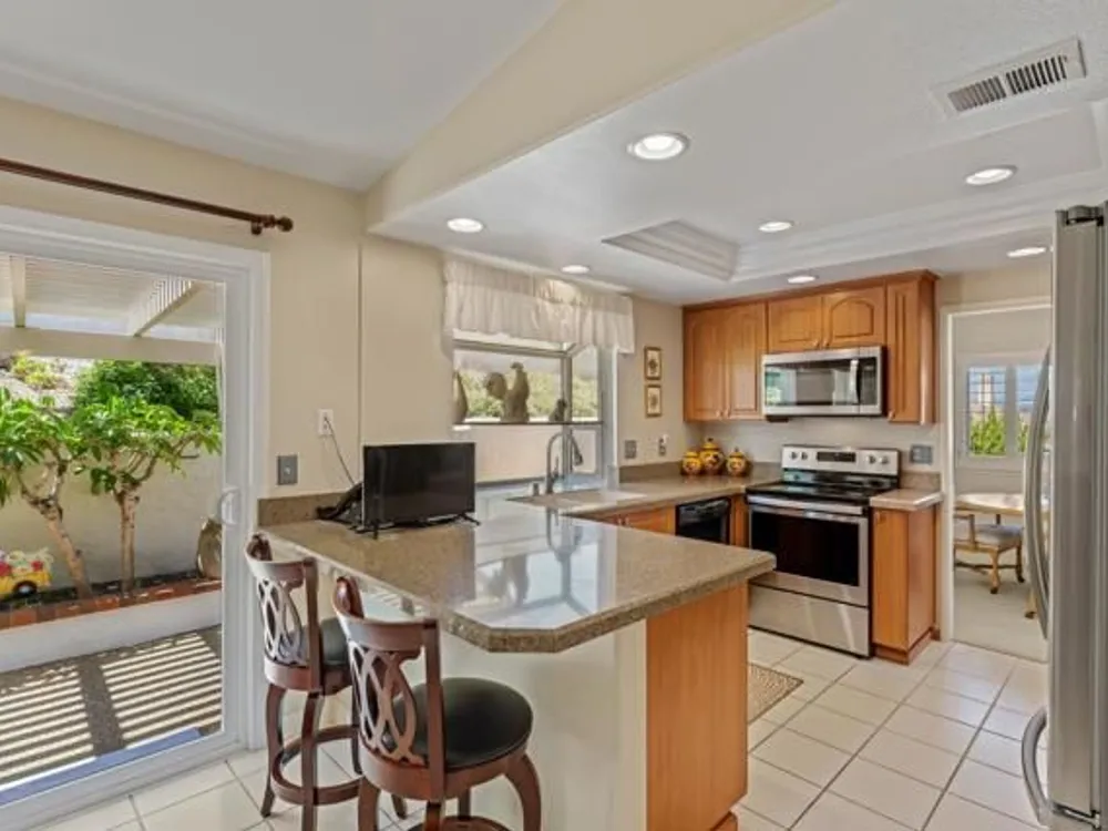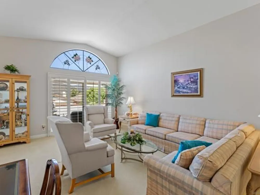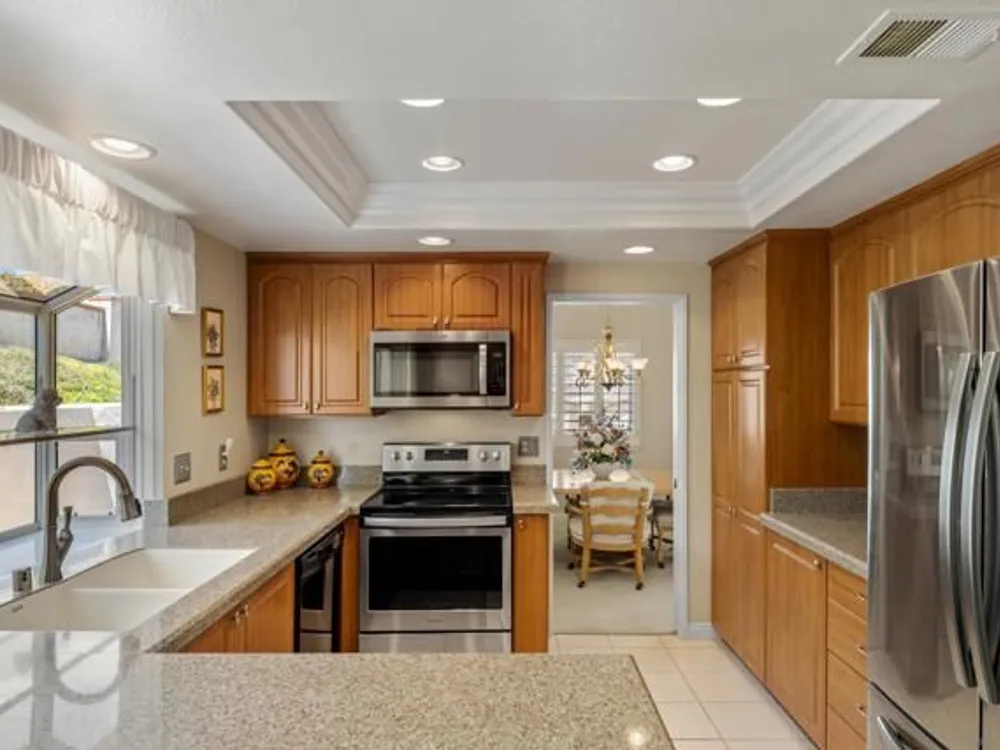 Welcome to this meticulously maintained home in the sought-after 55+ community of Oaks North Marbella. Located on a quiet street with minimal traffic and directly across from a peaceful greenbelt, this home offers great curb appeal with artificial turf and a charming pathway leading to a beautiful leaded glass front door. The bright interior features vaulted ceilings, newer dual-pane windows and sliders, shutters, and a decorative stained glass window. The kitchen includes refaced cabinets and solid surface countertops. Recent updates include new carpeting, newer roof underlayment, and a newer garage door and opener. Relax on the private patio with beautiful mountain views, or take advantage of the nearby historic Bernardo Winery, with it's weekly Farmer's market, shops and restaurants, or partake in the many activities offered with the included membership of the Oaks North Community Center. The public Oaks North Golf Course is also easily accessible for golf enthusiasts. Don't miss out on this truly turnkey home in an exceptional location.