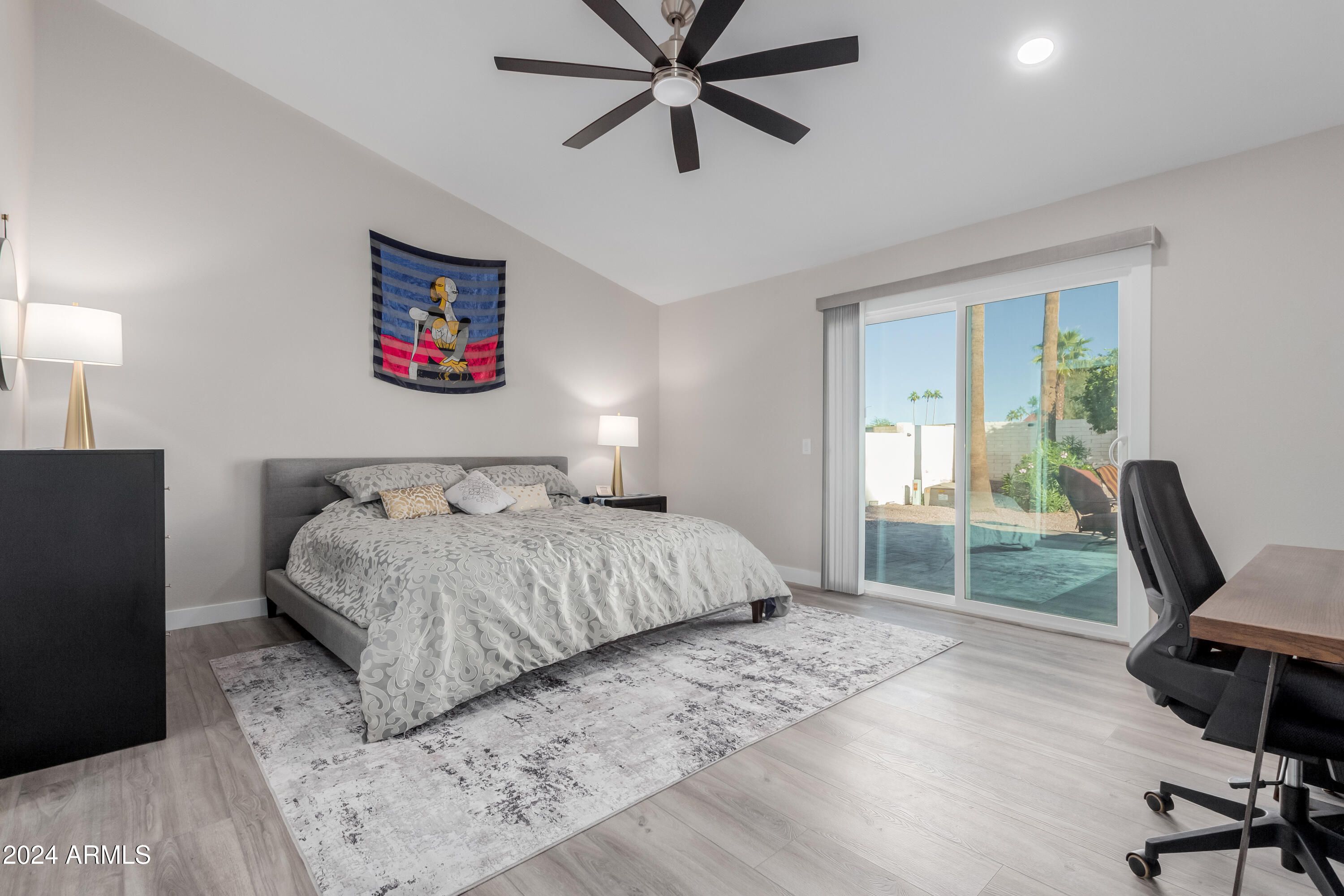 Welcome to this gorgeous update 2-bedroom home in Sun City West with new HVAC! Enjoy your morning coffee on the cozy front porch. Come inside to see an open layout with vaulted ceilings that add to the airy feel, luxury vinyl plank flooring, and thick baseboards. The eat-in kitchen features granite counters, backyard access, built-in appliances, white cabinets, and a breakfast bar for casual meals. Retreat to the main suite, offering sliding doors to the backyard and an expansive bathroom. A dual sink vanity, glass enclosure, rain shower, and walk-in closet complete the main bathroom. The cabinetry in the laundry room and garage adds extra storage space! Discover a large northeast facing covered back patio that provides early afternoon shade, and a custom outdoor covered patio. An expansive paver patio provides tons of room for outdoor living, and surrounds the sparkling blue pool. You don't want to miss it!