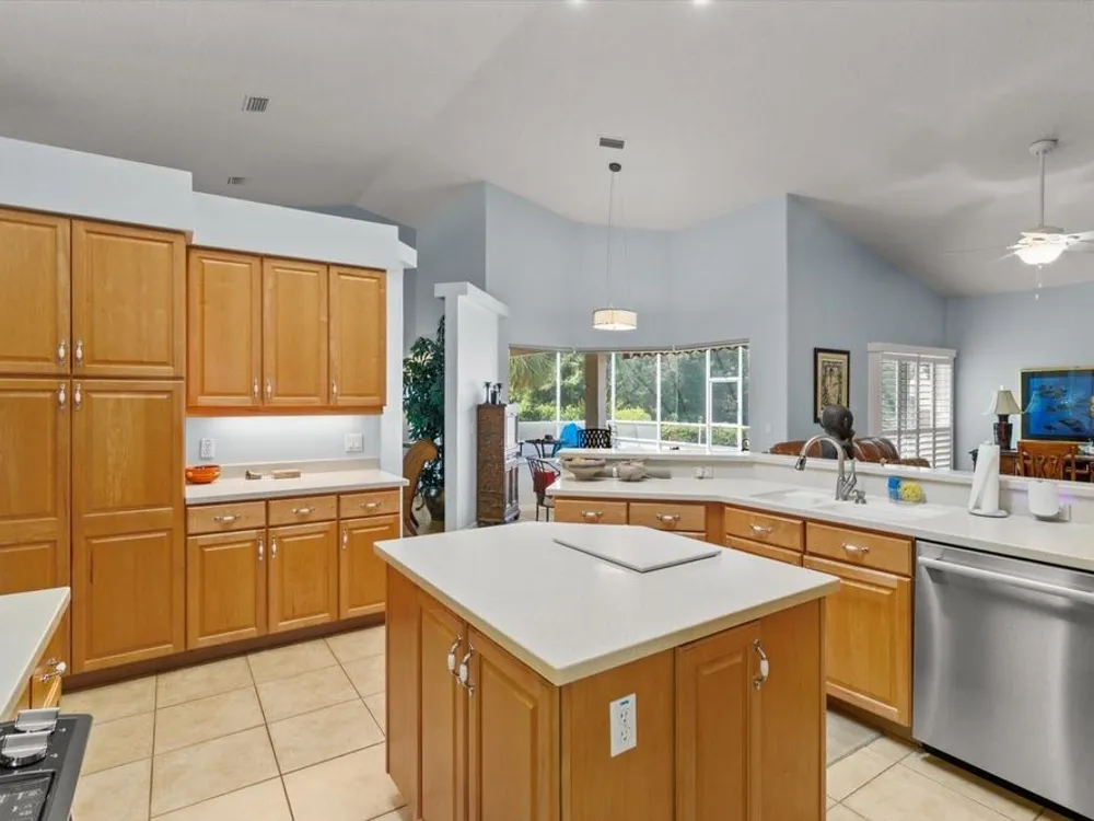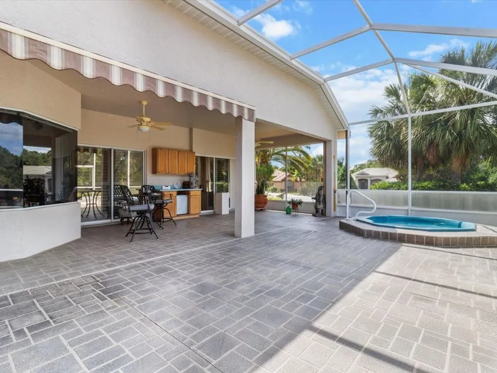 Enjoy the Citrus Hills lifestyle in this gorgeous Terra Vista home with a full 3 CAR GARAGE with screens on a spectacular oversized lot! Drink your favorite beverage overlooking the serene green space behind the house. The home is great for living and entertaining with 3 bedrooms, 2 baths, dining room, living room and large family room. The kitchen has wood cabinets, 2 +/- year old skylight over the island, hard surface countertops with poured double sink. there are 8 +/- year old stove, dryer and hot water heater, a 3 +/- year old refrigerator and 1 +/- year old dishwasher. The lanai has an automatic awning and the barbeque grill is operated on natural gas. There is an in-ground spa heated by solar. The CAC is 5 +/- years old. The eat-in kitchen has aquarium windows with retractable blinds which overlook the screened lanai with auto controlled awning. The spacious master bedroom has 2 walk-in closets with built-in organizers and the master bath has been updated with dual granite counter sinks, soaking tub and shower with grab bars. the second bath has also been updated. there are bamboo wood floors in the living and dining rooms, bedrooms and ceramic tiled floors in other rooms. Plantation shutters are in the bedrooms, master bath, dining room, garage and sliding plantation shutters on the glass doors leading from family room to the lanai. There is a Generac generator and a tile roof. Did I mention the 3 car garage with built-in under mount lit cabinets and work space? The exterior is fully landscaped with outdoor lighting. This house is in MINT condition. So, bring your clients to see it as they won't be disappointed!