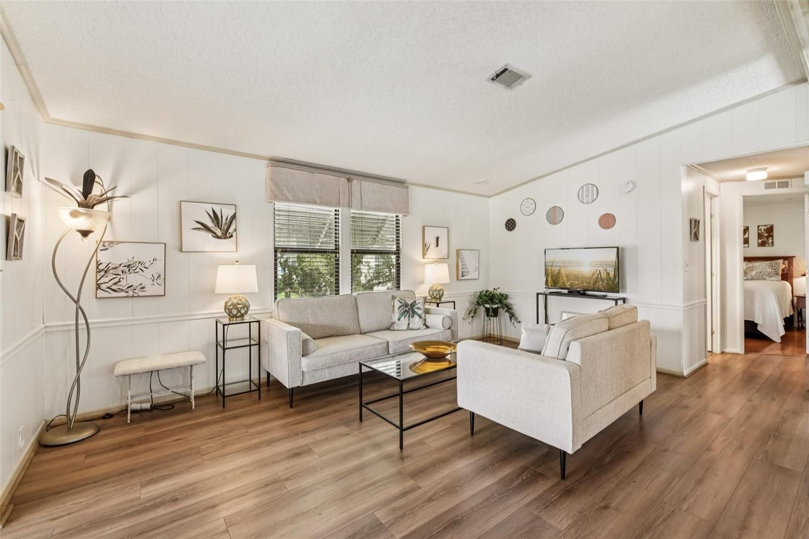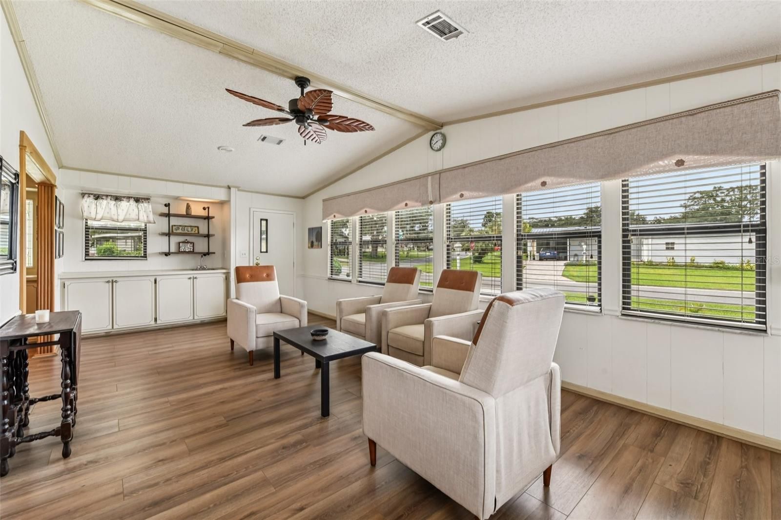 No BOND, Turnkey, 2 Bedroom 2 Bath Model 6A with a Bonus Room as a Bedroom, an Office, or Other, Open Floor Plan, Kitchen Island, on a Corner Lot, and a Family Room/Game Room in addition to a Living Room home ready for You. At 1434 SF this home has Size and Room. The Bonus Room is not counted in the square footage as there is a step down and sliding glass doors. Carport has room for 2 vehicles and there is a Golf Cart Garage. Plenty of Driveway for parking your friends off the street and a great entertainment home for friends and family. There is even a Wet Bar in the Family/Game Room. Situated on a large corner lot and very near all the amenities that being a Villager provides like restaurants, Adult Pools, Hilltop Country Club, Golf, Tennis, Pickleball, a Dog Park,Shopping, and Live Free Entertainment at Spanish Springs 365 days a year and access to all other amenities. Home comes with a 1-year warranty with no deductibles or copays for peace of mind. Schedule your private showing today—or request a FaceTime tour if you’re out of the area—and experience all this beautiful property provides.