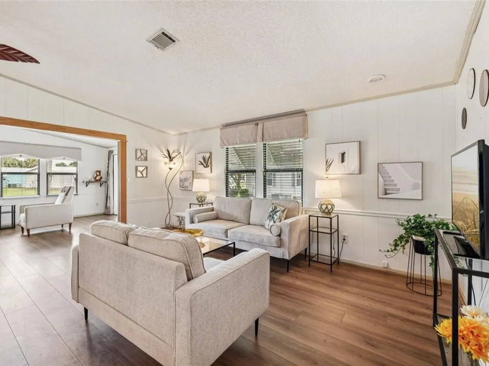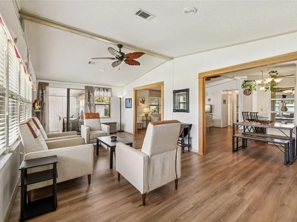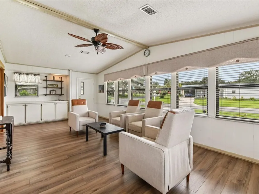 No BOND, Turnkey, 2 Bedroom 2 Bath Model 6A with a Bonus Room as a Bedroom, an Office, or Other, Open Floor Plan, Kitchen Island, on a Corner Lot, and a Family Room/Game Room in addition to a Living Room home ready for You. At 1434 SF this home has Size and Room. The Bonus Room is not counted in the square footage as there is a step down and sliding glass doors. Carport has room for 2 vehicles and there is a Golf Cart Garage. Plenty of Driveway for parking your friends off the street and a great entertainment home for friends and family. There is even a Wet Bar in the Family/Game Room. Situated on a large corner lot and very near all the amenities that being a Villager provides like restaurants, Adult Pools, Hilltop Country Club, Golf, Tennis, Pickleball, a Dog Park,Shopping, and Live Free Entertainment at Spanish Springs 365 days a year and access to all other amenities. Home comes with a 1-year warranty with no deductibles or copays for peace of mind. Call me for a private showing or FaceTime if not local.