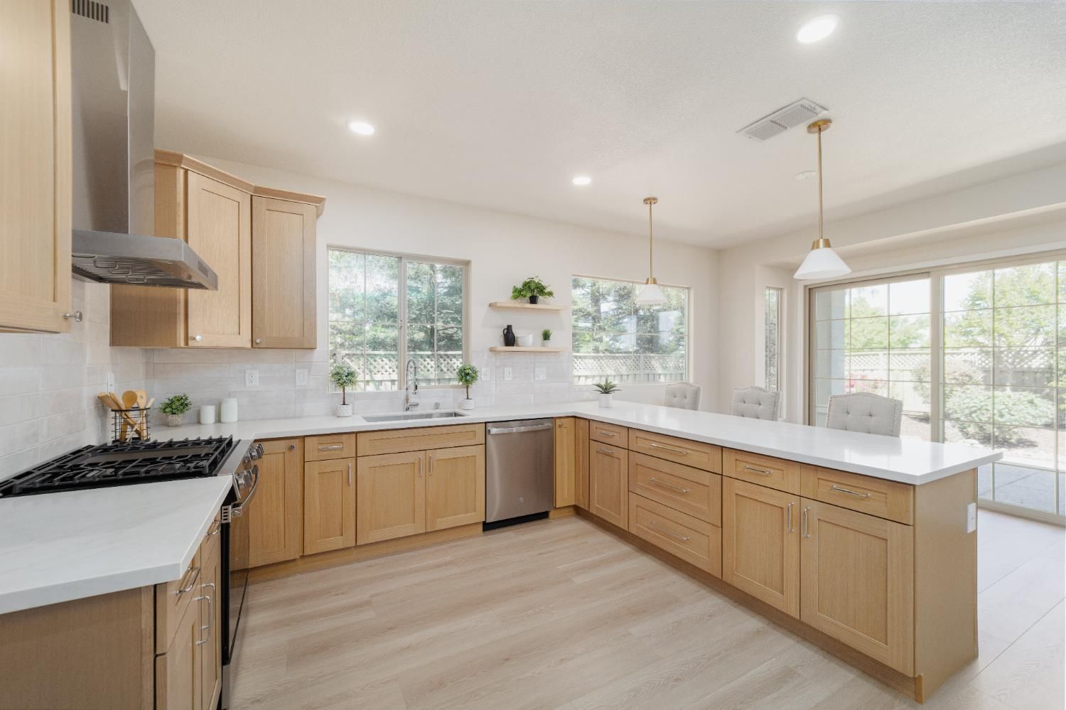 Beautifully renovated 2-bedroom, 2-bath Echo Ridge Model offering 1,727 sq ft of updated living space in the highly desirable Sun City Lincoln Hills 55+ community. This home has been thoughtfully upgraded throughout, combining quality finishes with a comfortable, modern layout. The fully remodeled kitchen features new cabinetry, stylish countertops, and stainless steel appliances, designed to flow seamlessly into the main living areas. New flooring extends throughout the home, creating a cohesive and polished look. Both bathrooms have been completely renovated with custom vanities, updated tile work, and upgraded plumbing and lighting fixtures, providing a clean, modern feel. Situated on a premium corner lot, the home also includes paid-off solar for added efficiency and long-term savings. Enjoy resort-style living with access to golf, clubhouses, and all the amenities that make Sun City Lincoln Hills one of the area's most sought-after 55+ communities.