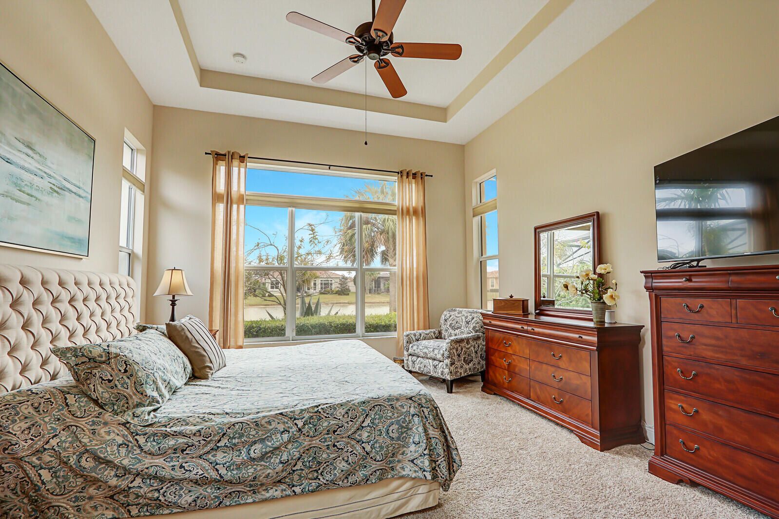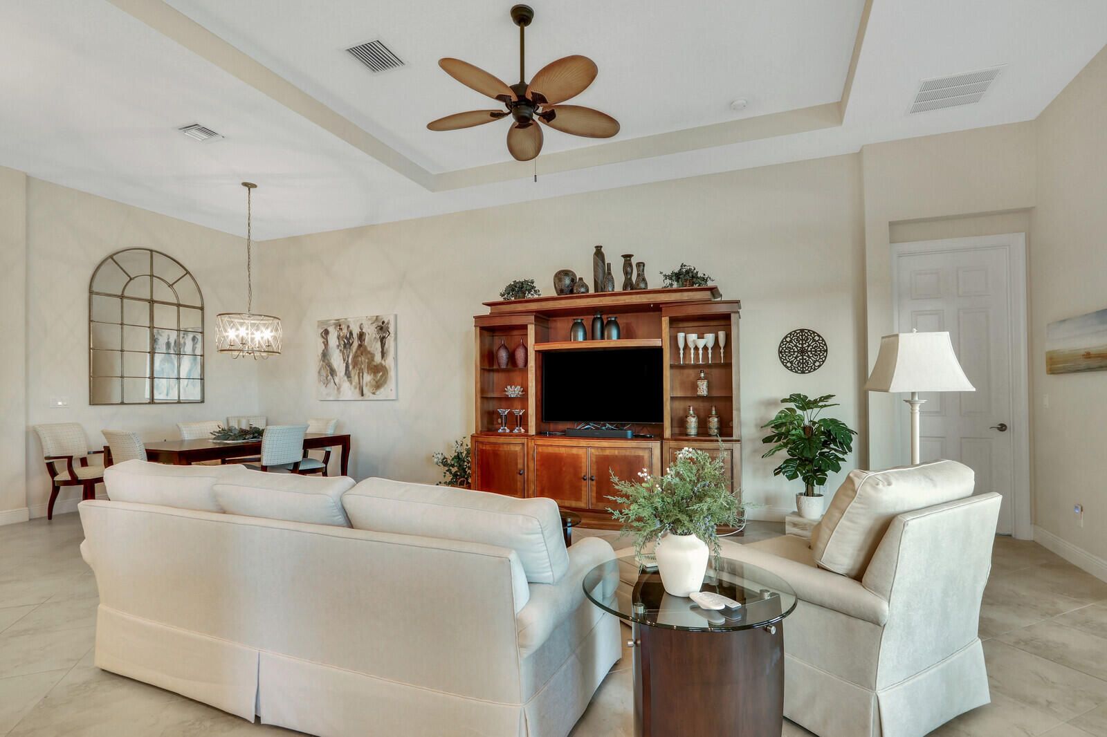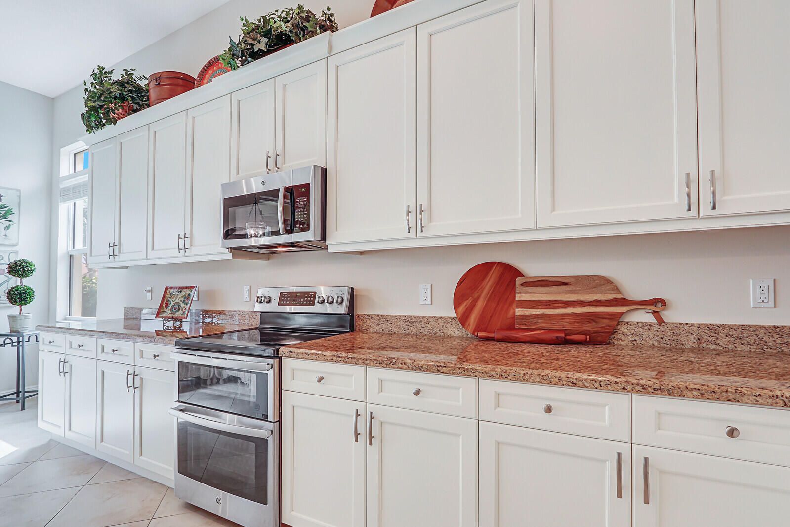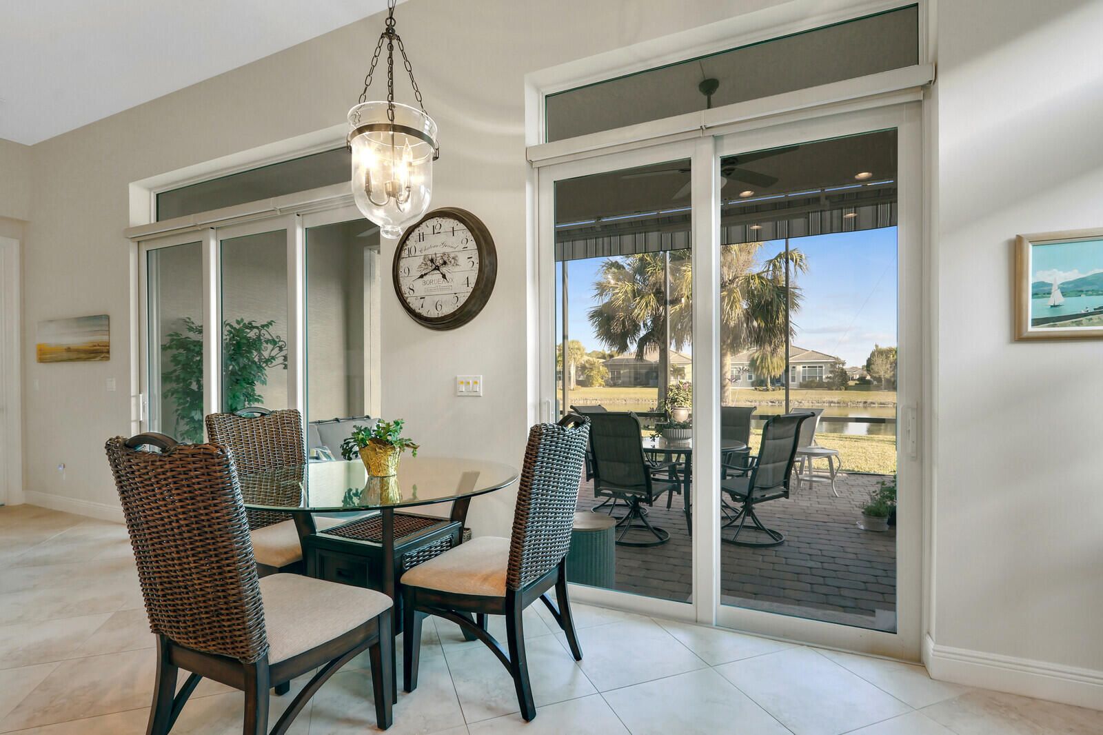 BEAUTIFUL LAKEFRONT HOME WITH 3 BEDROOMS, DEN & 3 BATHS! Welcome to this beautifully maintained home with a popular floor plan offering 3 spacious brs plus a den & 3 baths. Situated in a highly sought-after location within the community, this home boasts an expansive open layout that seamlessly connects the living, dining & kitchen areas. The gourmet kitchen features pristine creamy white cabinetry, granite countertops & SS appliances-perfect for any chef. Porcelain tile flooring throughout the main living areas & neutral decor create a clean, inviting atmosphere that's ready for you to make your own. Step outside to the extended patio & enjoy long lake views with desirable southern exposure, providing plenty of sunshine throughout the day. Hurricane impact glass windows & doors
