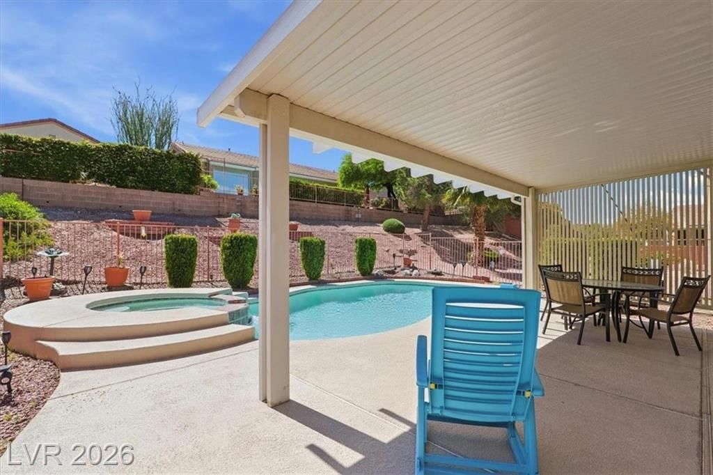 Welcome to this beautifully maintained single-story home in the highly sought-after Sun City MacDonald Ranch of Henderson. Offering 2 bedrooms, 2 bathrooms, and 1,130 square feet of thoughtfully designed living space, this residence perfectly blends comfort, convenience, and resort-style living. Situated on a 5,663 square foot lot, this home features a rare and highly desirable private pool and spa—one of only a limited number of properties within the community to offer this amenity. The backyard is designed for easy maintenance, allowing you to relax and enjoy your own personal retreat without the hassle. Located within a premier 55+ community, residents enjoy access to an array of outstanding amenities, including a community center, resort-style pool, tennis and pickleball courts, a golf course, on-site dining, and a full calendar of social activities. This is an incredible opportunity to experience vibrant, active +55 in one of Henderson’s most desirable neighborhoods.