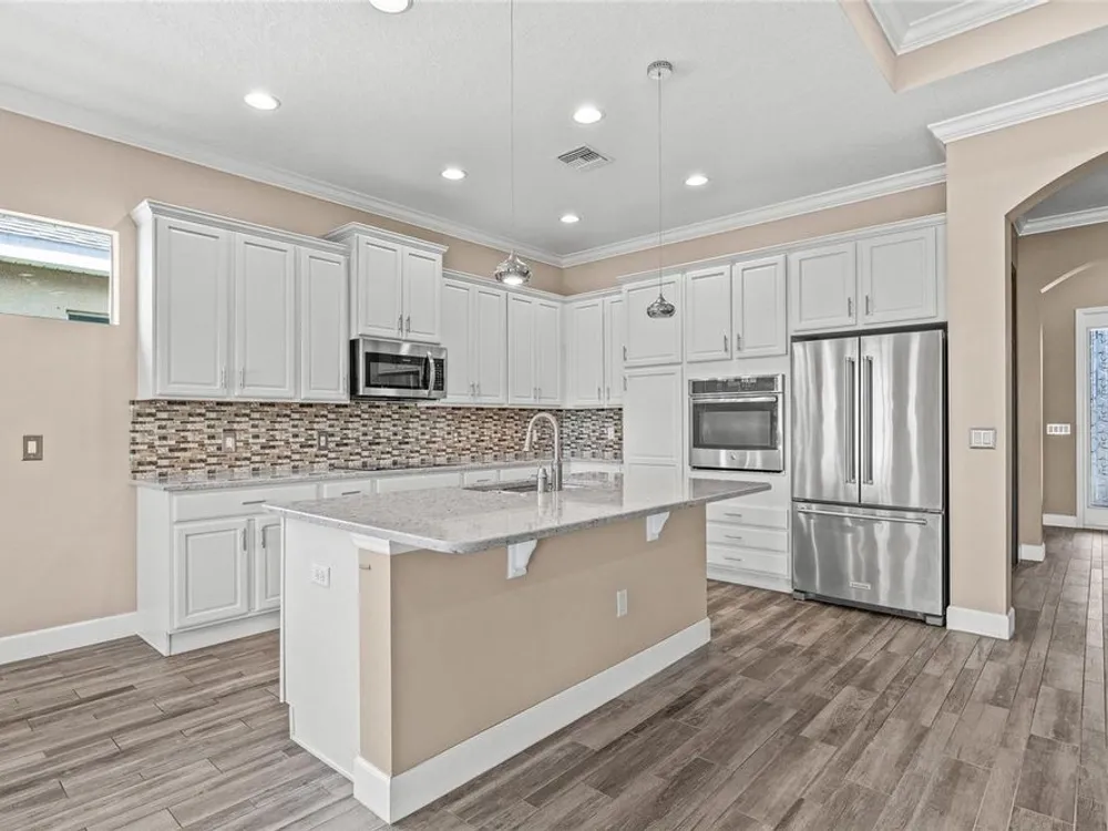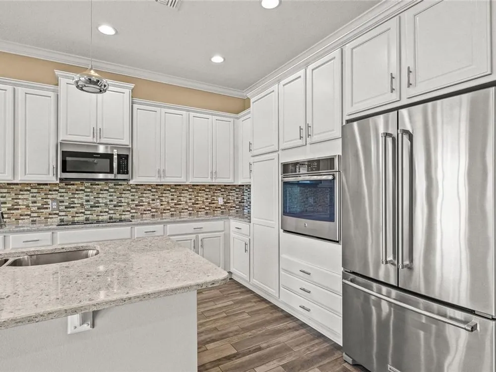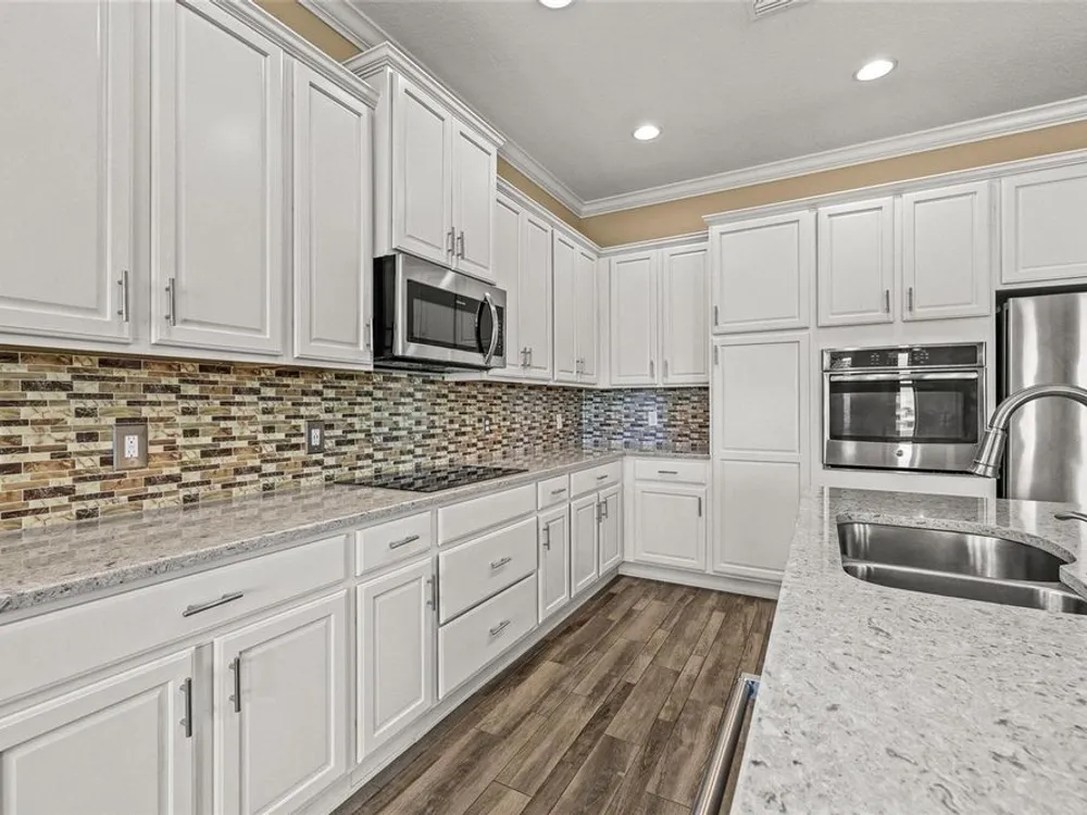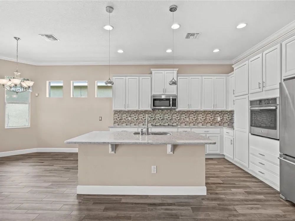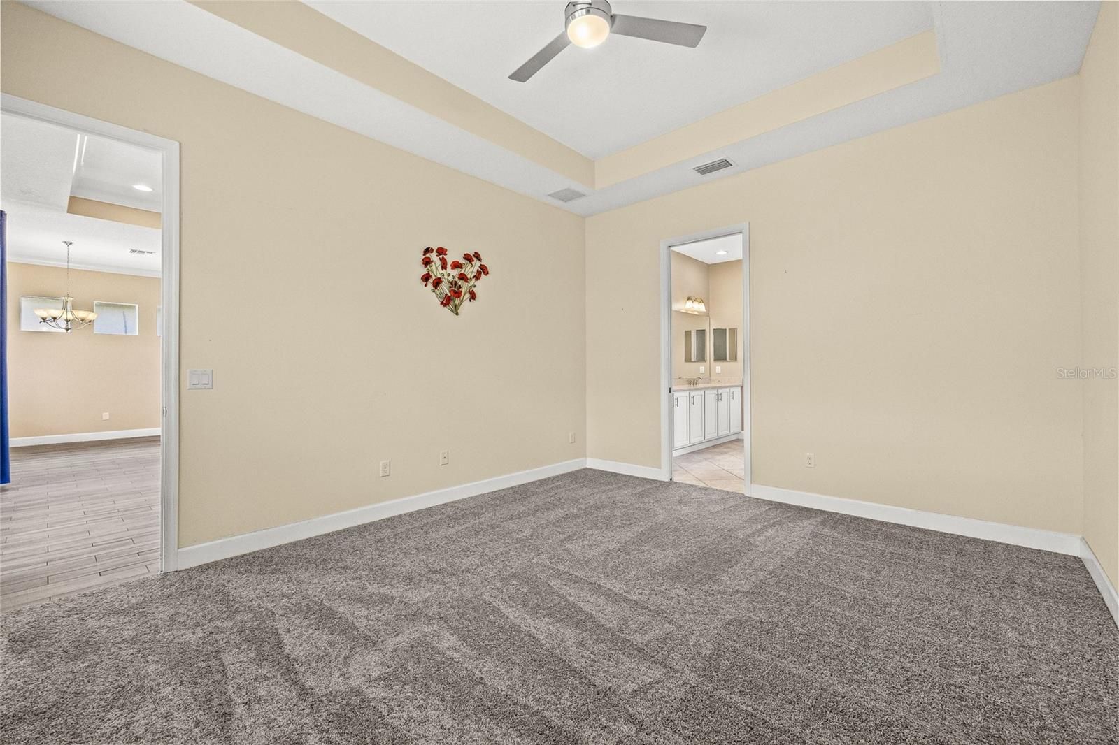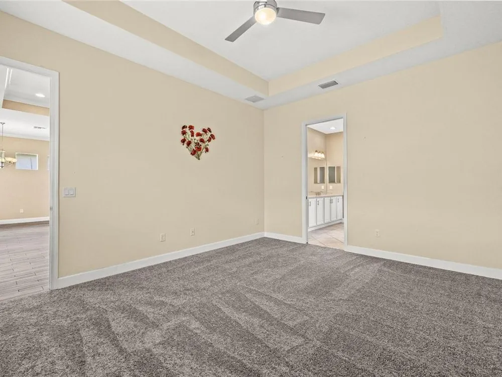 - Crown Molding, High Ceilings, Open Floorplan, Main Level Primary, Solid Surface Counters, Solid-Wood Cabinets, Stone Counters, Thermostat, Tray Ceiling(s), Walk-In Closet(s)
