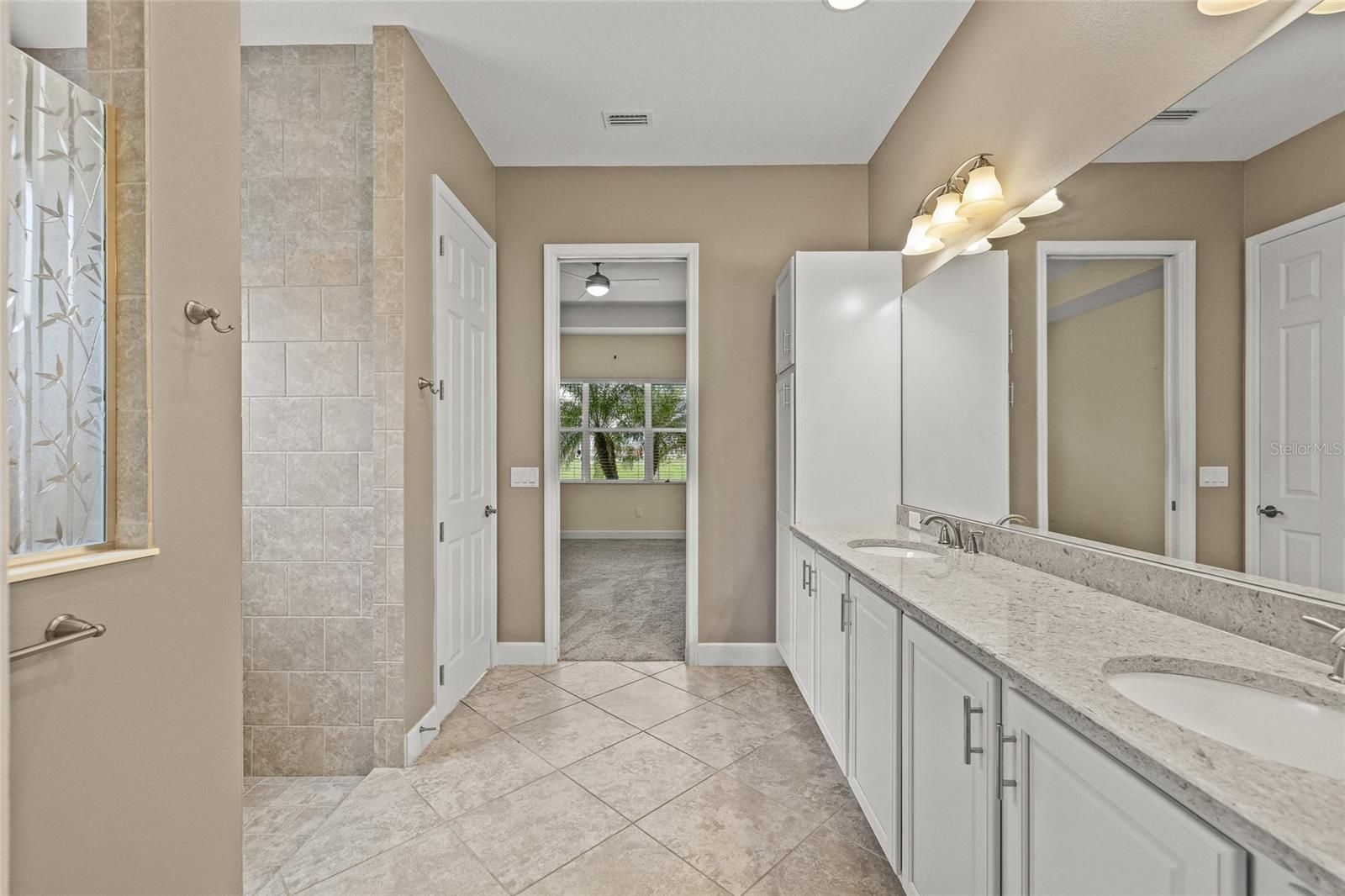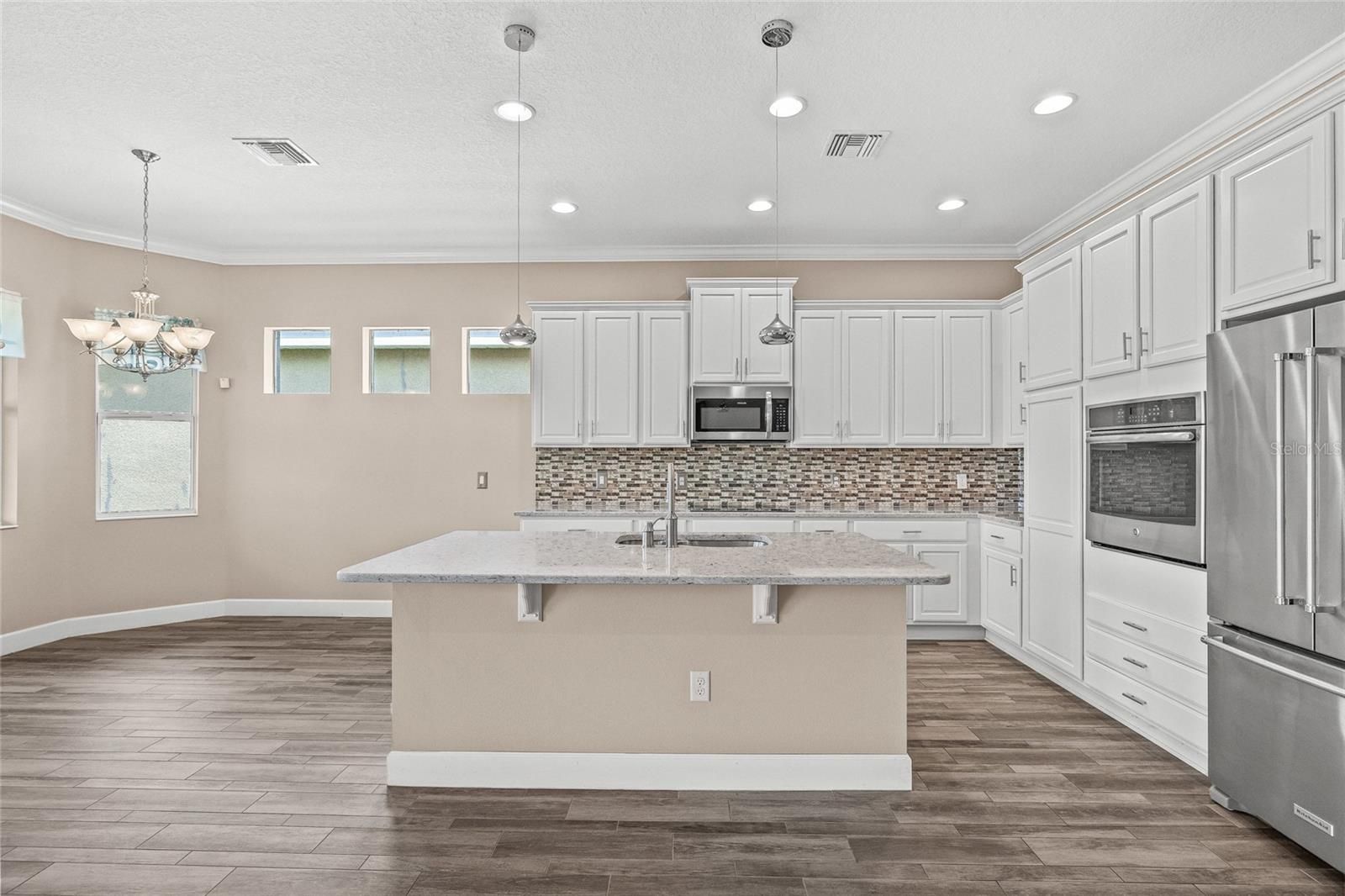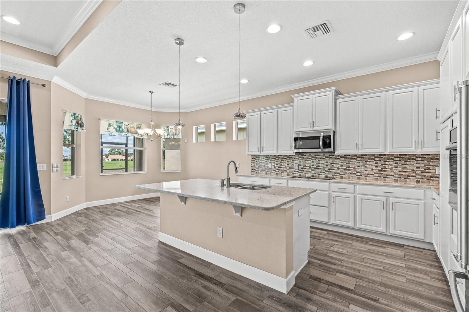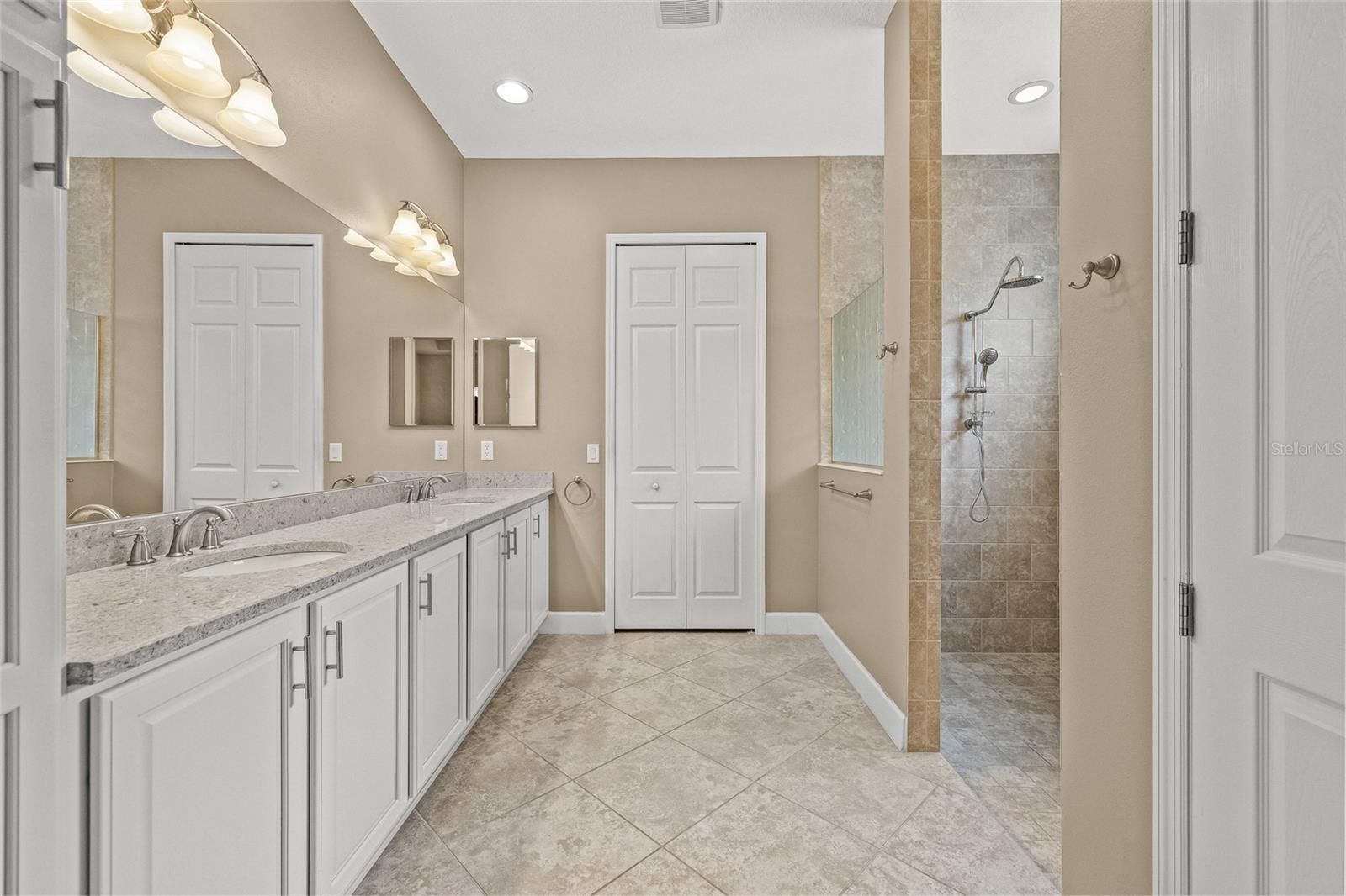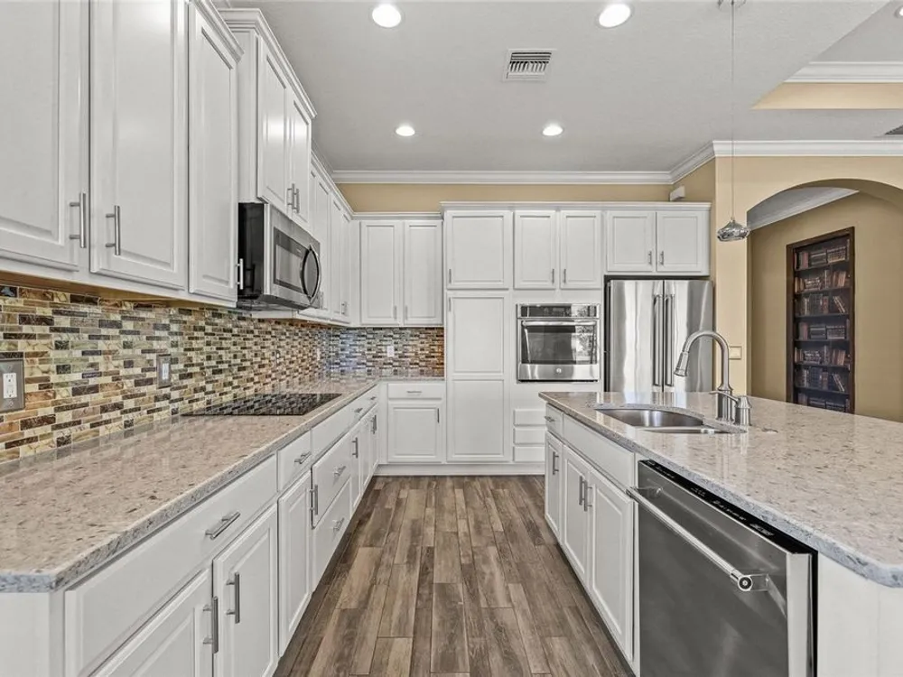 - Crown Molding, High Ceilings, Open Floorplan, Main Level Primary, Solid Surface Counters, Solid-Wood Cabinets, Stone Counters, Thermostat, Tray Ceiling(s), Walk-In Closet(s)