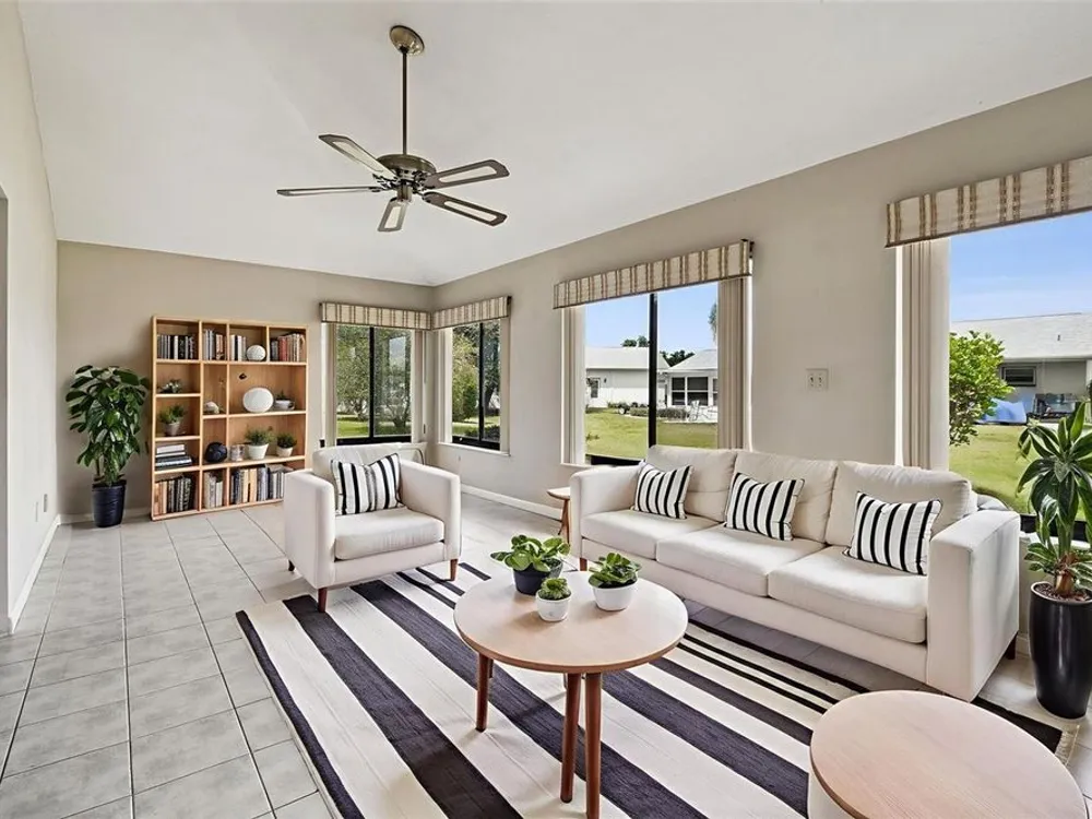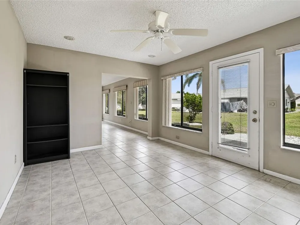 Welcome to your new home in the heart of Sun City Center! Tucked away on a quiet cul-de-sac, this charming residence offers peace and privacy while still being just minutes—by golf cart or car—from all the incredible amenities this active retirement community is known for: golf, tennis, swimming, a state-of-the-art fitness center, arts & crafts, and countless clubs and activities to keep you engaged. From the moment you arrive, the red brick driveway and the stone-and-stucco exterior set the tone for a home filled with warmth and character. Inside, the spacious living room features hardwood floors, while ceramic tile flows seamlessly through the kitchen, Florida room, and bonus spaces. Storage is never an issue here, with thoughtful built-ins throughout and a versatile utility/office/storage room located off the garage. The master suite includes its own full bathroom for comfort and convenience, while the generously sized second bedroom ensures space for guests or hobbies. Whether you’re looking for a year-round residence or a seasonal retreat, this home offers both functionality and charm—all in one of Florida’s most desirable 55+ communities.